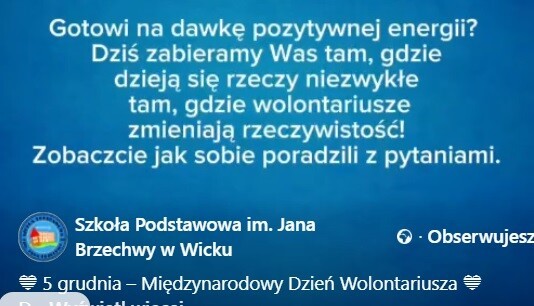 Drodzy Wolontariusze Szkoły im. Jana Brzechwy w Wicku!