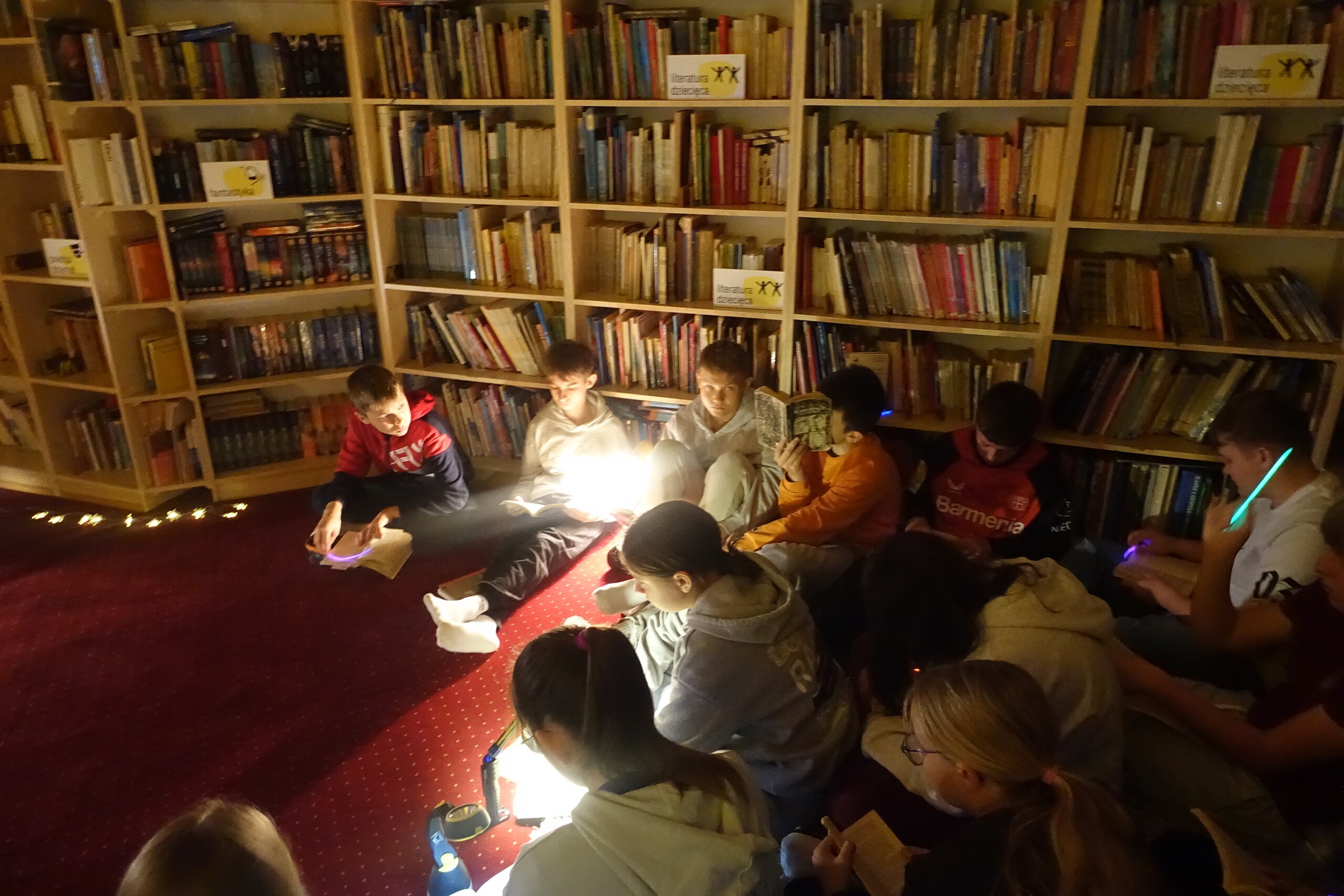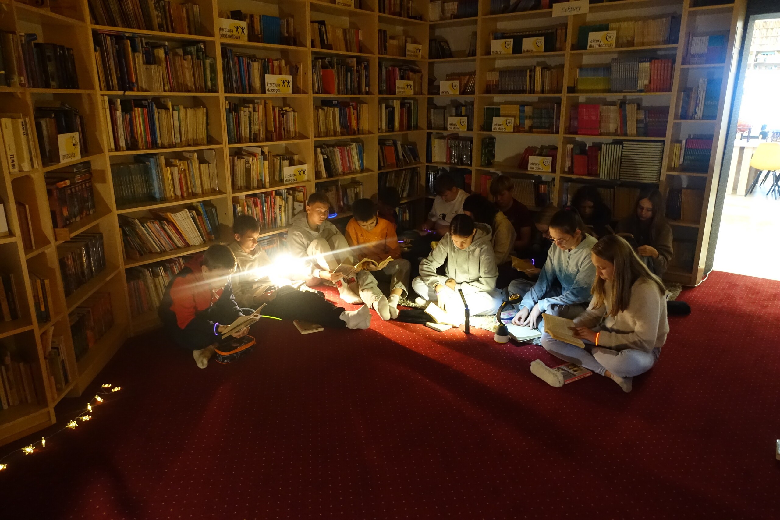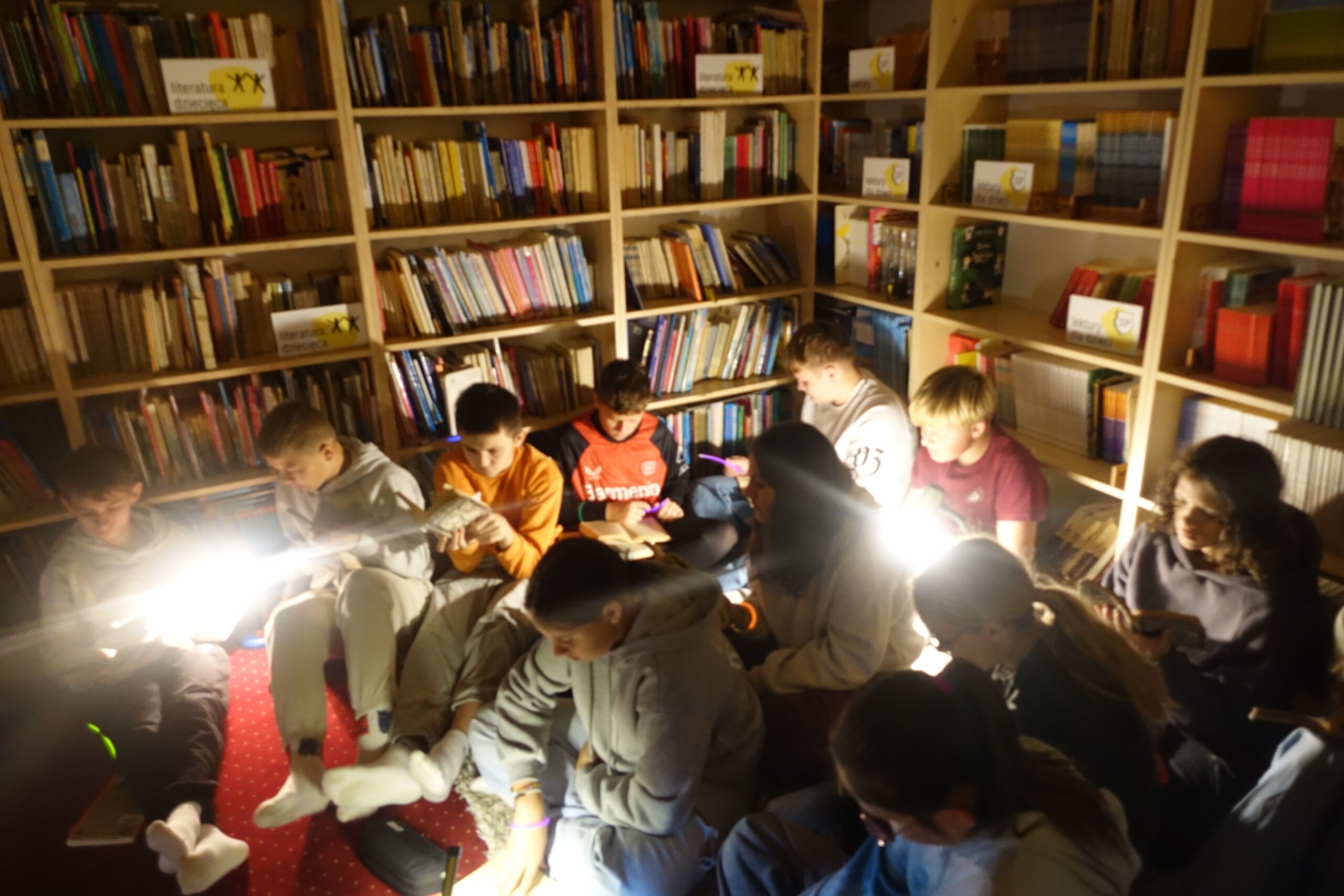 NOC BIBLIOTEK to ogólnopolska akcja, którą od kilku lat organizujemy również i w naszej szkolnej bibliotece. Tym razem z kl. VIIA czytaliśmy "nocny" fragment lektury obowiązkowej klas starszych "Kamienie na szaniec" - o akcji odkręcania przez Alka niemieckiej tablicy zakrywającej polski napis na pomniku Mikołaja Kopernika.