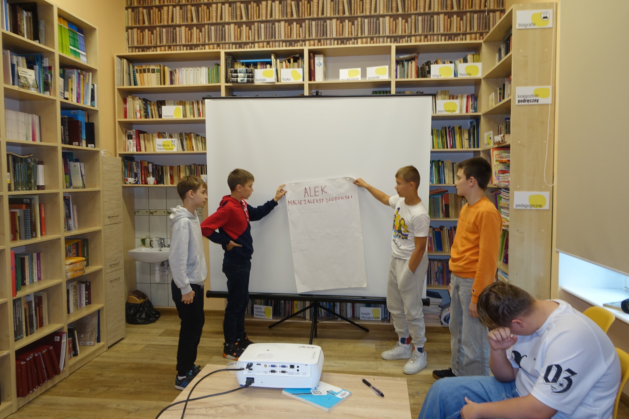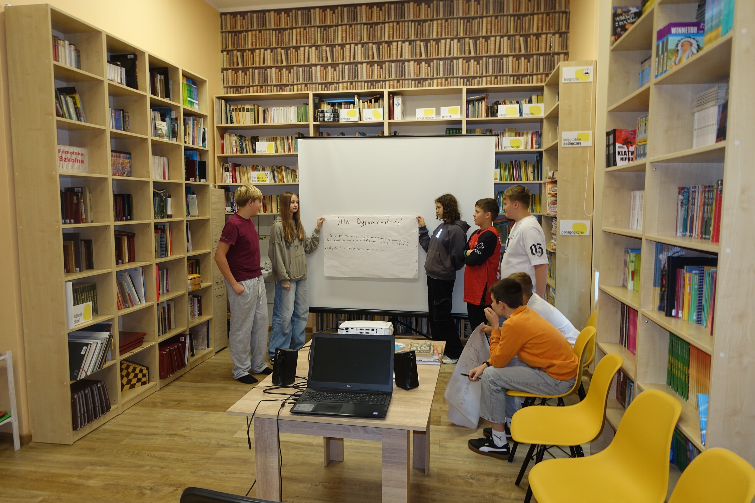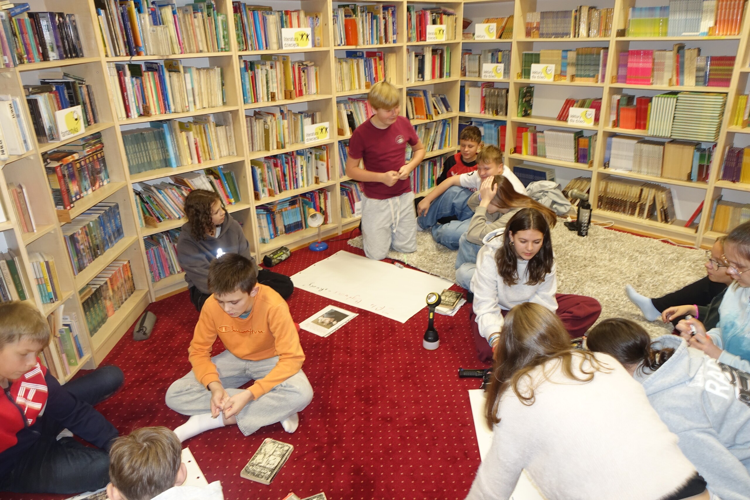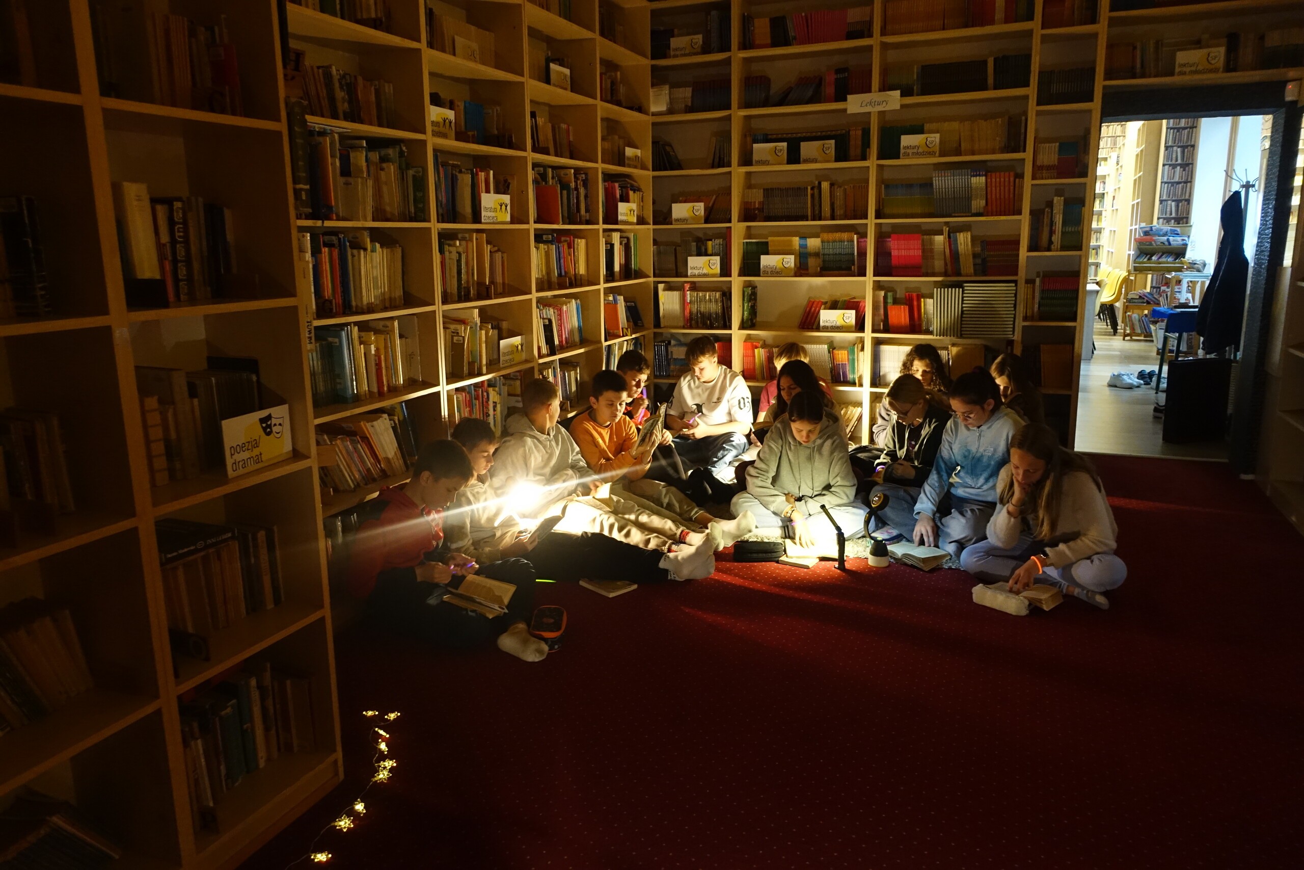 NOC BIBLIOTEK to ogólnopolska akcja, którą od kilku lat organizujemy również i w naszej szkolnej bibliotece. Tym razem z kl. VIIA czytaliśmy "nocny" fragment lektury obowiązkowej klas starszych "Kamienie na szaniec" - o akcji odkręcania przez Alka niemieckiej tablicy zakrywającej polski napis na pomniku Mikołaja Kopernika.