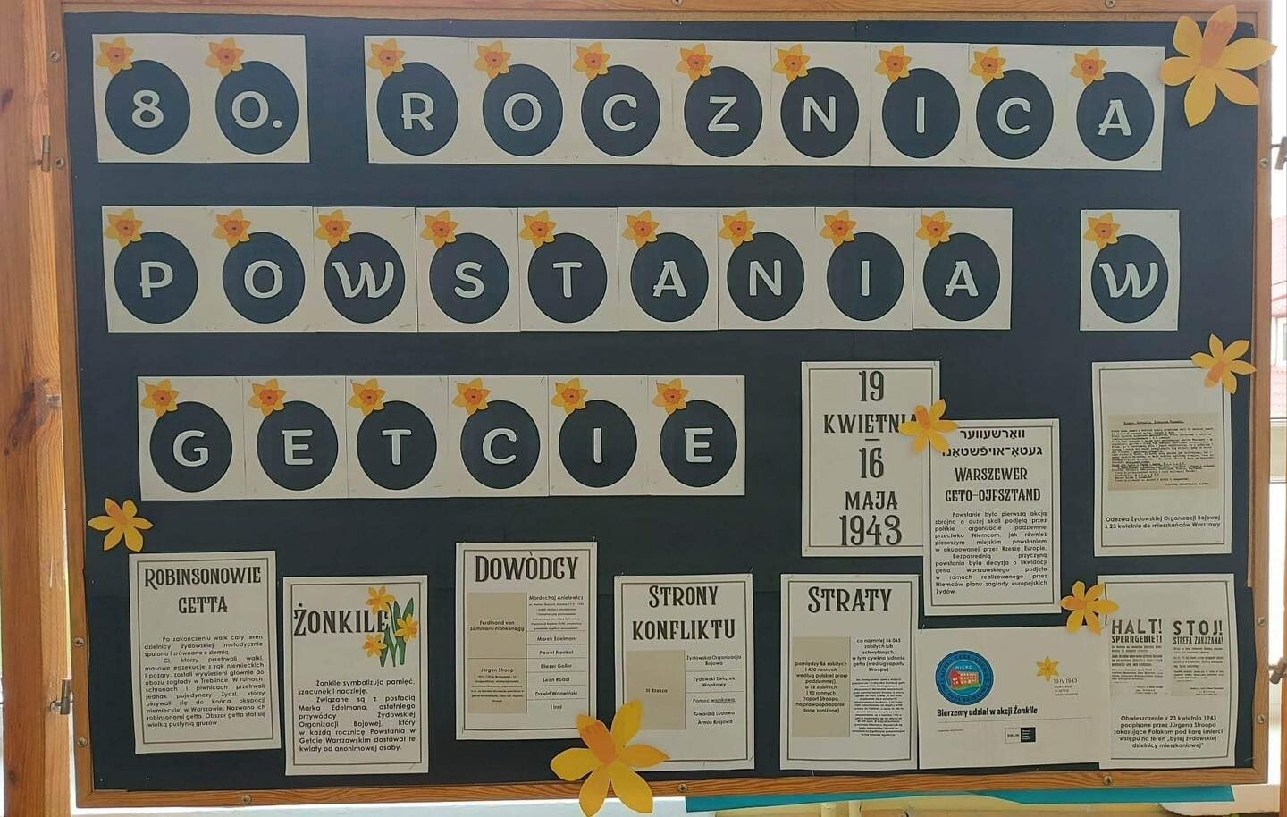 Uczniowie wykonali papierowe żonkile na znak pamięci o powstaniu. Wzięli również udział w lekcjach historii, podczas których wykorzystane zostały materiały przygotowane przez Muzeum Historii Żydów Polskich Polin w Warszawie.