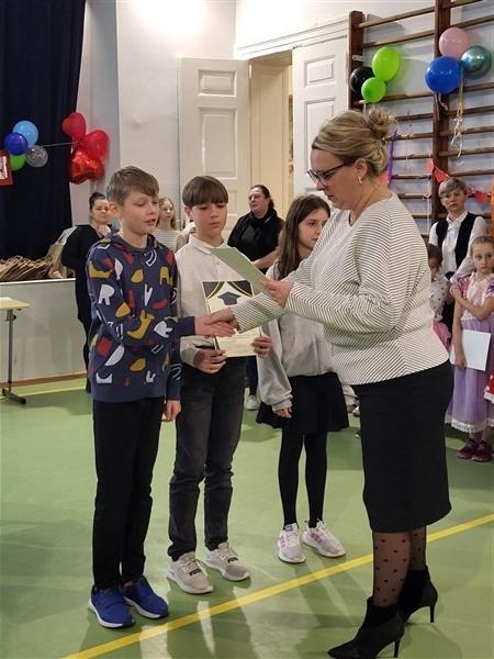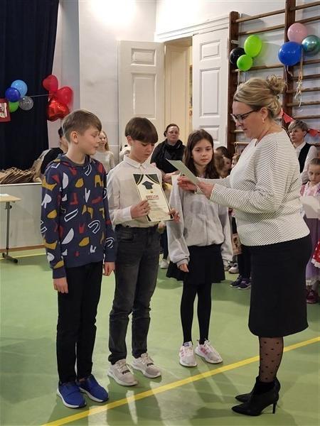 W czwartek, 16 lutego, na uroczystym apelu podsumowaliśmy wyniki nauczania z pierwszego semestru roku szkolnego 2022/23. Najlepsi uczniowie otrzymali pamiątkowe dyplomy i gratulacje od Wicedyrektor SP Wicko, Pani Magdaleny Bartelik.