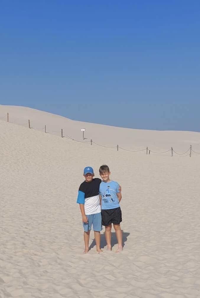 W czwartek, po zakwaterowaniu się w domkach, pojechaliśmy meleksem do Rąbki, gdzie dalej ruszyliśmy w głąb Słowińskiego Parku Narodowego. Wdrapaliśmy się na Wydmę Łącką i podziwialiśmy piękno nadmorskich wydm, które ciągną się przez Mierzeję Łebską (lekcja geografii zaliczona).