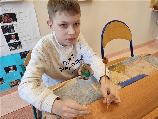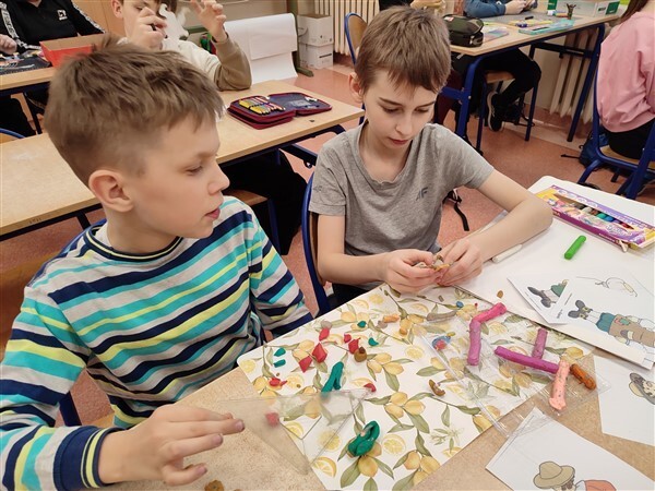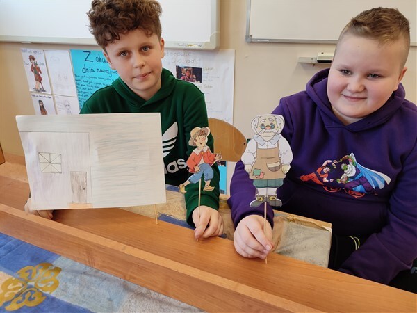 W erze kultury obrazkowej niełatwo znaleźć sposób na to, by dzieci polubiły czytanie… Może więc pozwolić im na samodzielną adaptację znanych utworów literackich? Taką próbę nieco innego „opowiedzenia” znanej lektury podjęli uczniowie klasy IV a na lekcji języka polskiego. Czwartaki wykonały z plasteliny postacie występujące w popularnej książce Carla Collodiego pt. „Pinokio”. Jeśli komuś brakowało pomysłu na samodzielnie stworzoną postać, mógł ją wyciąć z gotowego szablonu. Później czwartoklasiści przedstawili własną (lub odtwórczą) wersję przygód pajacyka. Stworzyliśmy scenę, mieliśmy „kukiełki” – i sala lekcyjna stała się teatrem z prawdziwą, wyjątkowo wrażliwą widownią.