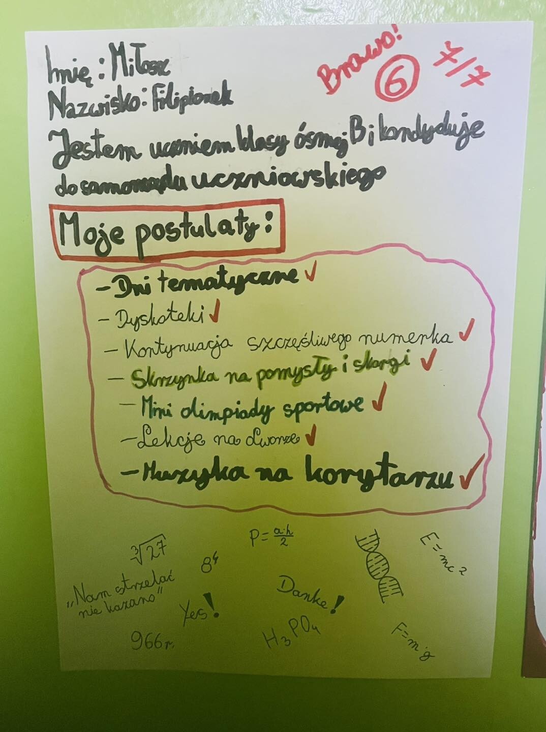 Kandydaci przedstawili swoje pomysły na rozwój życia szkolnego oraz inicjatywy skierowane do społeczności uczniowskiej.