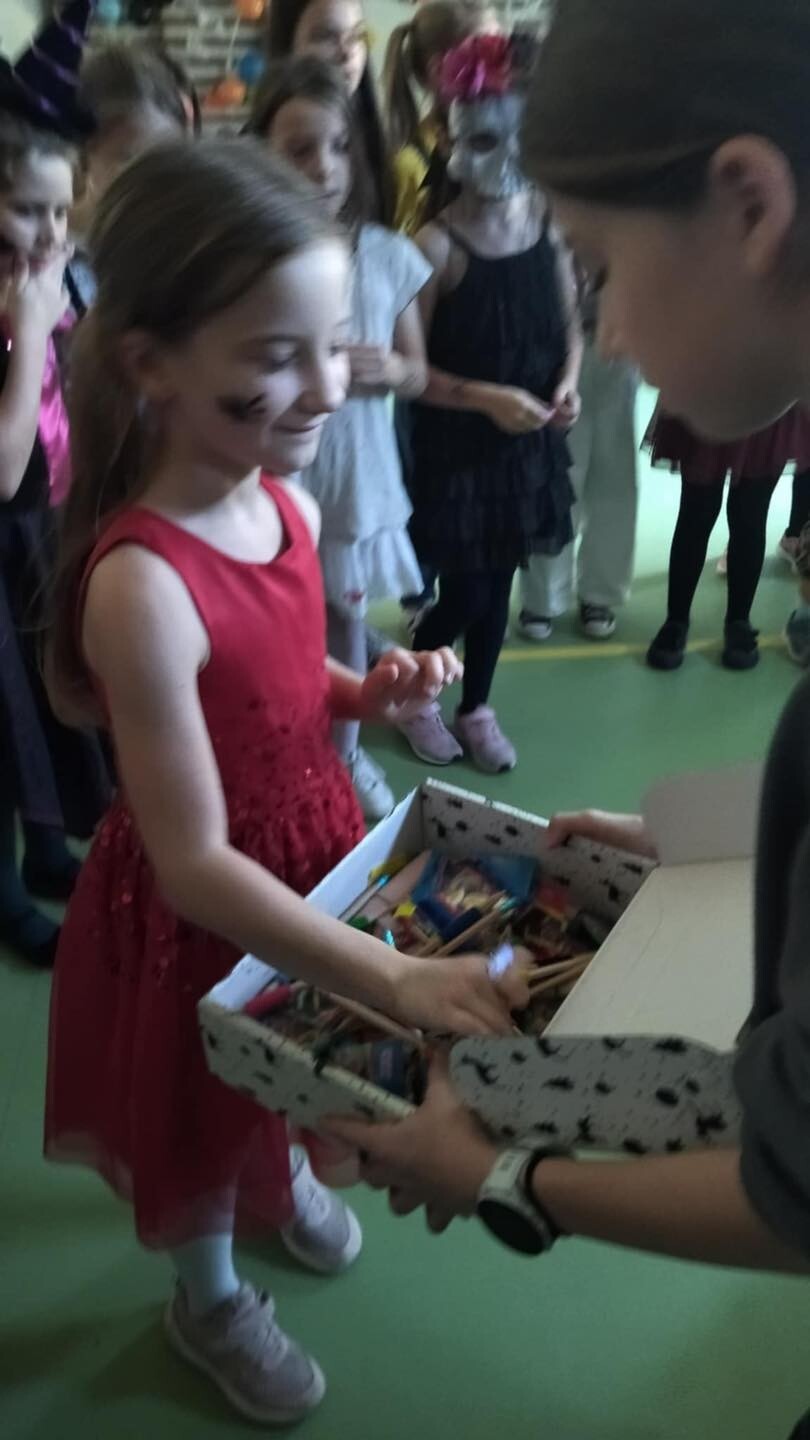 Dzięki naszym animatorkom z klas siódmych i ósmych nie było nudy. Dziewczyny przygotowały tańce, gry i zabawy. Były nagrody za przebranie i udział w konkurencjach. DJ puszczał muzykę, przy której bawili się wszyscy.