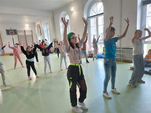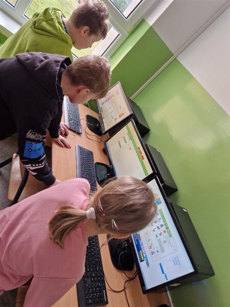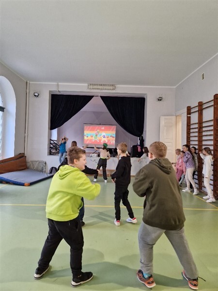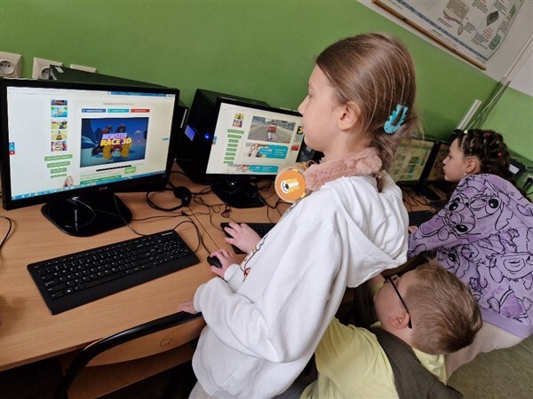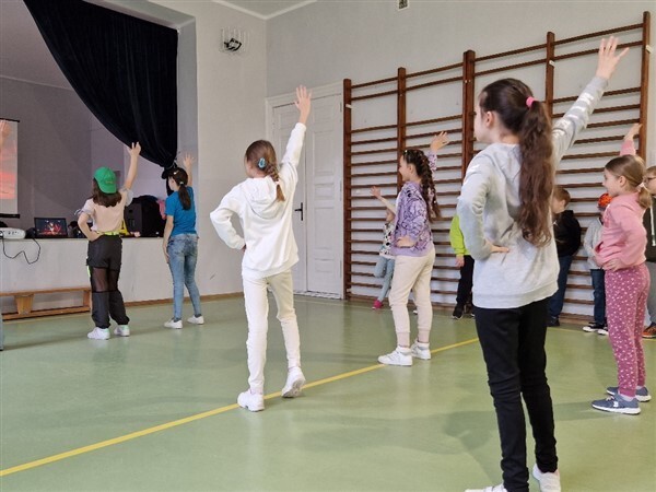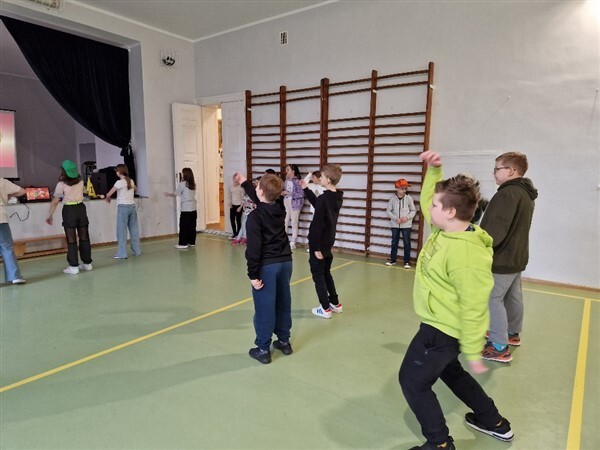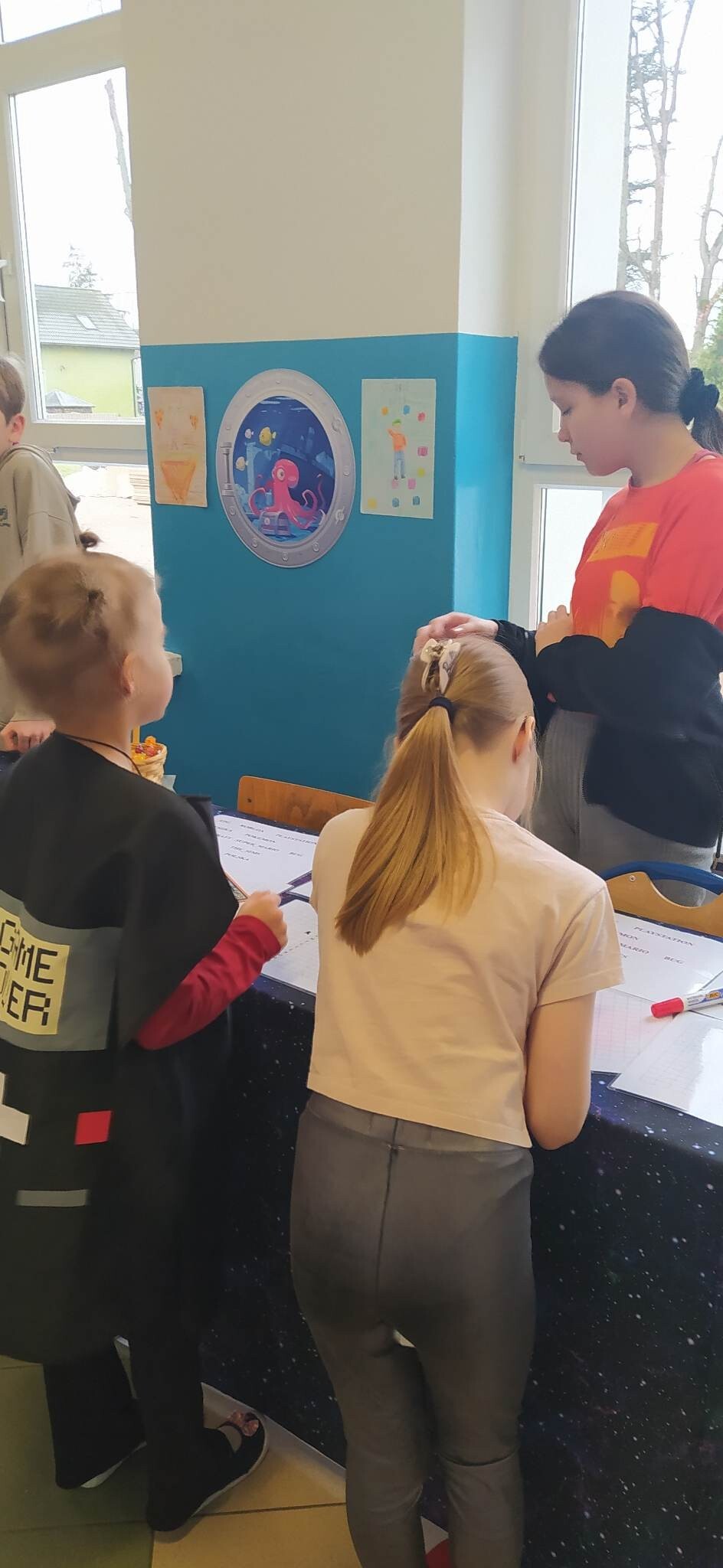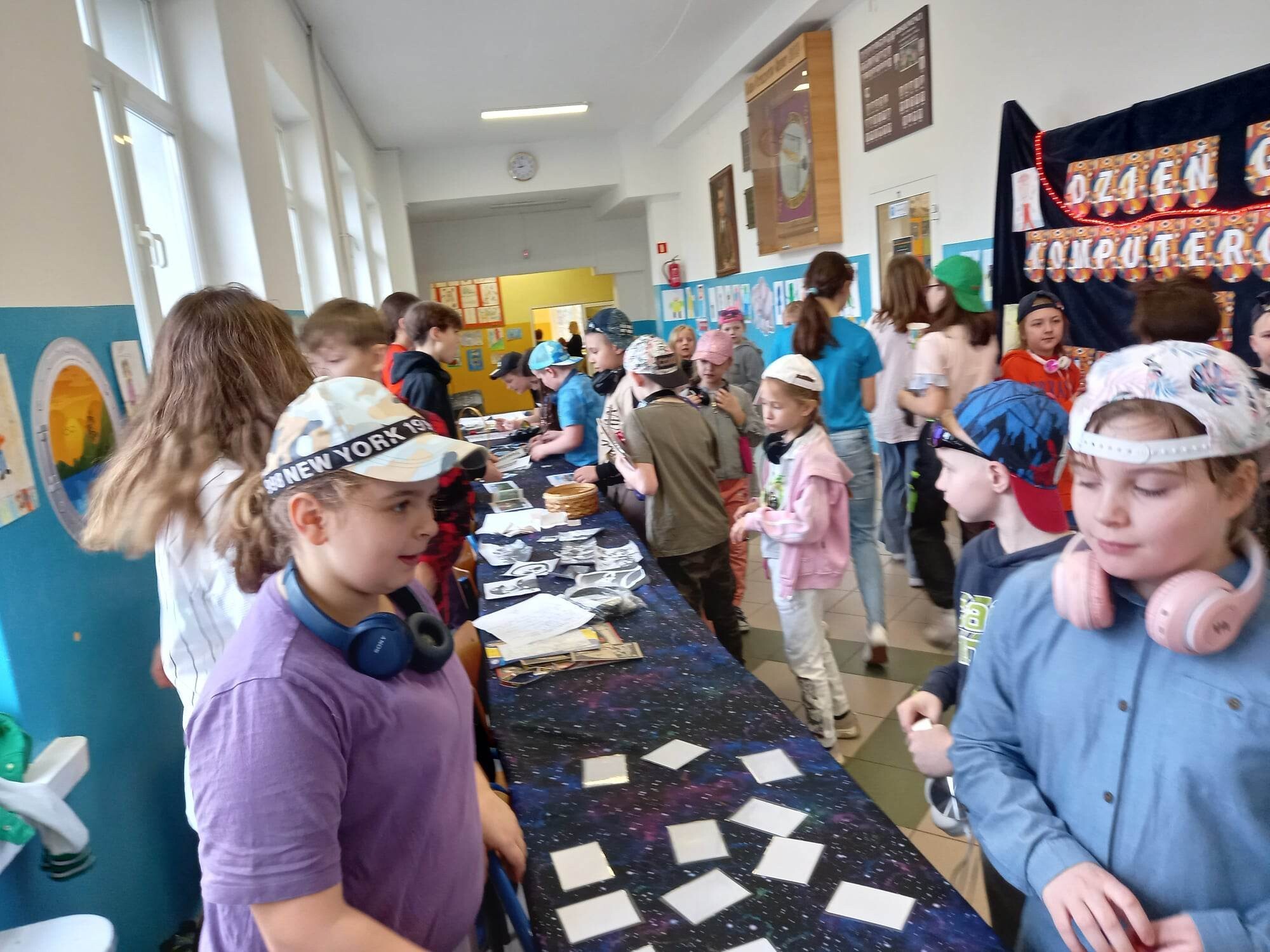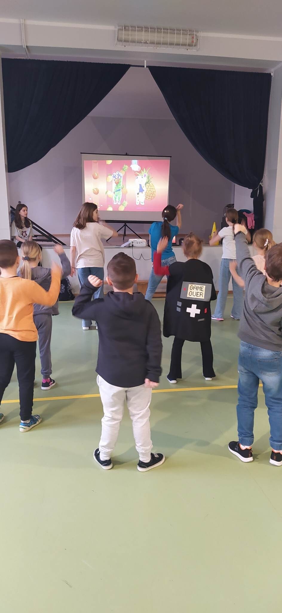 To nie wszystko! Dla najmłodszych roczników starsi uczniowie, działający w Samorządzie Uczniowskim, przygotowali gamingową zumbę, wspólnie tańczoną w małej sali gimnastycznej. Obok na maluchy czekały zajęcia biblioteczne w Bibliotece Szkolnej w Wicku o historii najpopularniejszych planszówek od zarania dziejów po czasy współczesne oraz film o popularności gier komputerowych w stylu retro. Wychowawczynie klas I-III czuwały nad przebiegiem całości i zadbały również o piękny wystrój graficzny obchodów. Na ścianach głównego korytarza szkolnego pojawiło się mnóstwo prac plastycznych naszych uczniów z bohaterami ich ulubionych gier. Nie zabrakło Minecrafta i Robloxa.