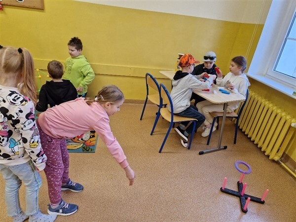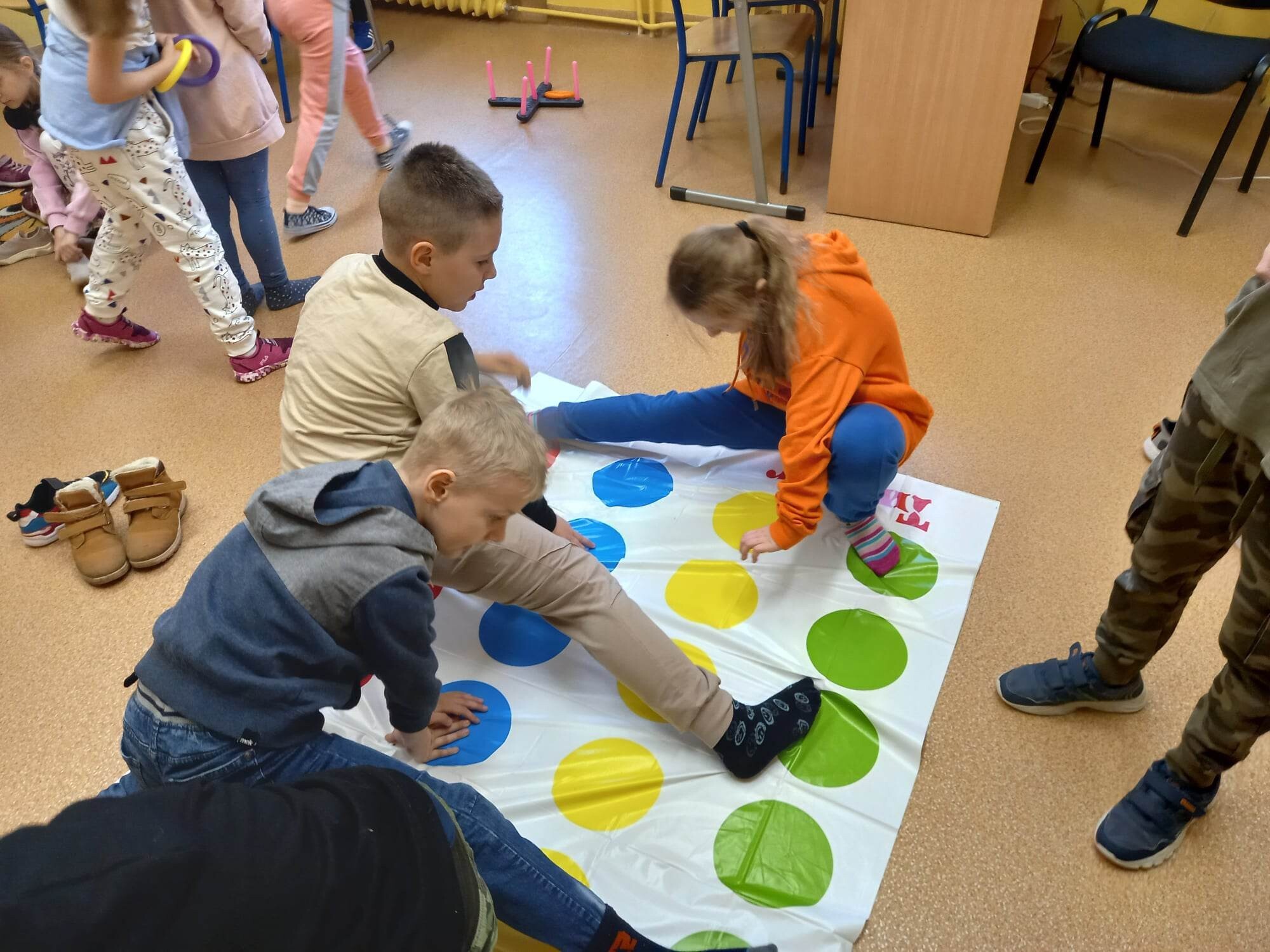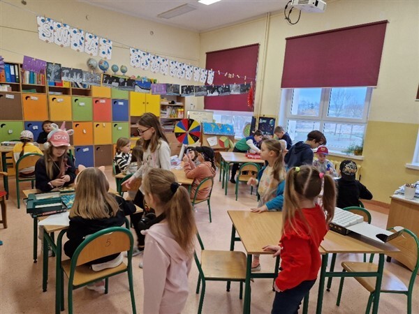 Ale po kolei. Wychowawcy klas I-III już od paru tygodni przygotowywali się do tych obchodów, gromadząc gry planszowe i komputerowe - zarówno te retro, jak i najnowsze egzemplarze. W trakcie obchodów Dnia Gier obowiązywał strój gamingowy: luźne sportowe dresy, fantazyjne, często kolorowe bluzy i przyciemniane okulary, na uszach słuchawki, na głowie różnobarwne czapki i kapelusze. Został opracowany szczegółowy harmonogram działań, zaplanowanych na 22 lutego 2023. W gamingową środę wszystko ruszyło z szybkością błyskawicy. Zajęcia dzieciaków z klas I-III podzielone zostały na 15-minutowe wejścia do konkretnych sal i przestrzeni szkolnej, gdzie umieszczono konkretne atrakcje dla młodszych uczniów Szkoły Podstawowej w Wicku. Wszystko pod okiem starszych uczniów z kl. VA i B, pełniących tego dnia rolę opiekunów stanowisk z atrakcjami. W jednej z klas stworzono tzw. "świat planszówek", zarówno polskich, jak anglojęzycznych. Dominowały tam edukacyjne i rekreacyjne gry planszowe. Obok w sali królował nieśmiertelny twister, zmuszający dzieciaki do wysiłku fizycznego. Na holu głównym na uczniów kl. I-III czekały zagadki, quizy i testy, tematycznie związane z wszelkimi grami - tymi tradycyjnymi, komputerowymi i tymi w wersji on-line.