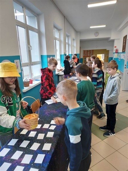 Za każdą odgadniętą zagadkę i poprawną odpowiedź w quizach dzieciaki otrzymywały małą zabawkę i słodki poczęstunek przygotowany nie tylko przez nauczycielki klas początkowych, ale też przez innych nauczycieli SP Wicko, zaangażowanych w ten niecodzienny projekt. Część słodkości zasponsorował Samorząd Uczniowski.