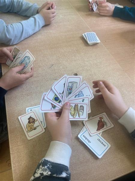 Nie zabrakło również akcentów anglojęzycznych w klasach starszych. Dzień Gier Planszowych i Komputerowych także na lekcjach języka angielskiego to dowód na to, że obojętnie, czy chcemy ćwiczyć części mowy, słownictwo czy też budowę zdania, zawsze możemy wykorzystać do tego gry planszowe, internetowe i komputerowe. Z okazji obchodzonego w naszej szkole święta gier wszelakich, właśnie taki charakter miały tego dnia także lekcje języka angielskiego. Nie tylko nasi angliści, ale też nauczyciele innych przedmiotów przekonali się już dawno, że gry pozwalają w łatwy i przyjemny sposób zapamiętać nowe słownictwo oraz utrwalić struktury gramatyczne. Nauczycielki języka angielskiego skorzystały z gier zakupionych ze środków Polsko - Amerykańskiej Fundacji Wolności w ramach programu English Teaching, który realizowany był przez nauczycieli języka angielskiego kilka lat temu, a także z gier pozyskanych w ramach projektu „Kompetencje kluczowe - nasz przepis na sukces”. Dla utrwalenia i powtórzenia materiału przed testem uczniowie wykorzystali także telefony komórkowe na popularnej stronie internetowej Quizizz. Inni nauczyciele przynieśli na ten dzień też własne, domowe ulubione gry oraz sprzęt komputerowy.