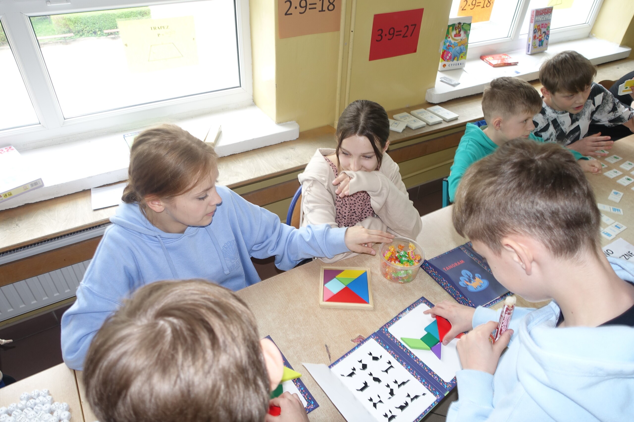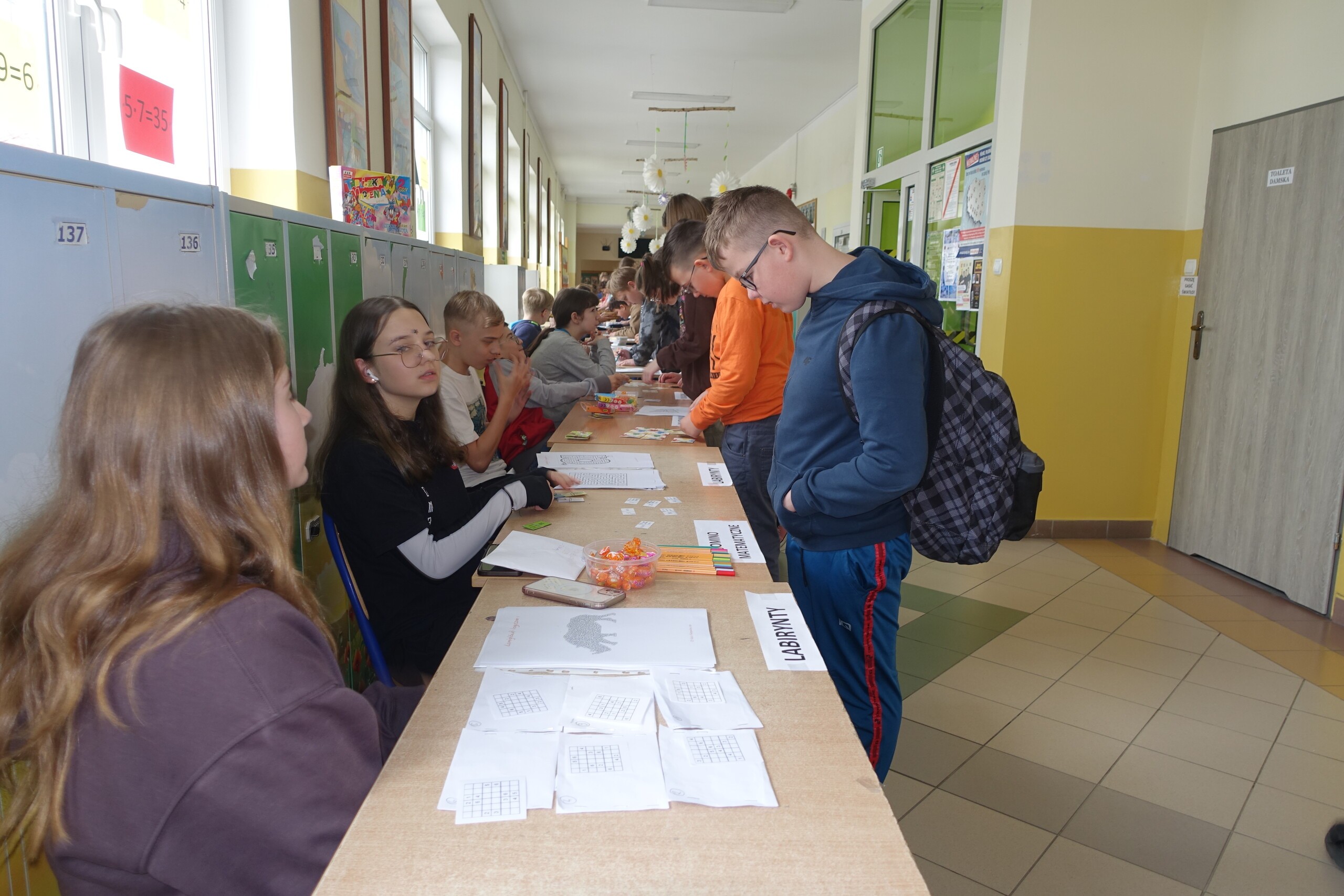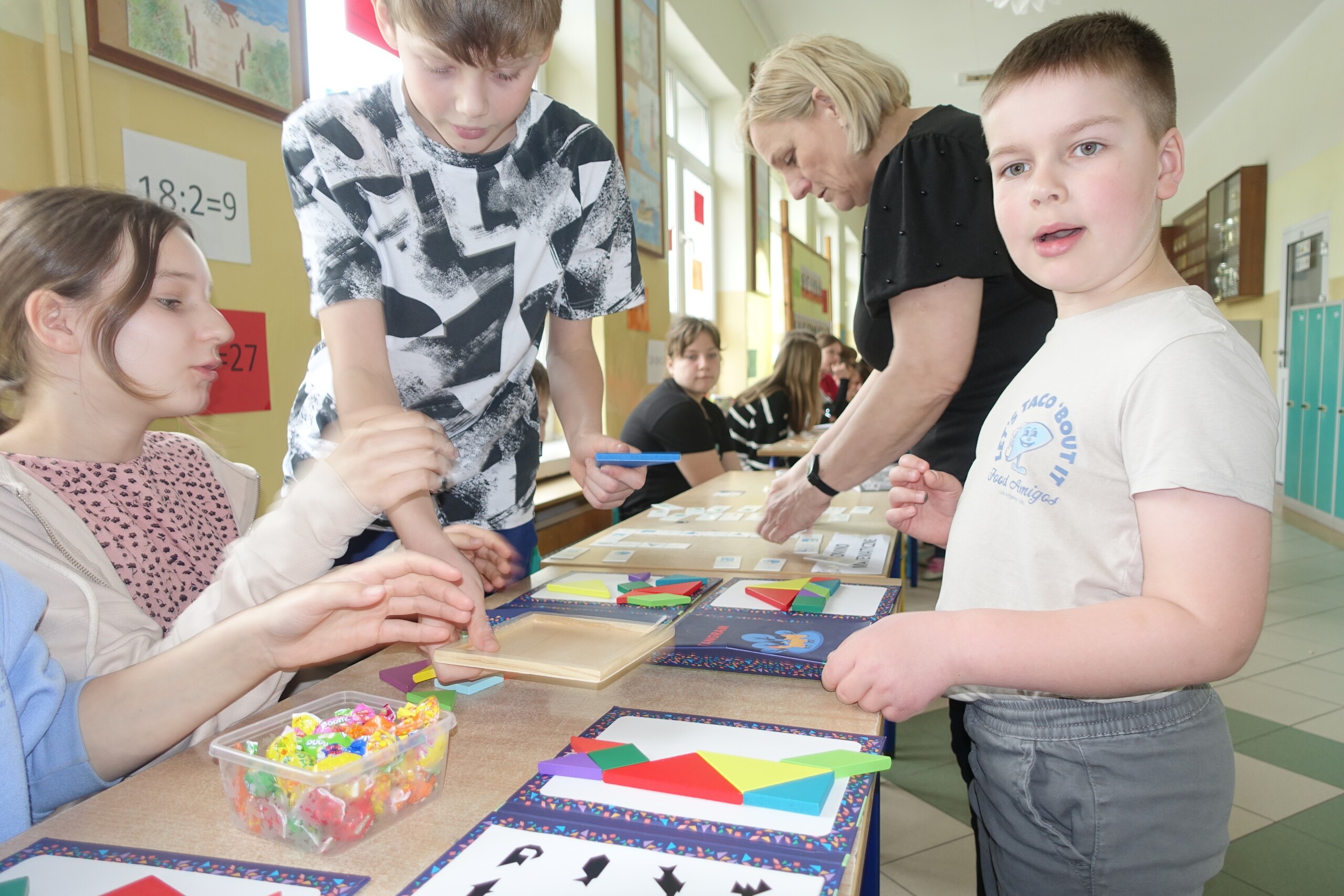 Dziś wielki dzień w naszej szkole dla tych, co uwielbiają cyferki, ułamki i gry logiczne! Hol główny pierwszego piętra SP Wicko w piątek, 12 kwietnia 2024, stał się areną Dnia Matematyki. Skorzystali wszyscy uczniowie, atrakcji spod znaku Królowej Nauk nie brakowało, więc radości i pozytywnych emocji było też co niemiara!