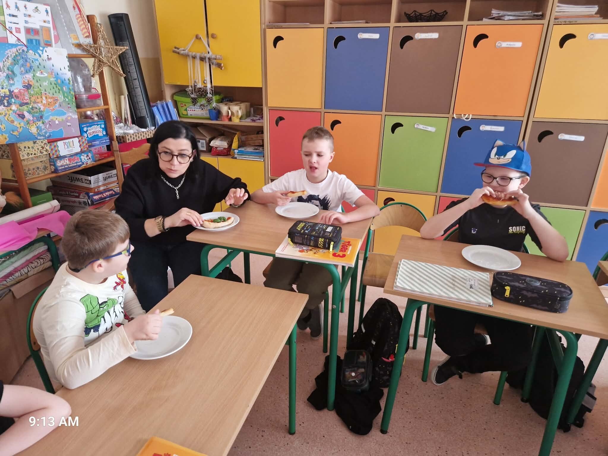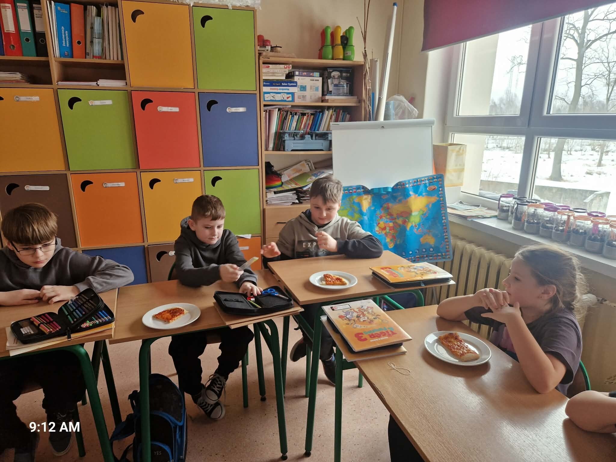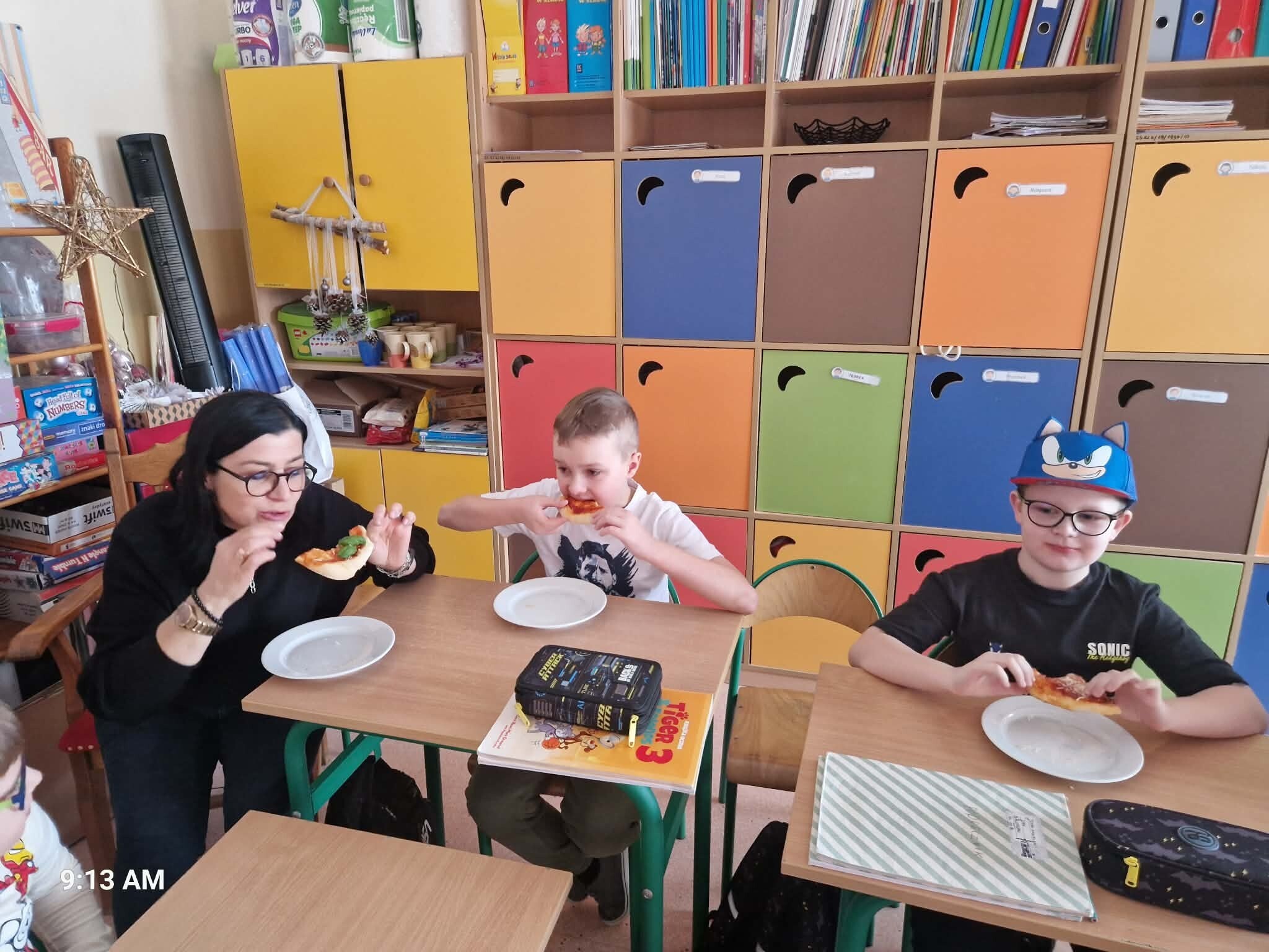 Dzień Pizzy w naszych klasach to był po prostu świetny pretekst, żeby bez wyrzutów sumienia zjeść kawałek ulubionej pizzy, którą sami wykonaliśmy. Czy nam smakowała? A jakże, była wyśmienita, co widać na zdjęciach.