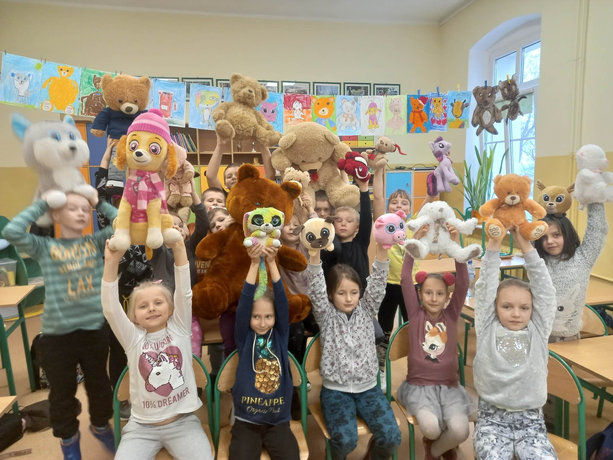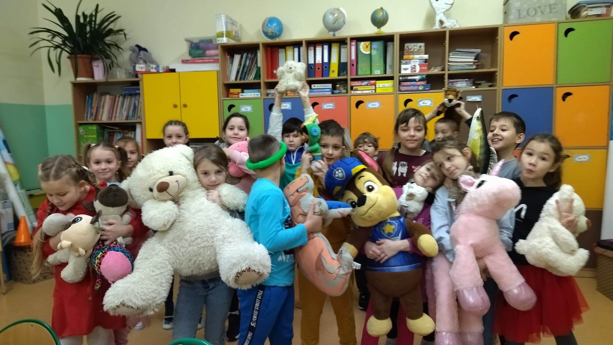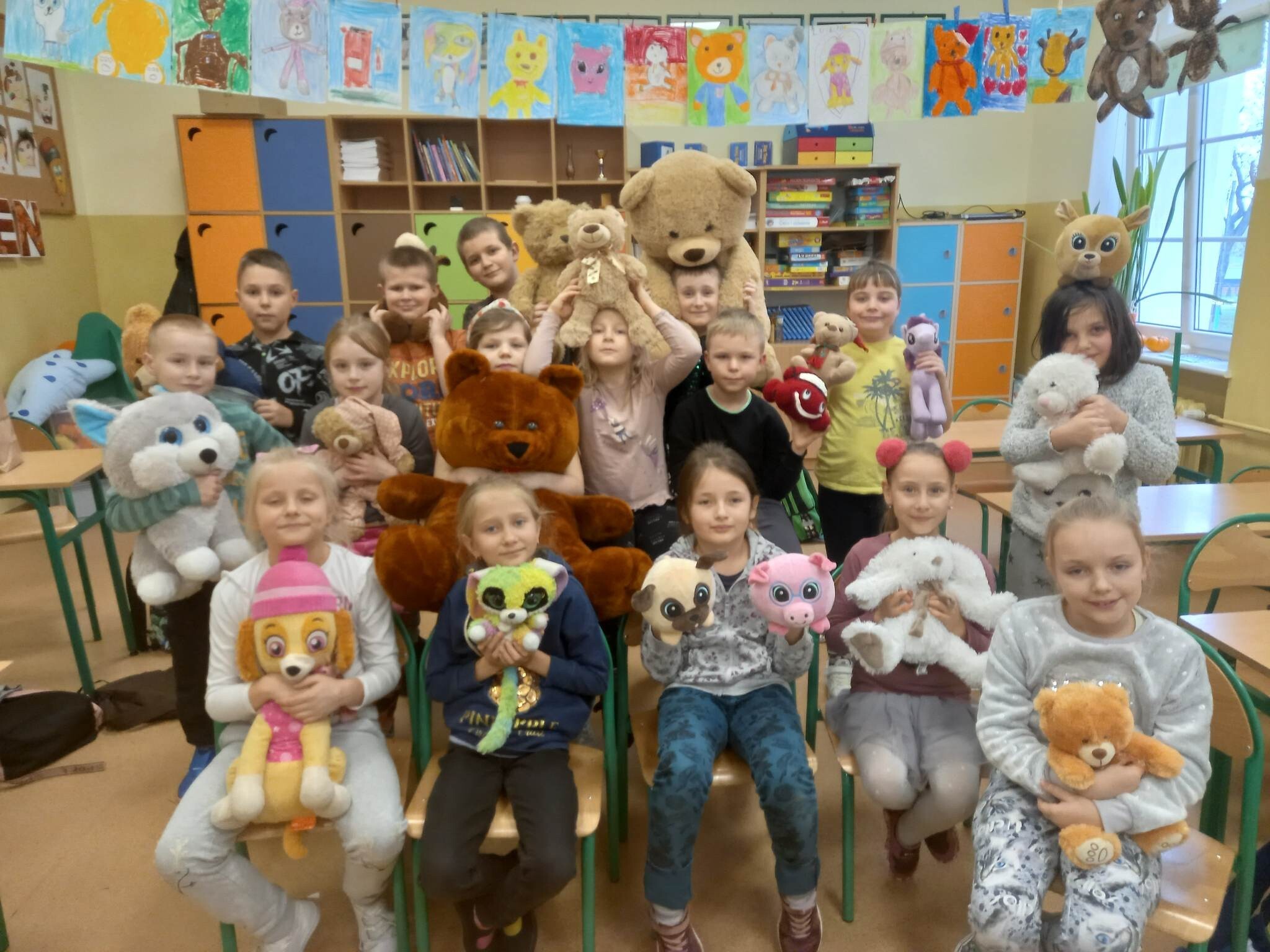 W piątek, 25 listopada, jak co roku odwiedziły nas w szkole nasze przytulanki. To zawsze jest wyjątkowy dzień, gdyż dzieci uwielbiają pluszowe zabawki, które bardzo chętnie uczestniczą we wszystkich naszych zadaniach. Zatem w dniu ich święta kochane misie tworzyły z nami prace plastyczne, ćwiczyły i tańczyły. Było pluszowo i fantastycznie.