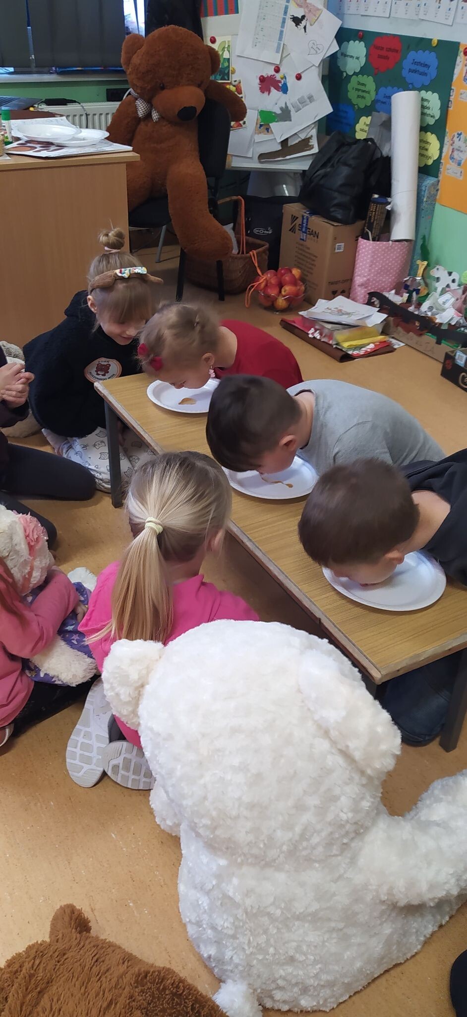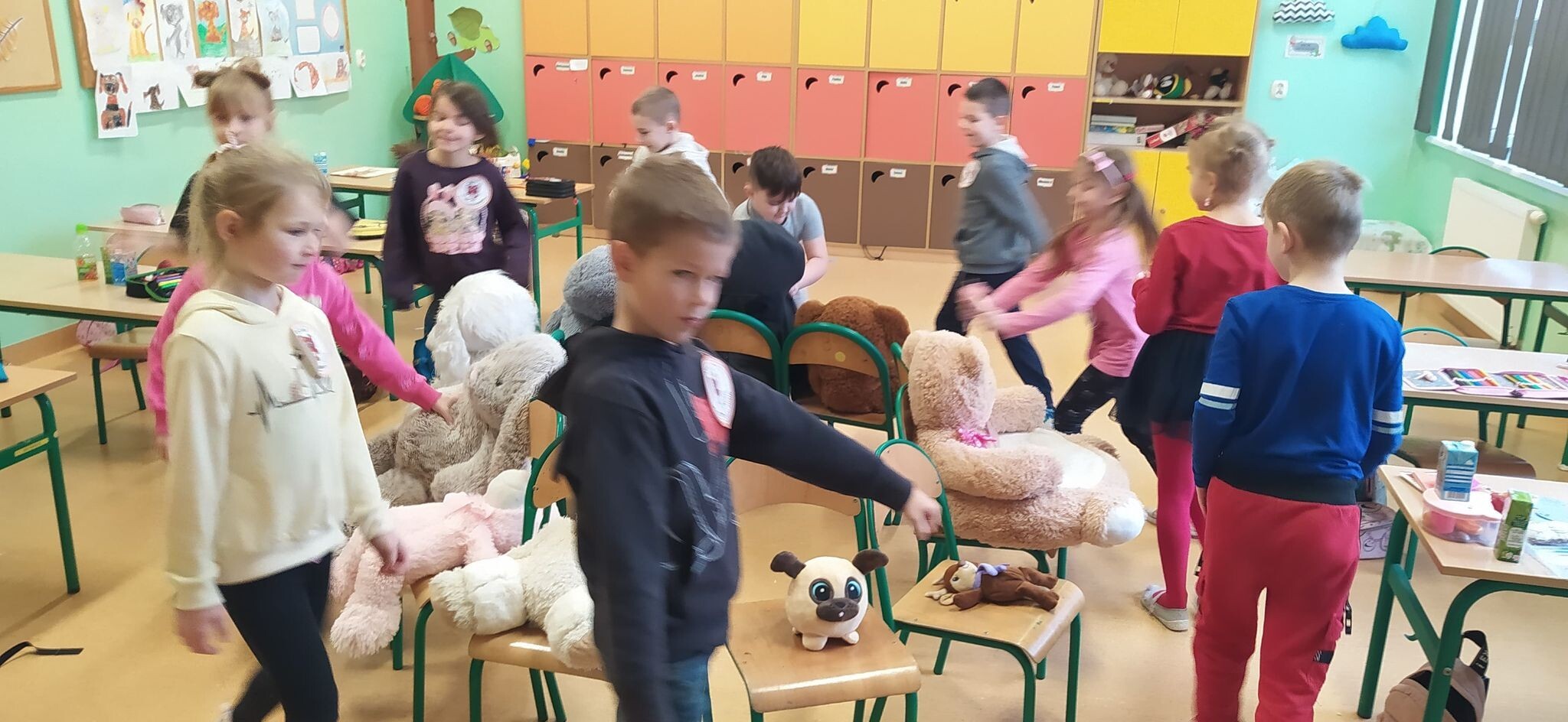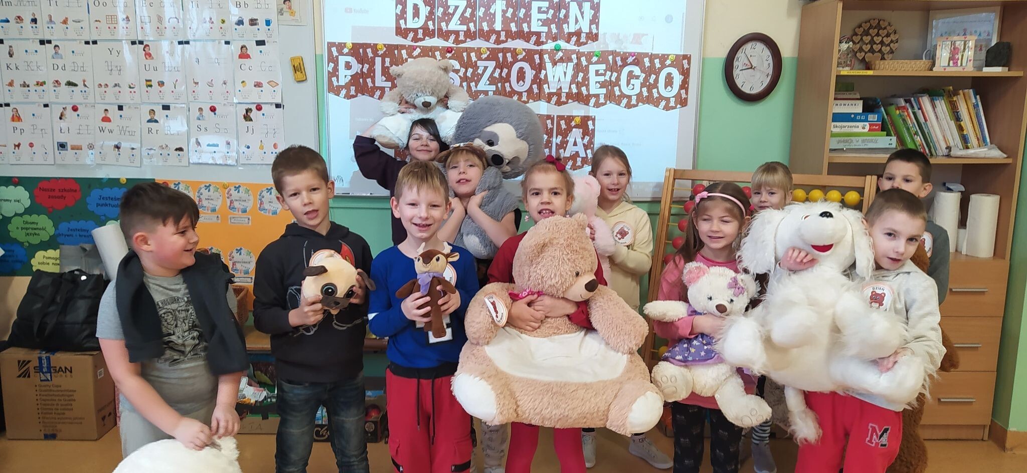 W piątek, 25 listopada, jak co roku odwiedziły nas w szkole nasze przytulanki. To zawsze jest wyjątkowy dzień, gdyż dzieci uwielbiają pluszowe zabawki, które bardzo chętnie uczestniczą we wszystkich naszych zadaniach. Zatem w dniu ich święta kochane misie tworzyły z nami prace plastyczne, ćwiczyły i tańczyły. Było pluszowo i fantastycznie.