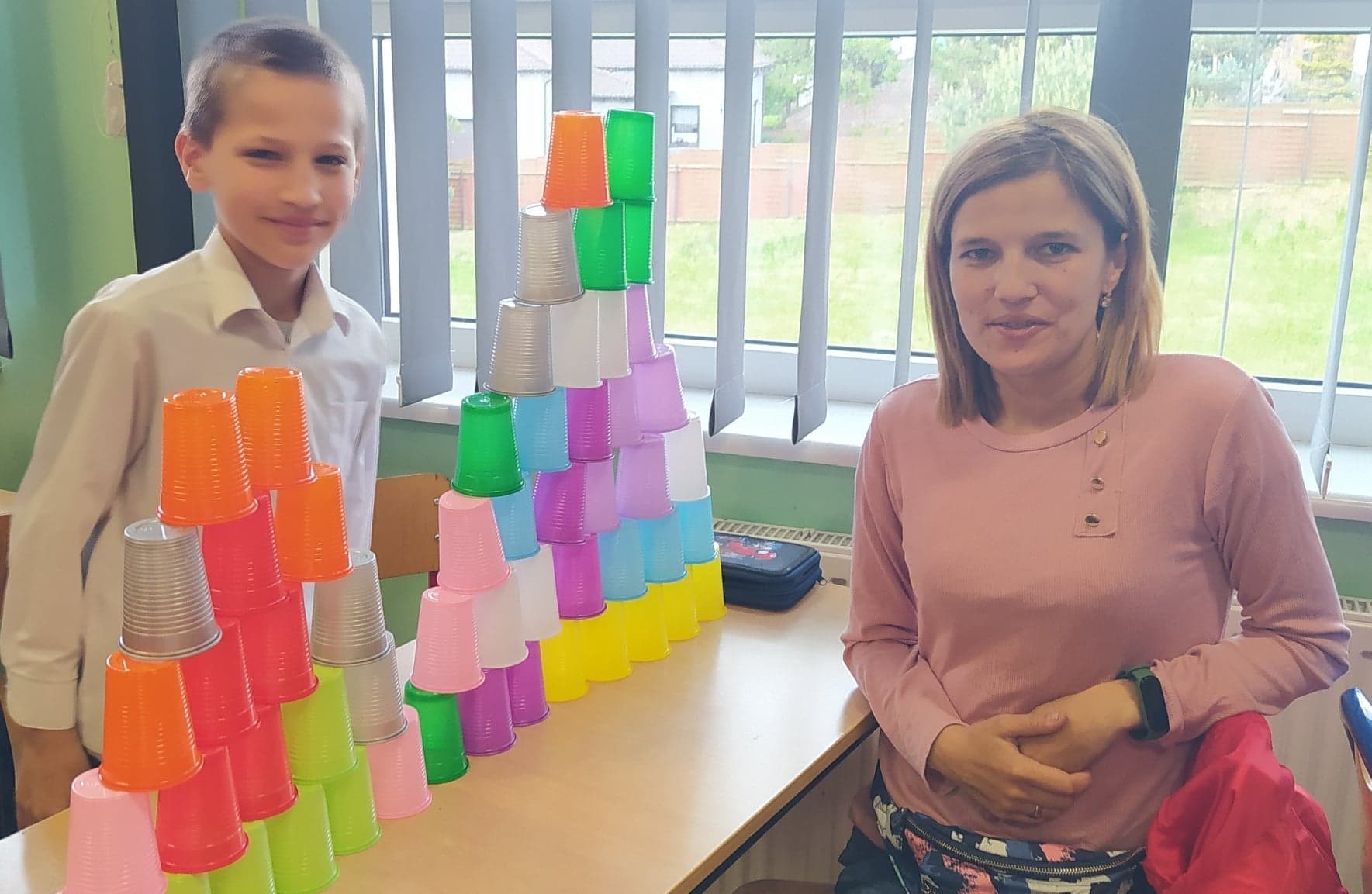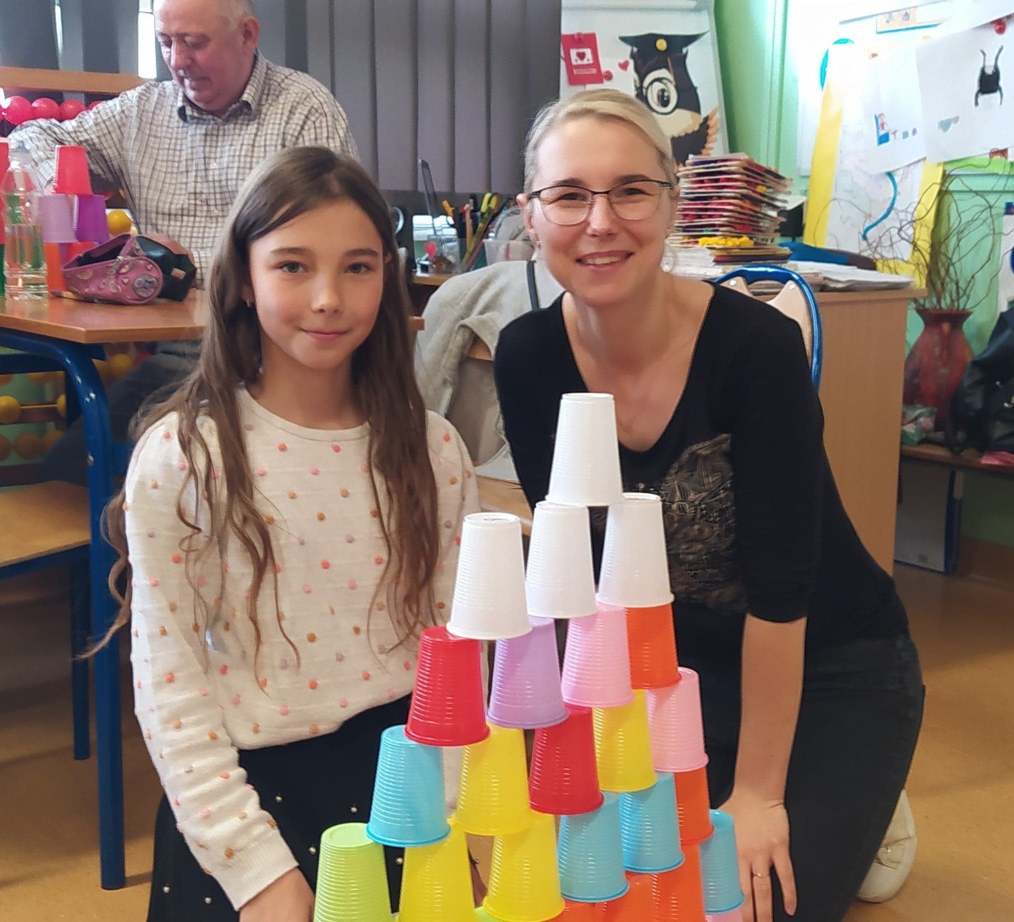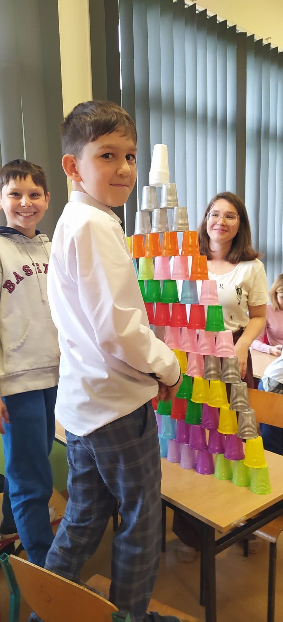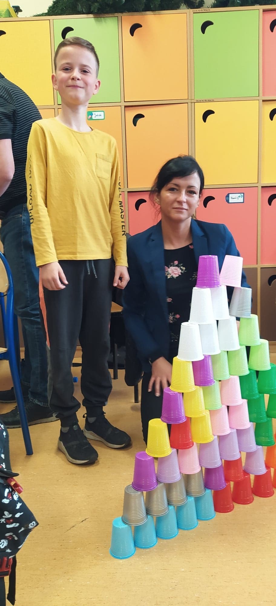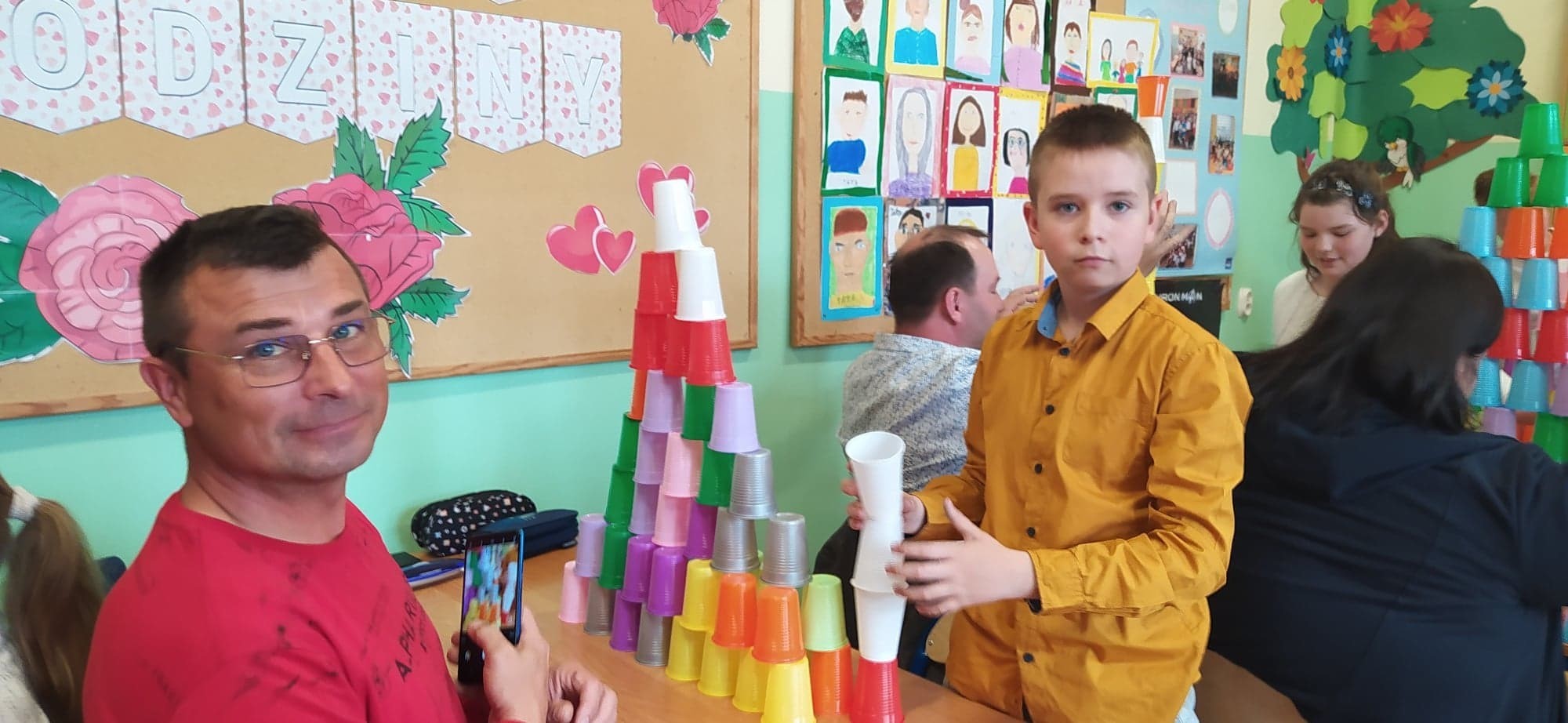 Maj i czerwiec obfitują w wiele świąt związanych z rodziną, dlatego klasa IIIb zorganizowała rodzinne spotkanie pod hasłem "Rodzina to jest siła". Uczniów na zajęciach odwiedzili bliscy, by spędzić wspólnie trochę czasu, na dobrej zabawie. Dzieci wraz ze swoimi gośćmi opisywali się wzajemnie poznanymi częściami mowy, liczyli obwód serca, obliczali zakodowane działania, budowali "kubeczkowe" wieże, odpowiadali na wnikliwe pytania, ułożone z puzzli. Całe spotkanie umililiśmy naszym gościom tańcem i piosenką. Dziękujemy za te miłe chwile, na podsumowanie pierwszego etapu edukacji.