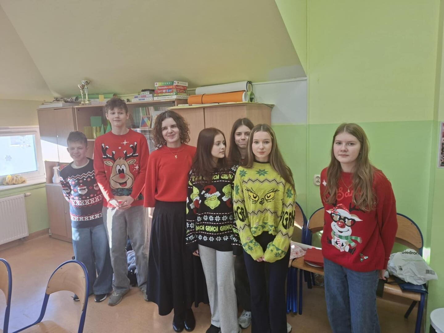 Dziś (19.12.2025) w naszej szkole zrobiło się wyjątkowo kolorowo i świątecznie! Wszystko za sprawą organizowanego przez klasę VIIb Dnia Świątecznego Sweterka, który wprowadził nas w radosny, bożonarodzeniowy nastrój.