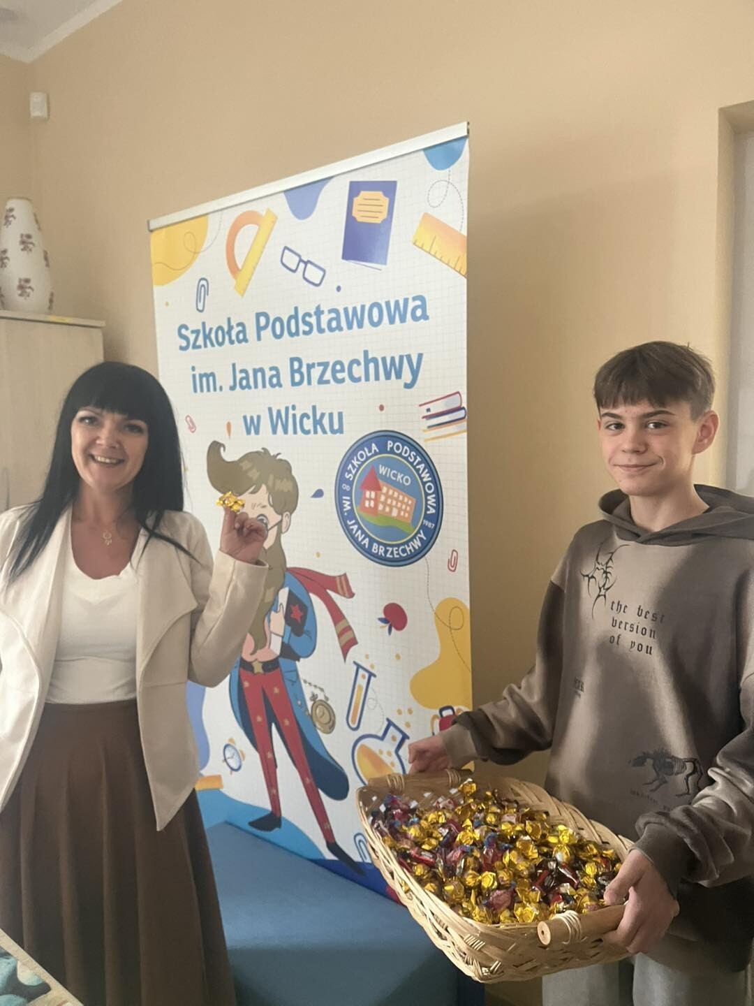 Samorząd Uczniowski zadbał o to, by dziś uśmiech pojawił się na każdej twarzy – słodka niespodzianka w postaci cukierka sprawiła, że atmosfera w szkole była jeszcze bardziej pogodna i pełna życzliwości.