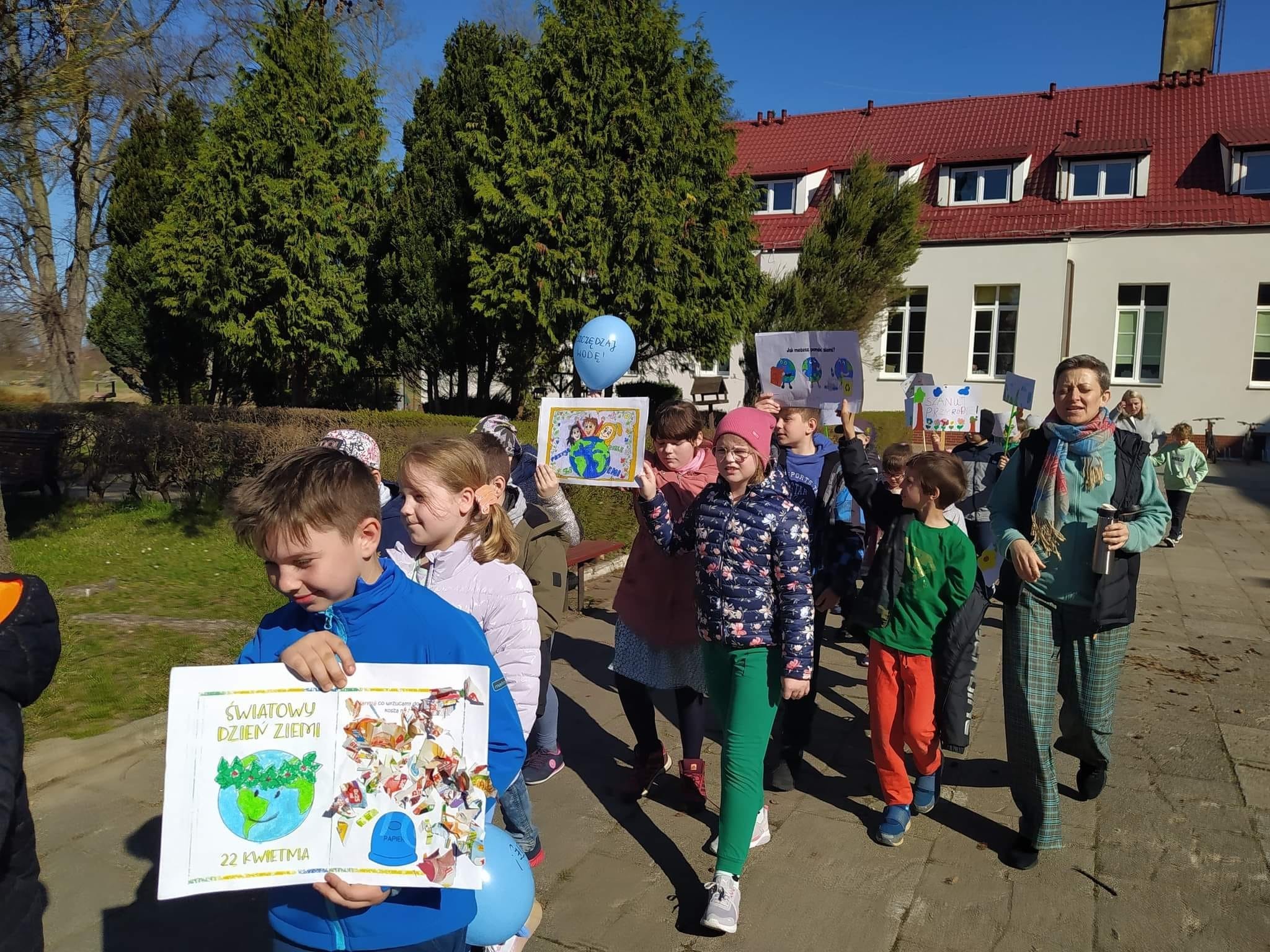 Z okazji obchodów Dnia Ziemi uczniowie klas I-III odbyli cykl zajęć mających na celu uświadomienie wszystkim, jak ważną sprawą jest dbanie o nasze wspólne dobro, jakim jest nasza planeta Ziemia. Dzieci już wiedzą, że to od nas wszystkich zależy, jakim powietrzem będziemy oddychać i jaką Ziemię zostawimy przyszłym pokoleniom. Dlatego na wspólnym happeningu przyświecało nam hasło "Zostań Ziemi przyjacielem, Ziemię z nami chroń".