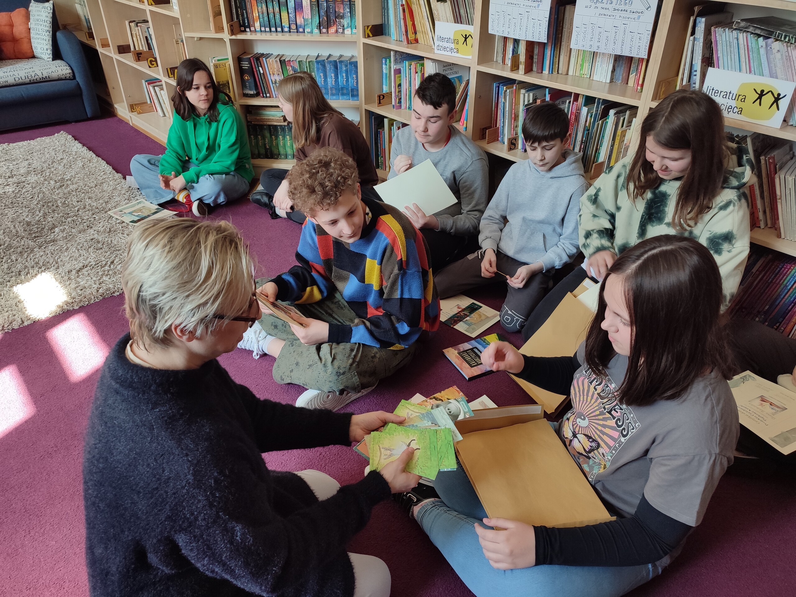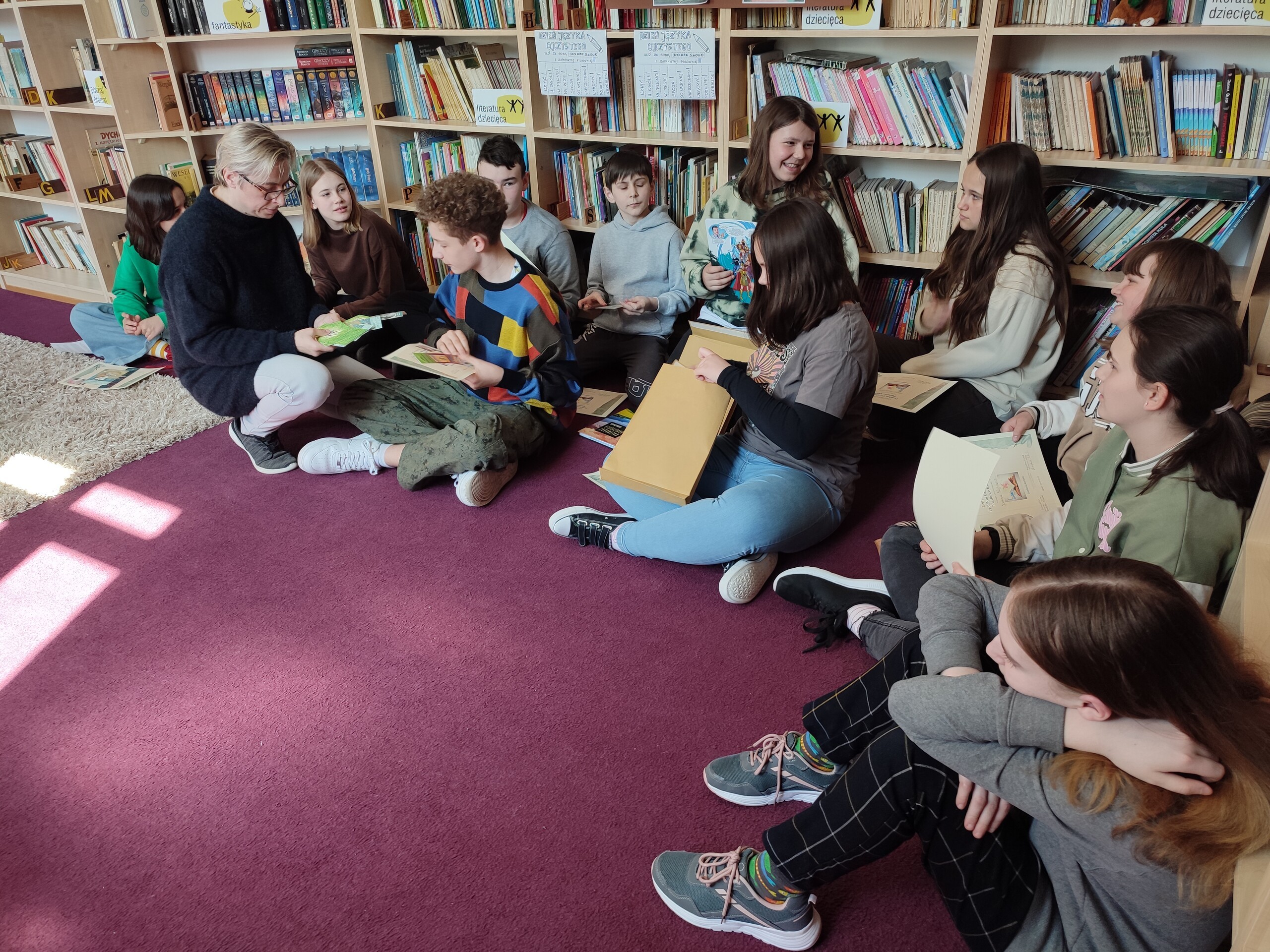 W czwartek, 20 kwietnia 2023, w Bibliotece Szkolnej w Wicku razem z kl. VIA podsumowaliśmy projekt czytelniczy "Piątkowe Książki". Co tydzień w lutym i marcu szóstoklasiści przychodzili do biblioteki, wypożyczali książki, które nie były szkolnymi lekturami, i na tej podstawie tworzyli zakładki, pisali recenzje przeczytanych utworów i wypełniali indywidualne karty projektu.