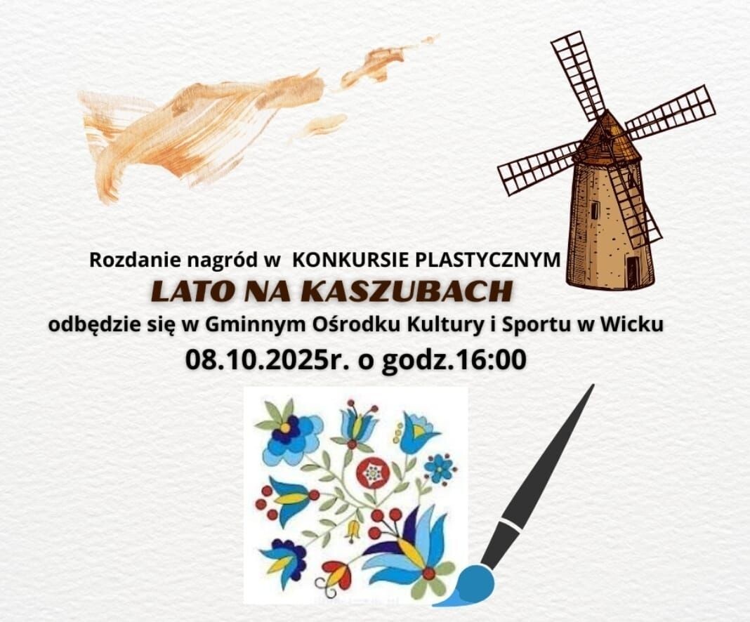 GOKiS Wicko zaprasza wszystkich uczestników konkursu plastycznego "Lato na Kaszubach" na uroczyste rozdanie nagród, które odbędzie się w najbliższą środę, 8 października o godz. 16:00.