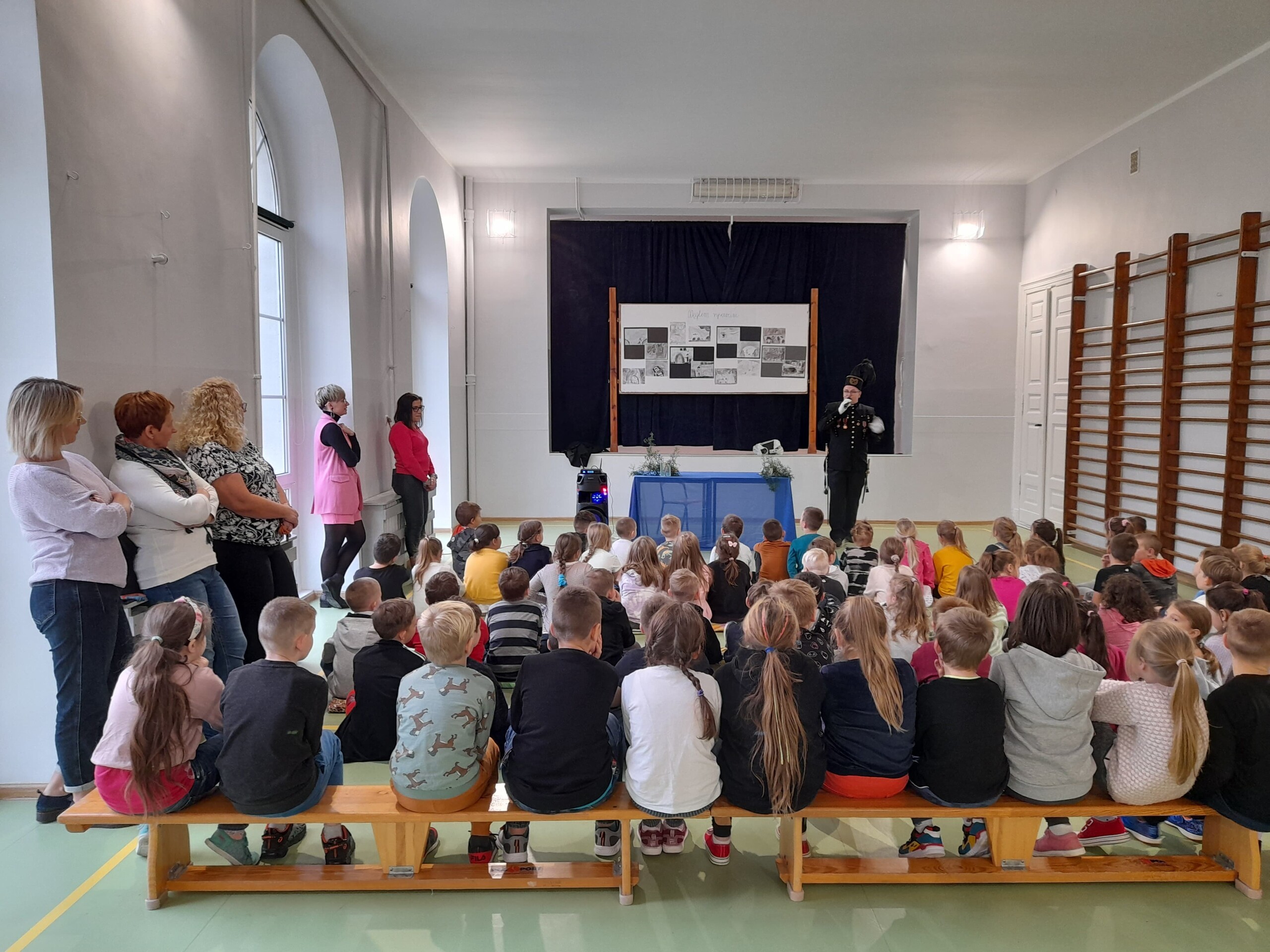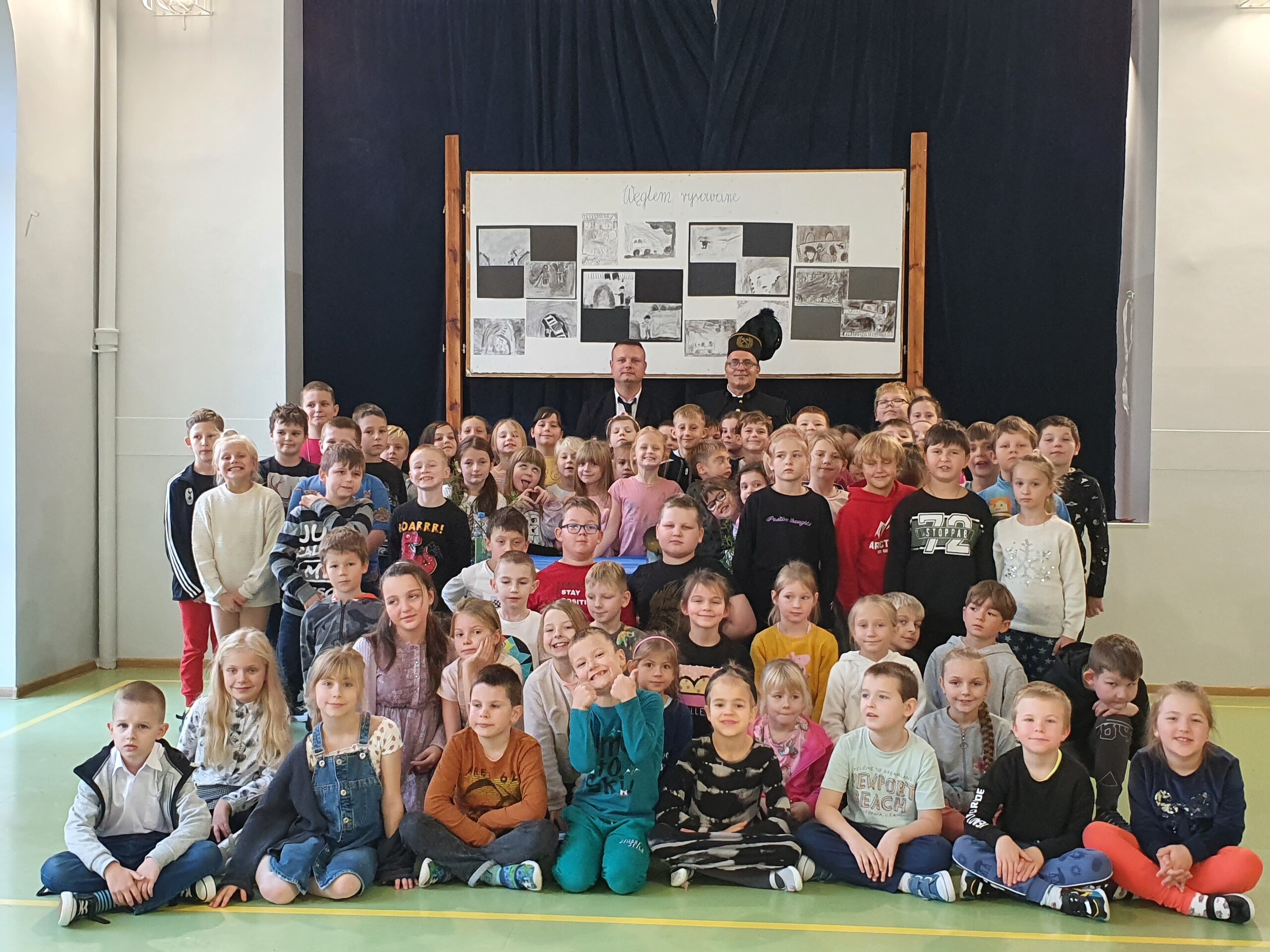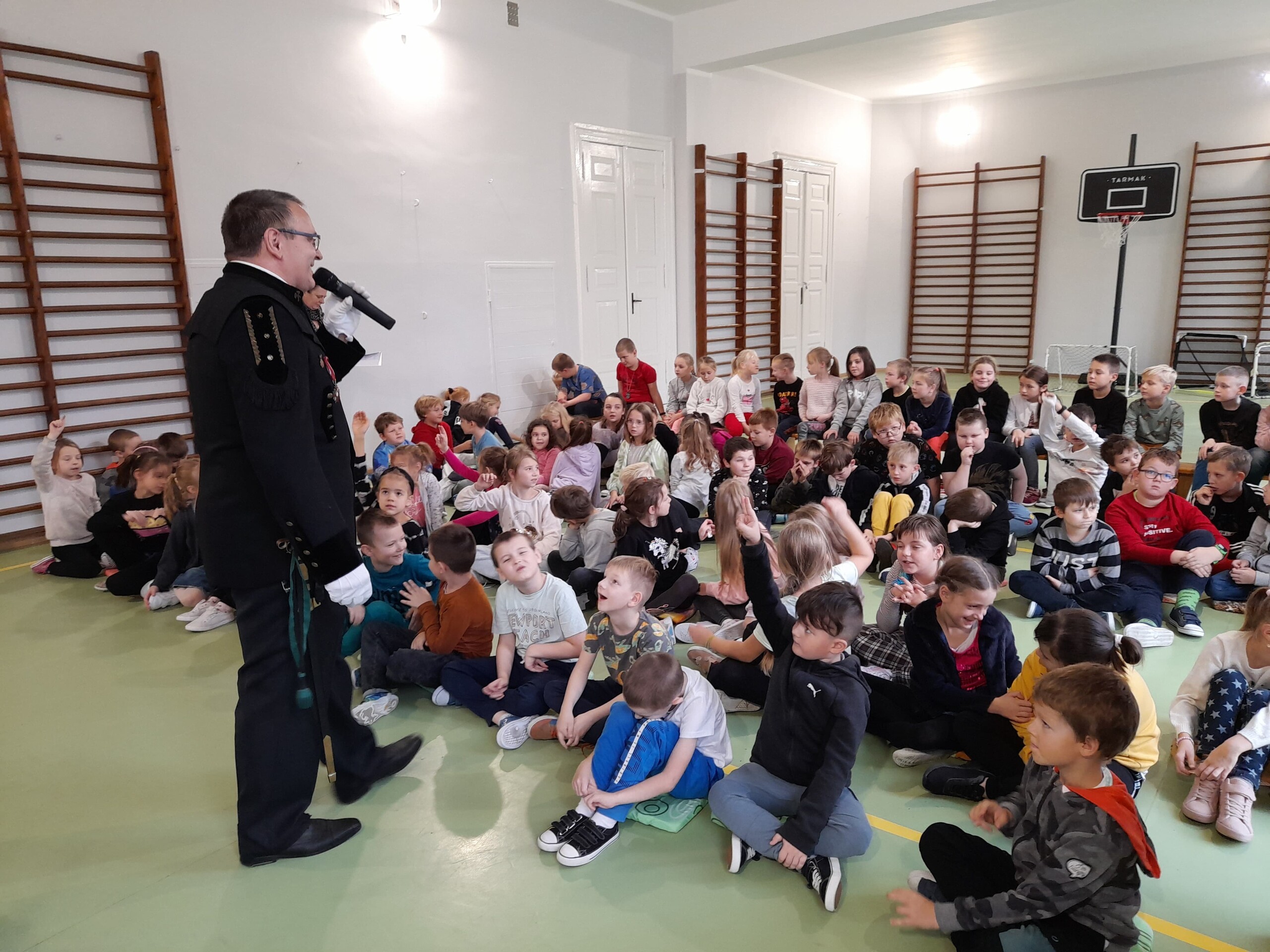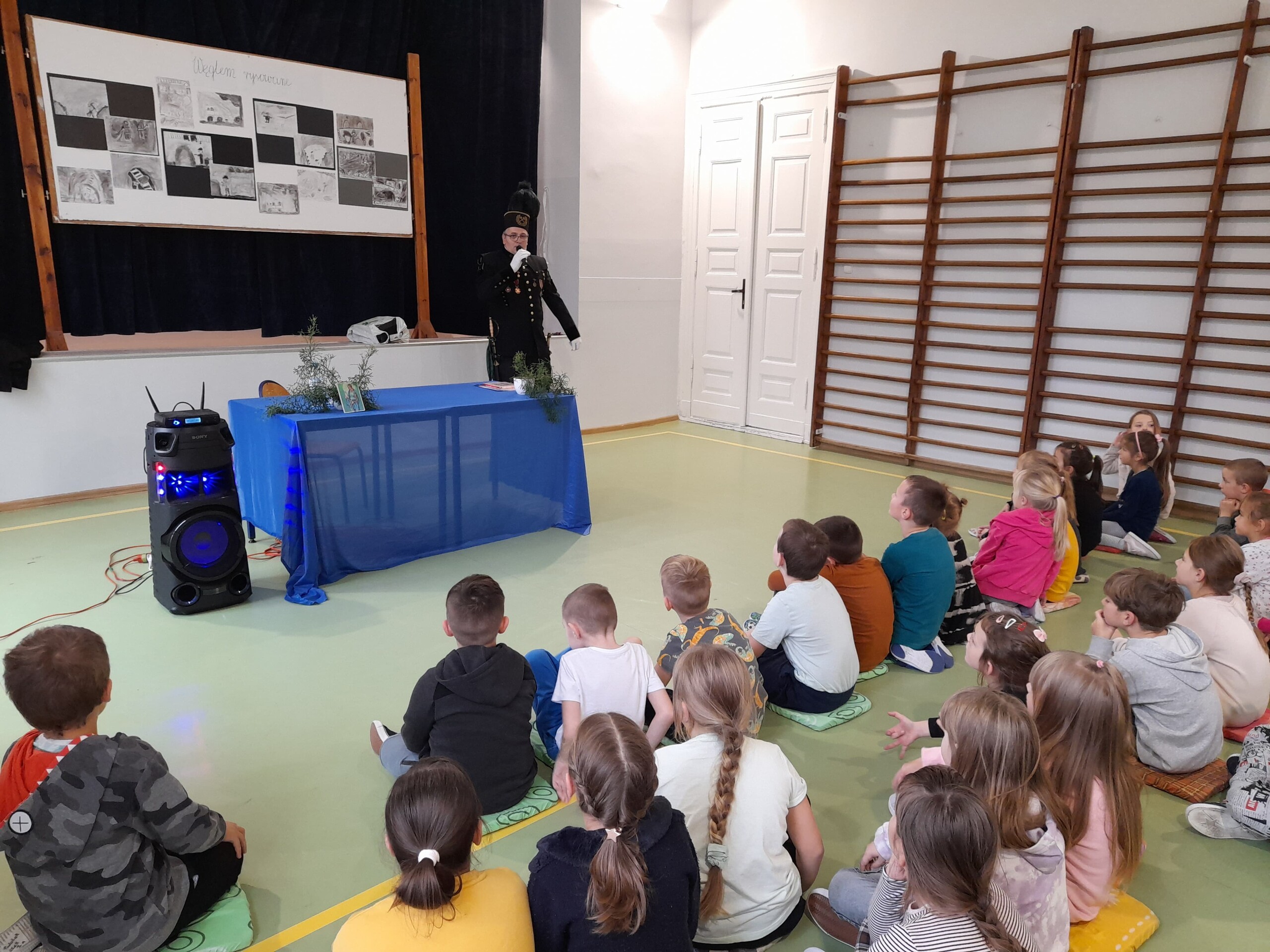 27 października odwiedził naszą szkołę ciekawy Gość. Otrzymał zaproszenie od wychowawczyni III B by przybliżyć uczniom klas I-III, jak wygląda praca górnika. Pan Wojciech przedstawił się po Śląsku i po chwili zaczął mówić po naszemu. Krótko opowiedział o pracy w kopalni i od razu przeszedł do pytań od dzieci. Zaprezentował mundur górniczy, czako-nakrycie głowy. Opowiedział o szpadzie i kordziku,które otrzymał jako nagrody za pracę w kopalni. Zaprezentował też dwie lampki, z których jedna była kiedyś wykorzystywana do oświetlenia kopalni a druga służyła do zabezpieczenia górnika. Gdy przestawała się świecić, to należało szybko uciekać, bo mógł nastąpić wybuch. Podziękowaliśmy panu za spotkanie i zrobiliśmy wszyscy wspólne zdjęcie z ciekawym Gościem.