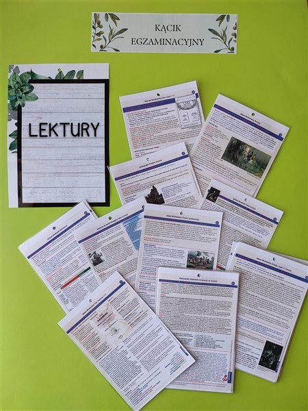 | | Lektury obowiązkowe na egzaminie ósmoklasisty w 2023 r. i 2024 r.: 1) Charles Dickens, Opowieść wigilijna; 2) Aleksander Fredro, Zemsta; 3) Jan Kochanowski, wybór fraszek i trenów, w tym tren VII i VIII; 4) Aleksander Kamiński, Kamienie na szaniec; 5) Adam Mickiewicz: Reduta Ordona, Śmierć Pułkownika, Świtezianka, Dziady część II, Pan Tadeusz (całość); 6) Antoine de Saint-Exupéry, Mały Książę; 7) Henryk Sienkiewicz: Quo vadis, Latarnik; 8) Juliusz Słowacki, Balladyna; 9) wiersze wybranych poetów. |