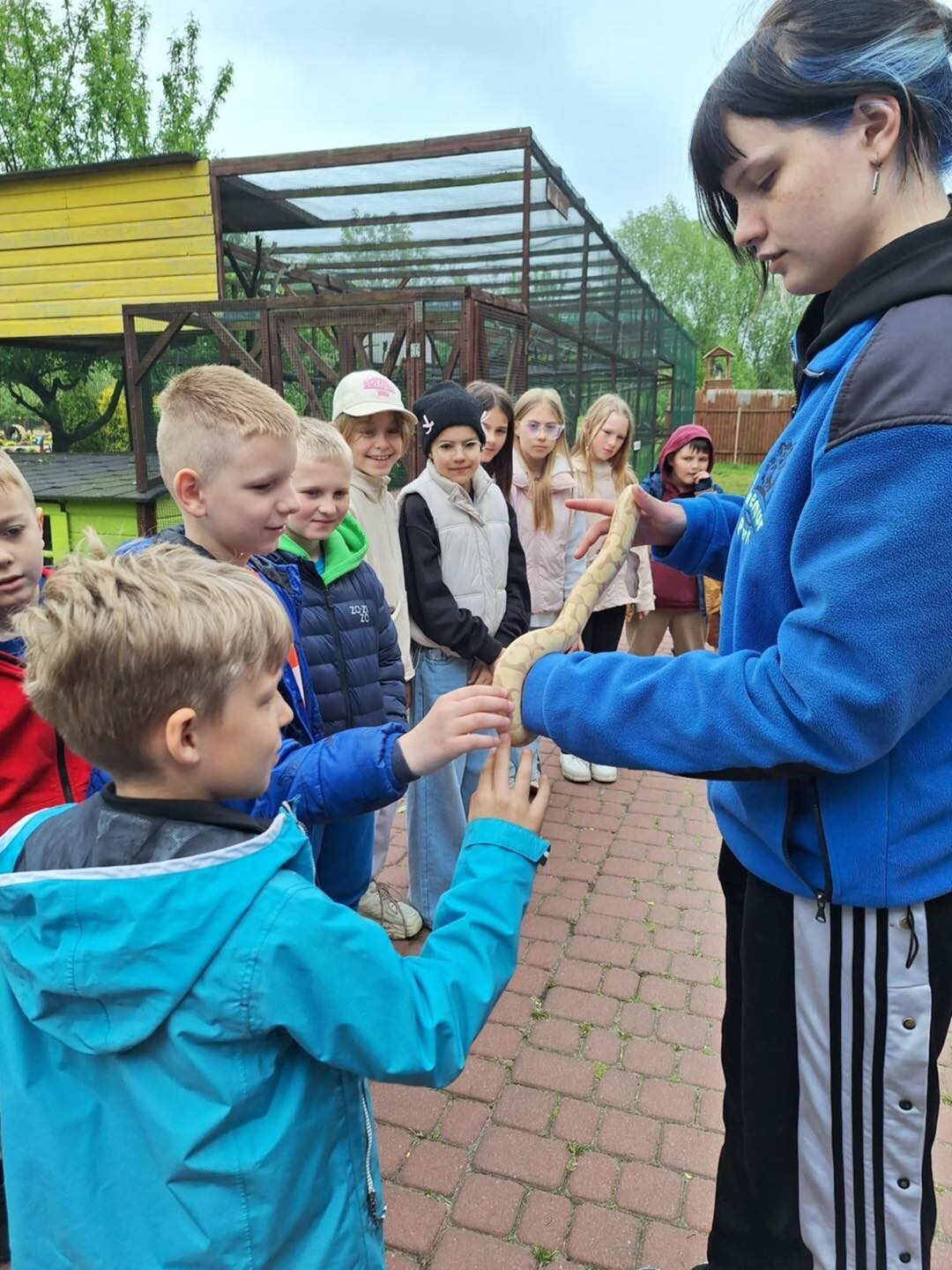 Podczas wizyty dzieci miały okazję poznać i nakarmić wiele egzotycznych i domowych zwierząt, takich jak lemury, węże, kozy, kury, iguany, alpaki, króliki, kangury oraz surykatki. Spotkanie z tak różnorodnymi gatunkami było niezwykłą atrakcją i dostarczyło dzieciom wielu niezapomnianych wrażeń.