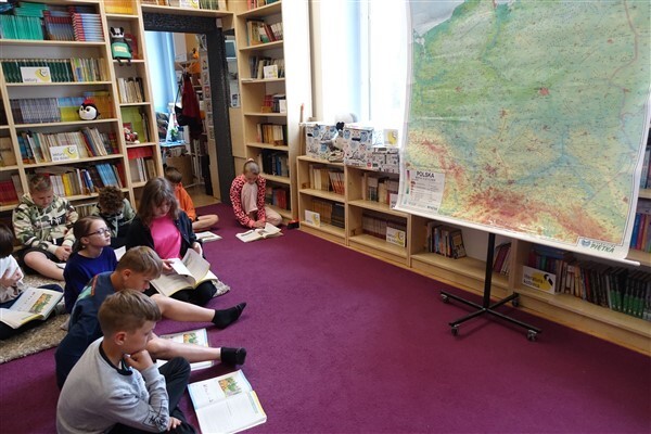 Ale to był tylko przedsmak tego, co na zajęciach czytelniczych w Bibliotece Szkolnej w Wicku czekało na naszych uczniów: koło fortuny z możliwością wylosowania fragmentów różnych polskich legend dotyczących najróżniejszych miejsc geograficznych rozsianych po całym kraju, a także przygotowane fragmenty legend, które czwartoklasiści sami odczytywali na głos. Następnie pokazywali znajdujące się na mapie charakterystyczne dla legend miejsca, m. in. Kruszwicę z legendy o Piaście Kołodzieju, Wieliczkę z "Wiana św. Kingi", Kraków z legendy o Szewczyku Dratewce i smoku wawelskim, Toruń z legendy o toruńskich pierniczkach czy też Warszawę z legendy o syrence i bazyliszku.