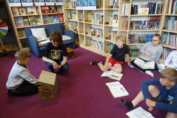 A skoro hasłem przewodnim tegorocznych obchodów czytelniczych było zdanie, że książka jest jak ogród, czwartoklasiści z klasy A nie tylko samodzielnie zapoznali się z nadmorską legendą, słuchali jej w wersji pliku audio, ale też komentowali wydarzenia, elementy fantastyczne i prawdopodobne, które wystąpiły w legendzie, oglądali zdjęcia przyrodnicze mikołajka, pokazywali na mapie region, o którym mowa jest w tekście Zdzitowieckiej, a nawet dopasowywali do wydarzeń wylosowane przedmioty, o których mowa była w utworze.