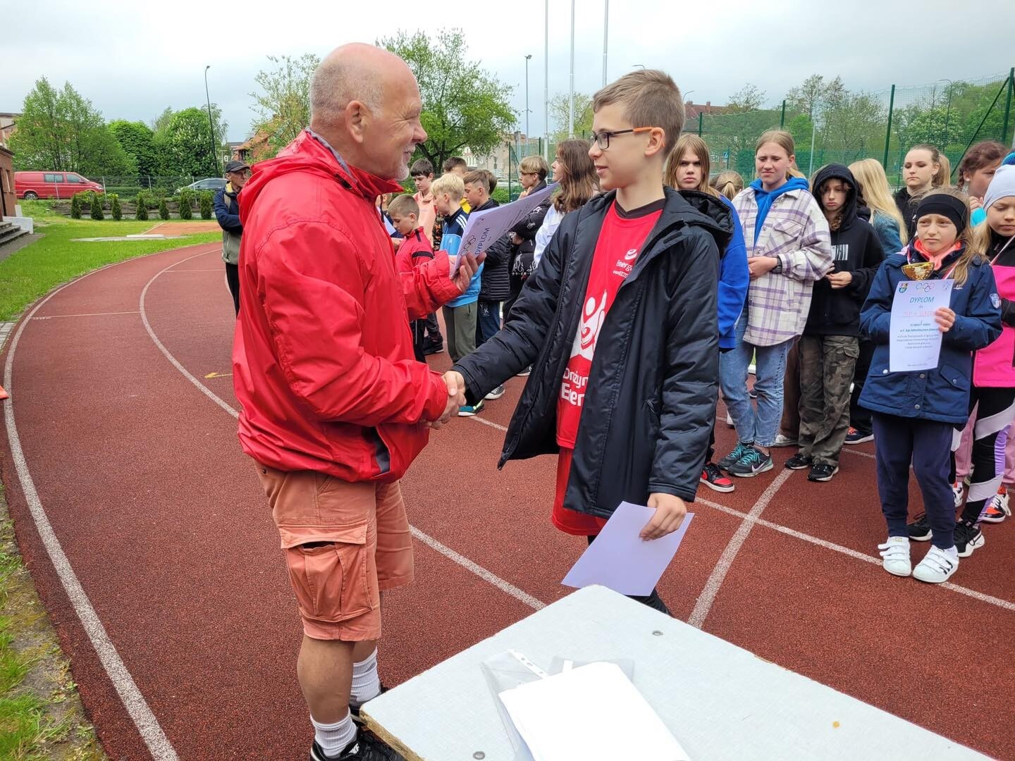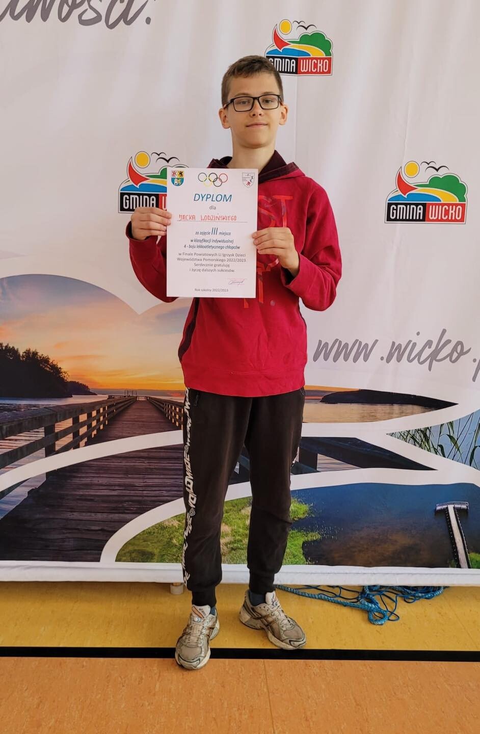 W zawodach powiatowych reprezentacja chłopców zajęła IV miejsce w czwórboju lekkoatletycznym. Skład drużyny był mocno osłabiony (wycieczka klas piątych). Mimo tego zmiennicy również walczyli bardzo ambitnie. Indywidualnie Jacek Lodziński zajął III miejsce. Gratulujemy! Były to ostatnie zawody w tym roku szkolnym w ramach Igrzysk Dzieci.