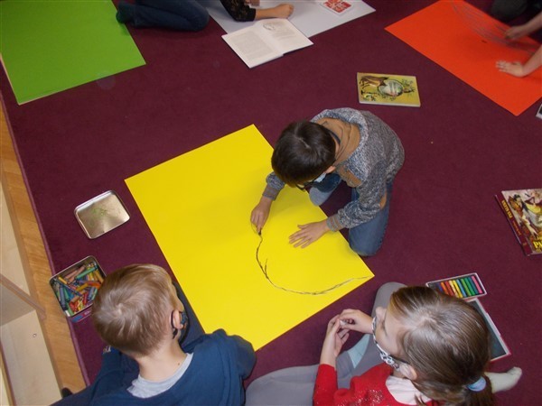 Biblioteczne zajęcia wspomnieniowe z dziećmi i młodzieżą naszej szkoły składają się zazwyczaj z dwóch części: poglądowej i warsztatowej. Podczas warsztatów uczniowie sami tworzą swoje prace - indywidualnie i grupowo. W przypadku lekcji "zaduszkowych" na temat prac ilustracyjnych J. M. Szancera czwartoklasiści musieli wykazać się talentem plastycznym i w grupach stworzyć wspólnie rysunki w stylu wybitnego rysownika. Wcześniej jednak dwoje uczniów wzięło udział w minutowej konkurencji rysowania swojej ilustracji do jednego z wierszy Jana Brzechwy. Patron Szkoły Podstawowej w Wicku był przyjacielem Szancera i to Szancer właśnie jako pierwszy ilustrował "Akademię pana Kleksa". Po wojnie również Szancer przygotował rysunki do Brzechwowych klasyków dziecięcej literatury w stylu "Kaczki Dziwaczki" czy "Szelmostw Lisa Witalisa". Całe pokolenia dzieci pierwsze swoje przygody z literaturą poznawały z pomocą Szancerowych ilustracji, do których wraca się w kolejnych wydaniach reprintowych książek Brzechwy, Tuwima, Konopnickiej czy Collodiego ze słynną sygnaturą JMS. Niezwykle istotne jest przedłużenie tej pokoleniowej sztafety na najmłodsze roczniki dzieci, dla których nazwisko Szancera jest już anonimowe.