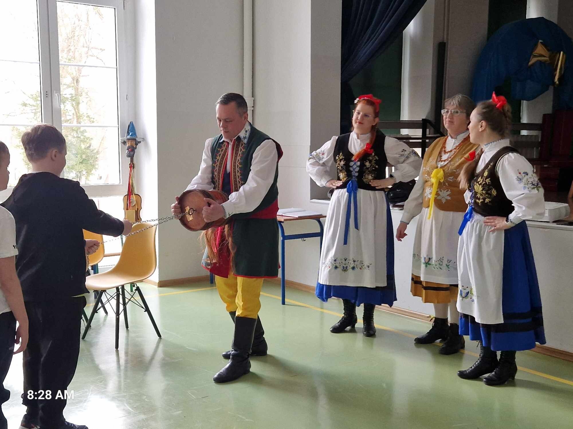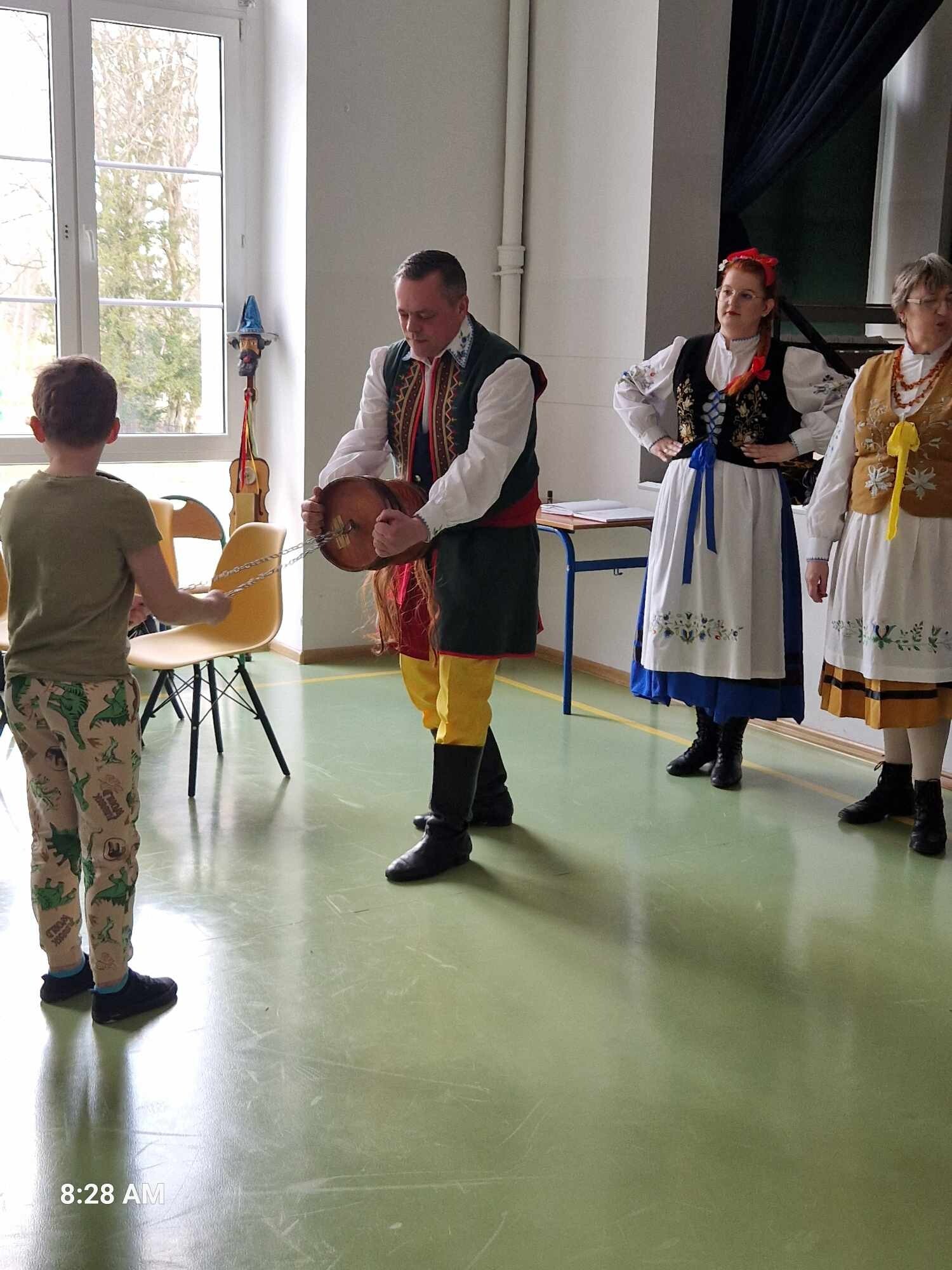 Czy wiece, jak się tańczy taniec klepocz? Ile osób jest potrzebnych do grania na burczybasie? W jaki sposób zagrać na diabelskich skrzypcach? - na te i inne pytanie, związane z tradycją muzyczną regionu kaszubskiego nasi drugoklasiści mogli znaleźć odpowiedź dzięki temu, że wzięli udział w warsztatach przeprowadzonych przez członków zespołu LEVINO z Lęborka. Z serca dziękujemy za przeprowadzenie arcyciekawych zajęć z okazji zbliżającego się Dnia Jedności Kaszubów! Dzieciaki były zachwycone!
