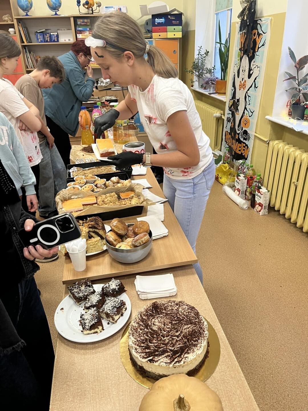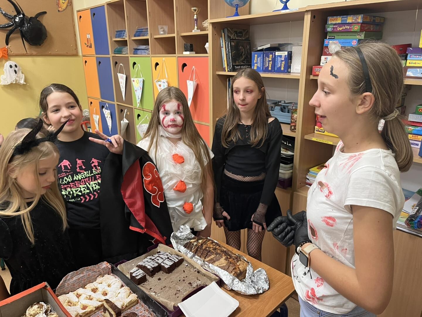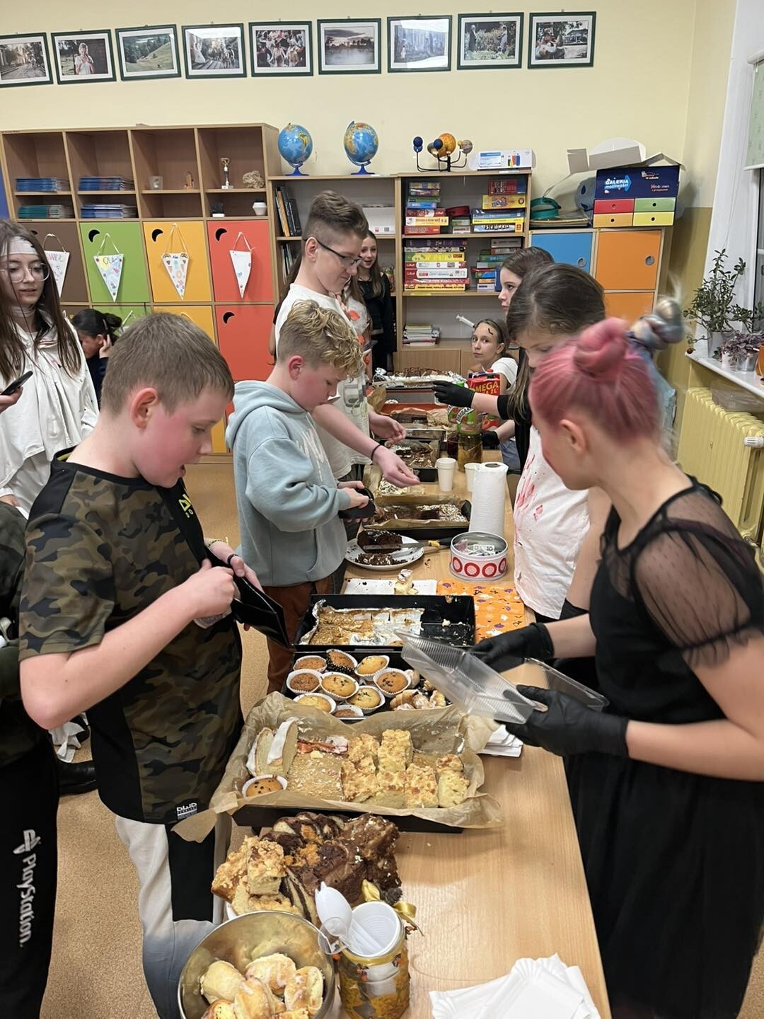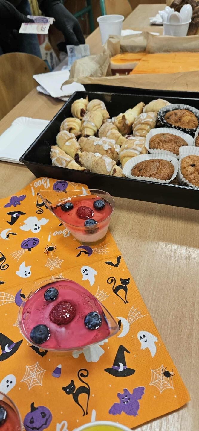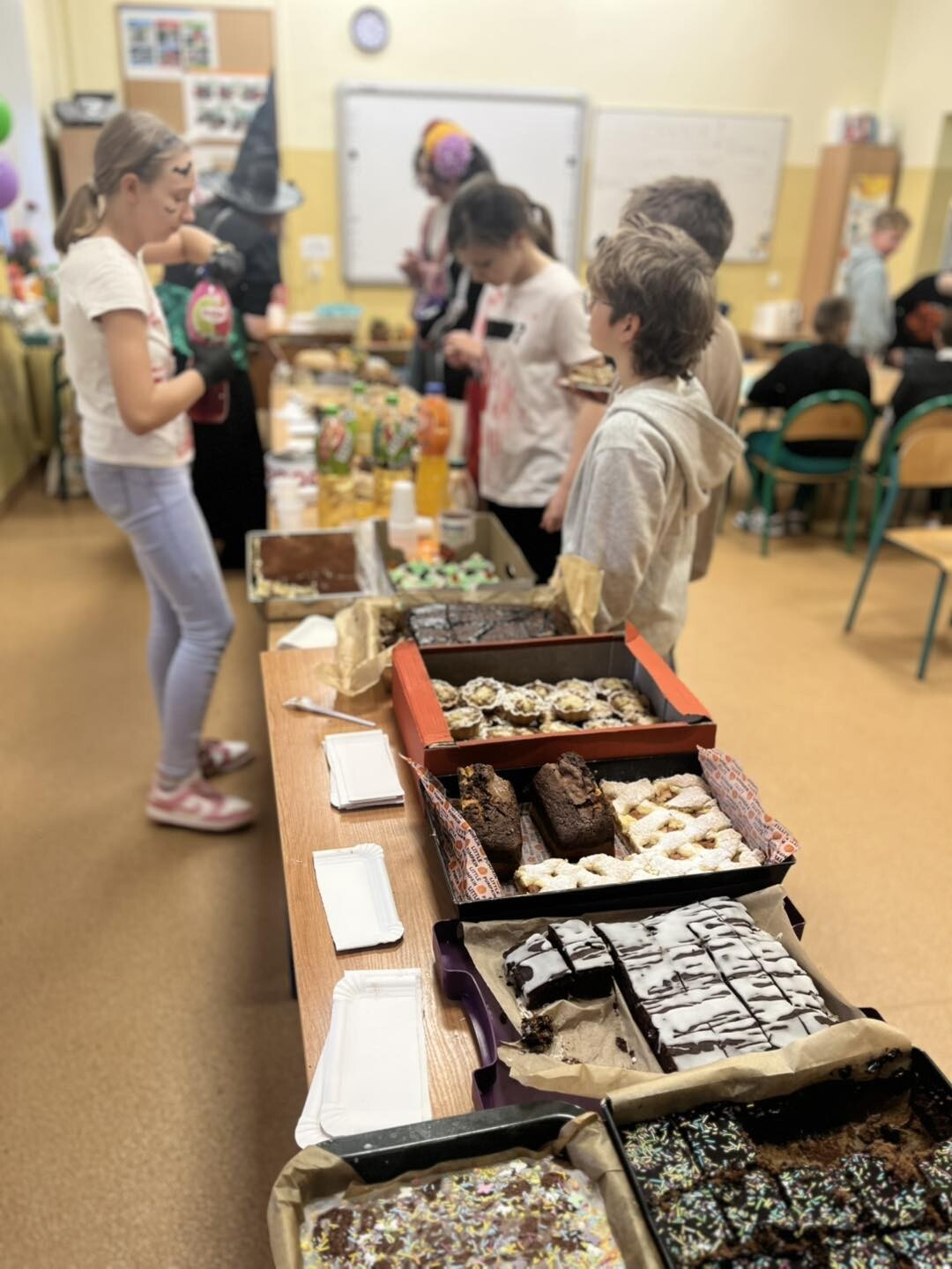 Podczas obu dyskotek z okazji Dnia Dyni i Halloween Samorząd Uczniowski zadbał nie tylko o świetną zabawę, ale też o coś pysznego! W szkolnej kawiarence można było zakupić domowe ciasta i słodkości, które przygotowali niezastąpieni rodzice naszych uczniów. Zapach świeżych wypieków unosił się w całej szkole, a każdy mógł znaleźć coś dla siebie – od klasycznych serników po dyniowe przysmaki. Serdecznie dziękujemy wszystkim rodzicom za zaangażowanie, czas i wspaniałe wypieki!