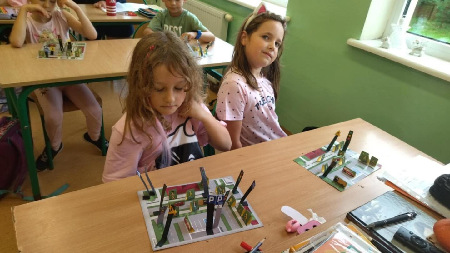 Klasa IIB na zajęciach edukacji społecznej i technicznej przypomniała sobie zasady ruchu drogowego. Zasady te utrwaliliśmy na zajęciach praktycznych w terenie. Lekcje praktyczne pozwoliły nam lepiej zapamiętać rodzaje znaków drogowych, zasady przechodzenia przez jezdnię, poruszania się po chodniku. Na edukacji technicznej wykonaliśmy makietę ruchu drogowego. Na zakończenie każdy z uczniów otrzymał dyplom Bezpiecznego Uczestnika Ruchu Drogowego.
