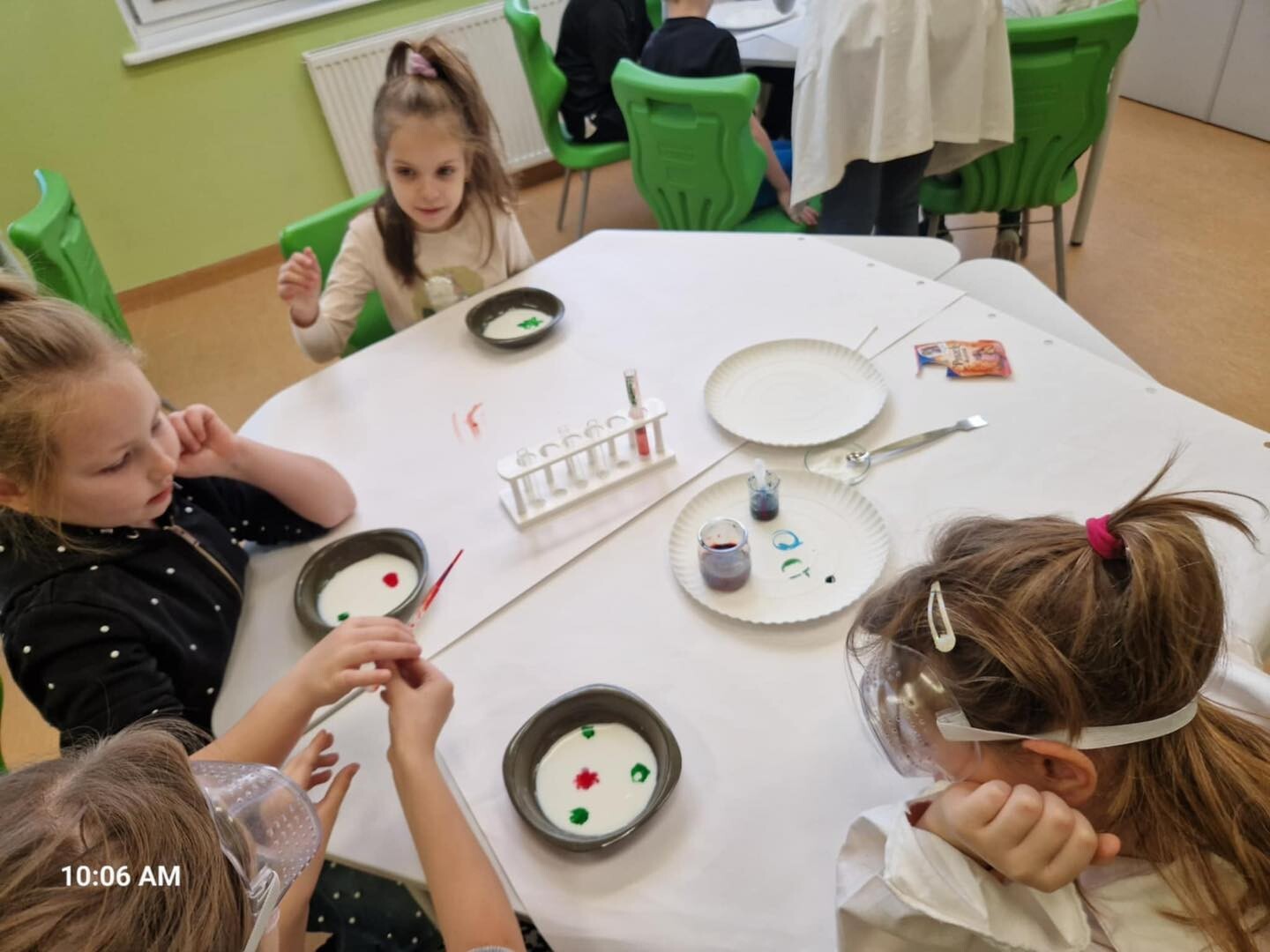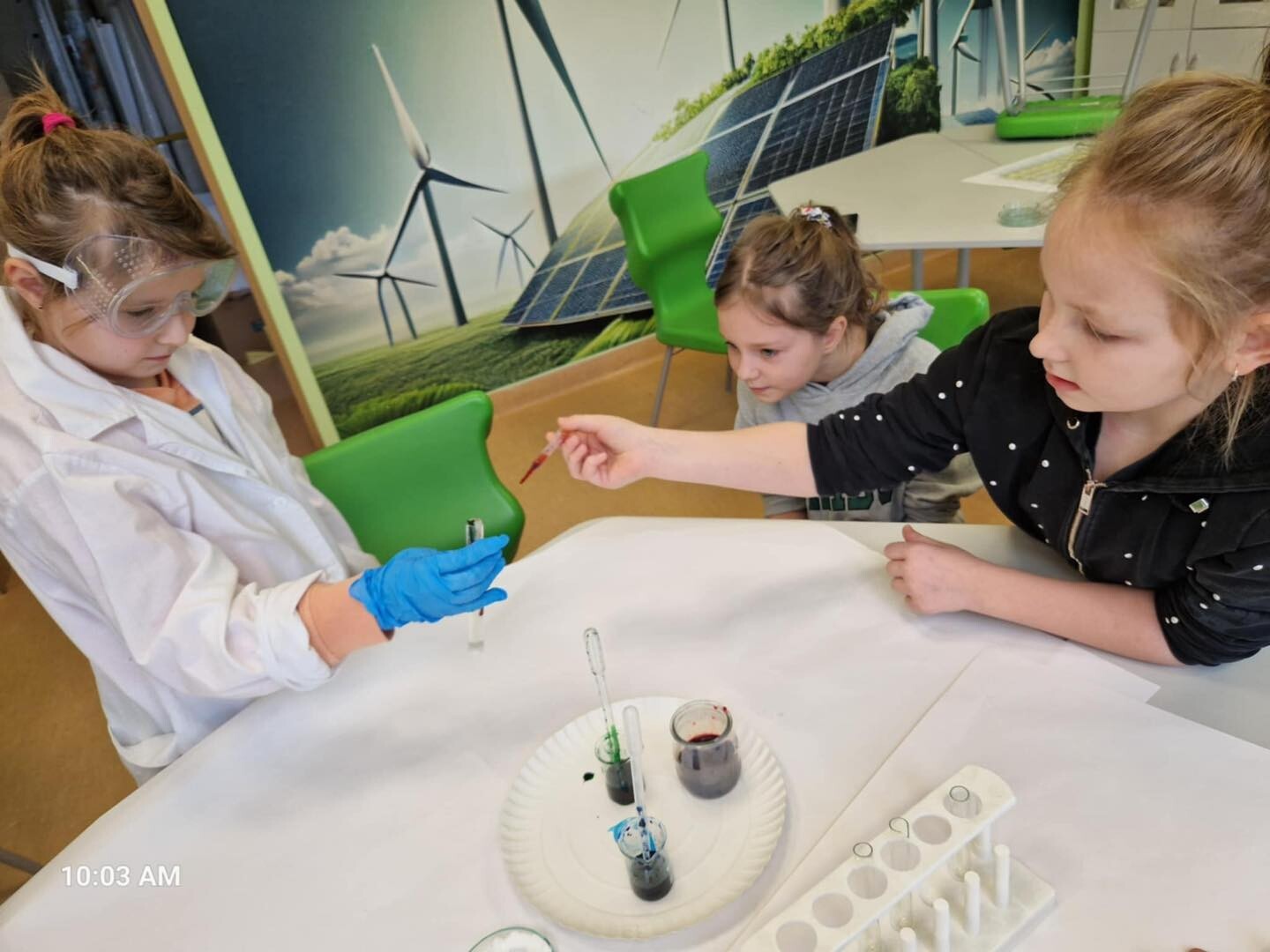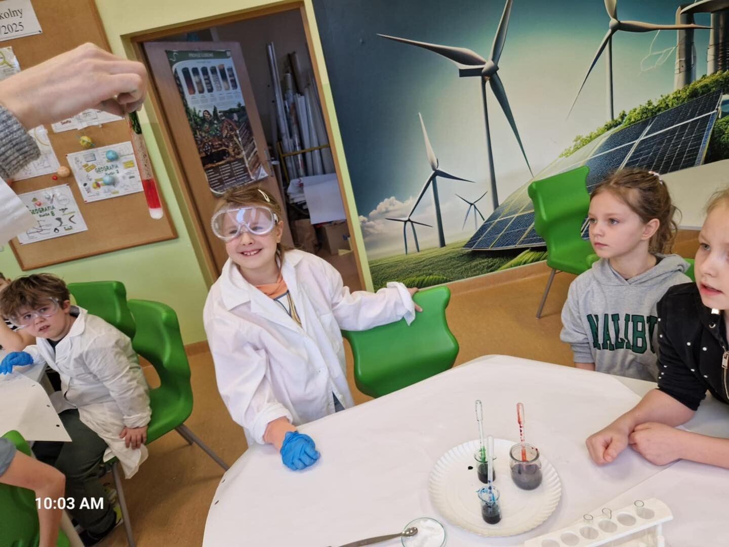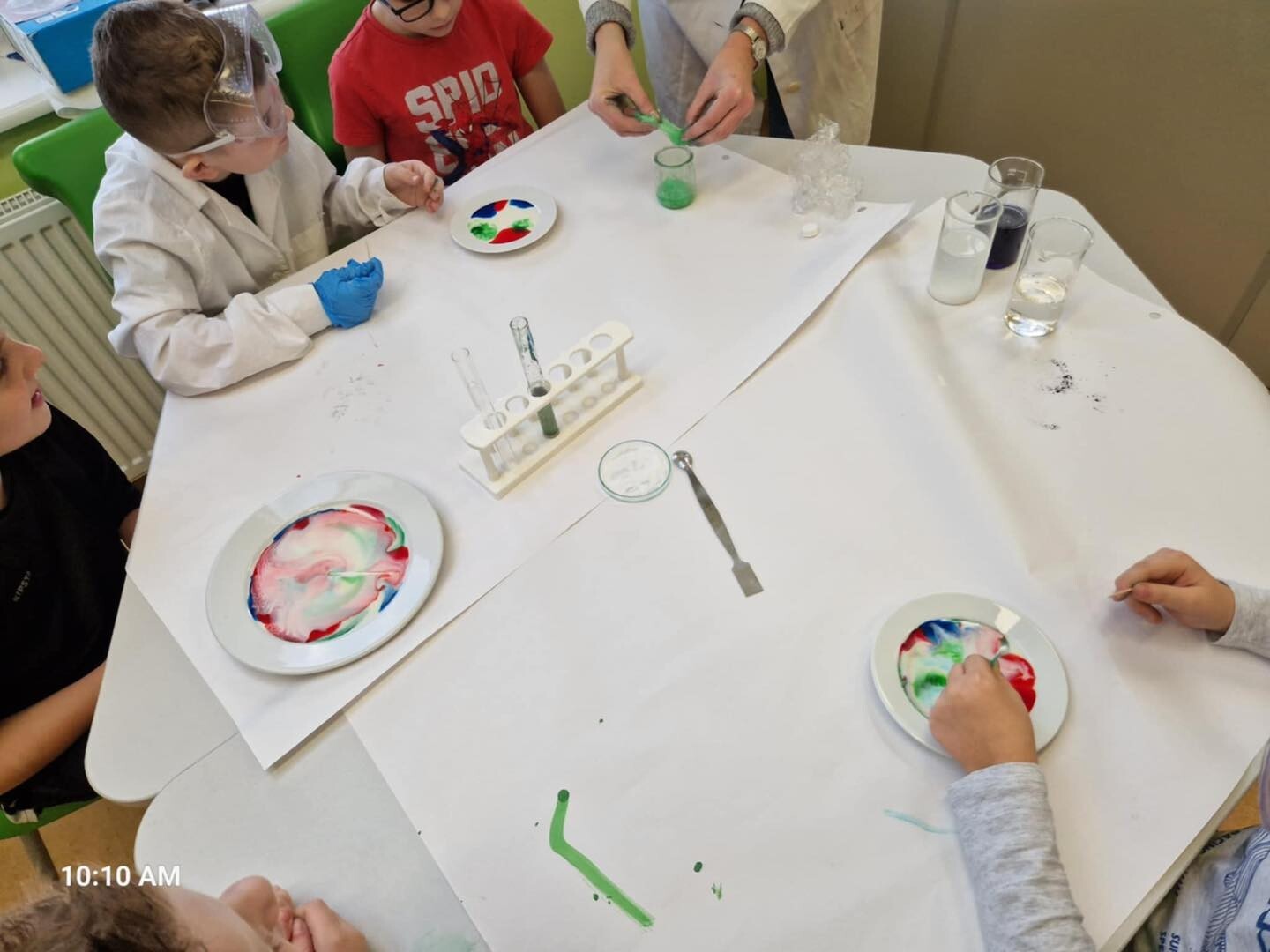 Uczniowie klasy IIB poważnie podeszli do tematu doświadczeń i zabawili się w małych chemików. Pani Mirka Krzyżanowska pomogła nam doświadczyć świetnej zabawy i zrozumieć niektóre chemiczne zasady. Odczytaliśmy na koniec list pisany tajemniczym atramentem. Zajęcia bardzo nam się podobały. Czekamy na więcej - mali chemicy z IIB.