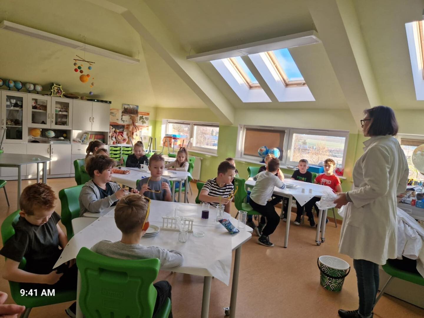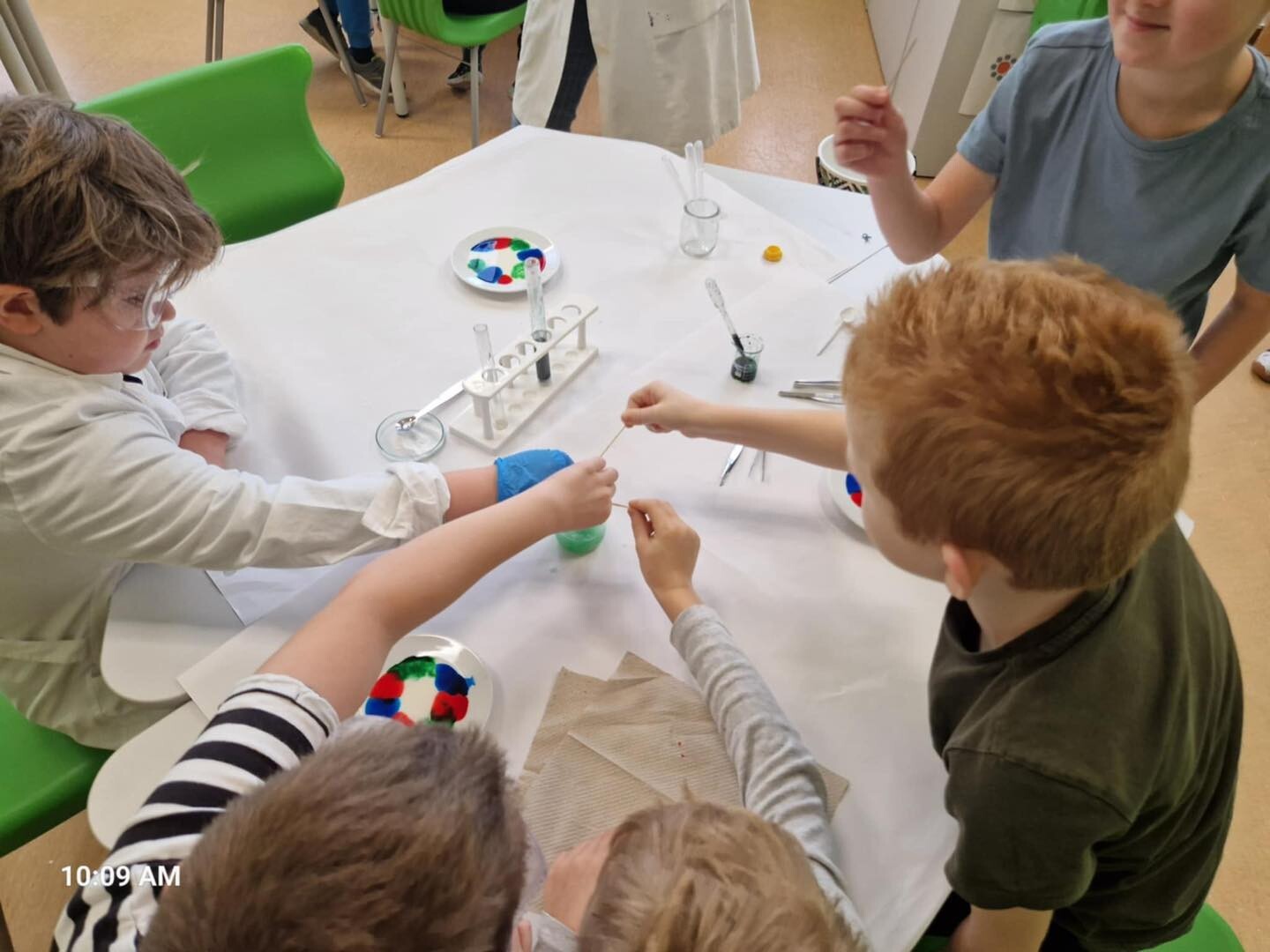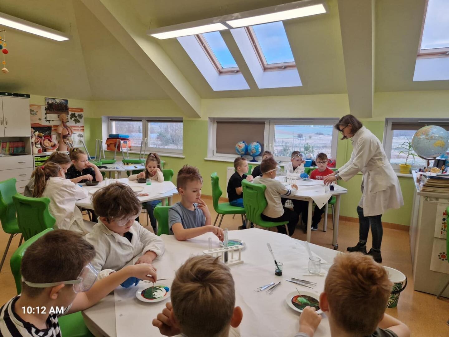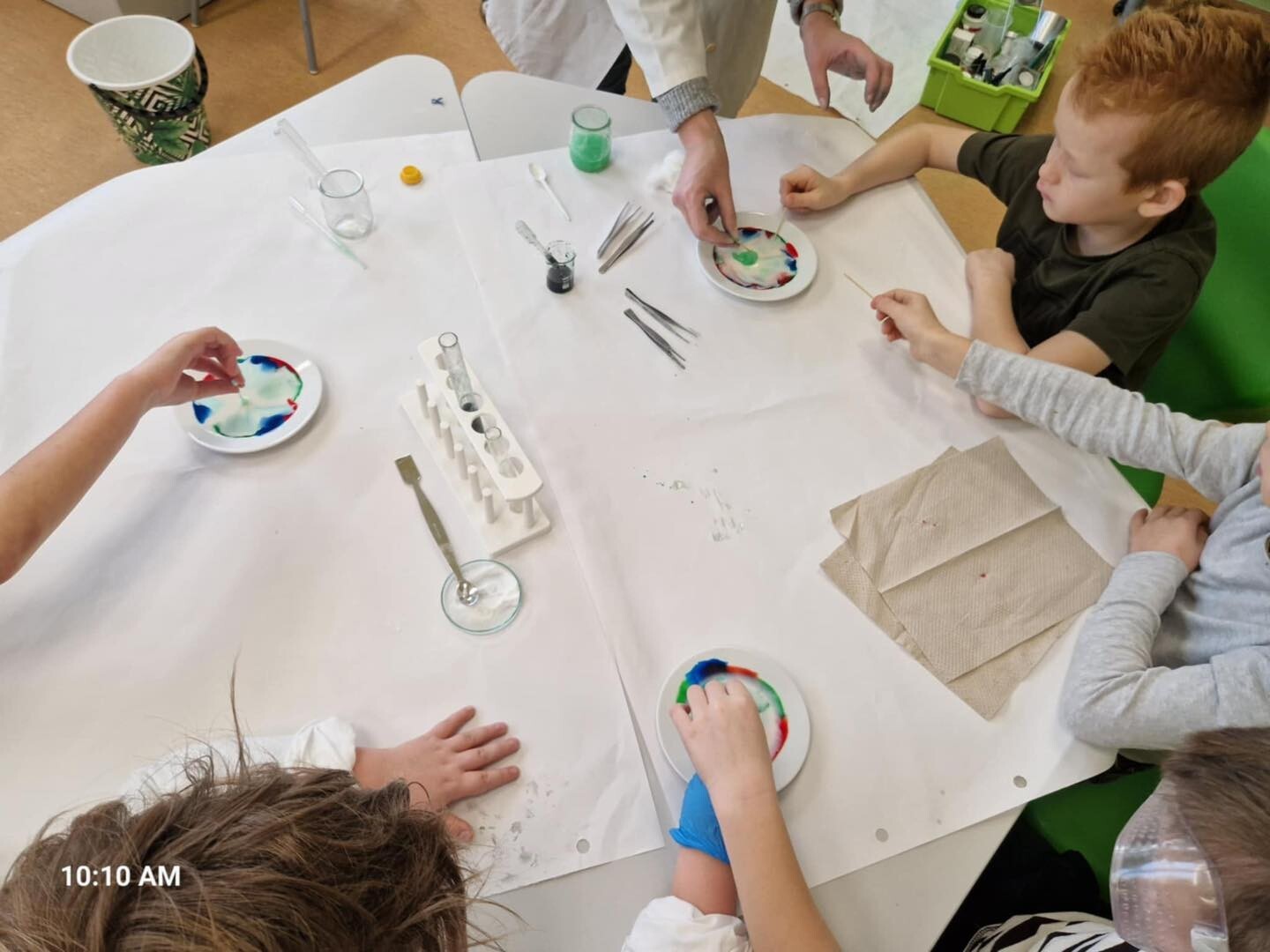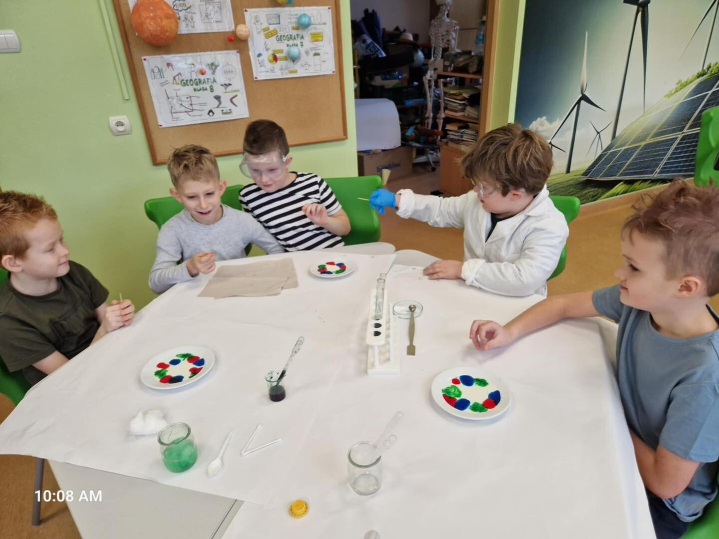 Uczniowie klasy IIB poważnie podeszli do tematu doświadczeń i zabawili się w małych chemików. Pani Mirka Krzyżanowska pomogła nam doświadczyć świetnej zabawy i zrozumieć niektóre chemiczne zasady. Odczytaliśmy na koniec list pisany tajemniczym atramentem. Zajęcia bardzo nam się podobały. Czekamy na więcej - mali chemicy z IIB.