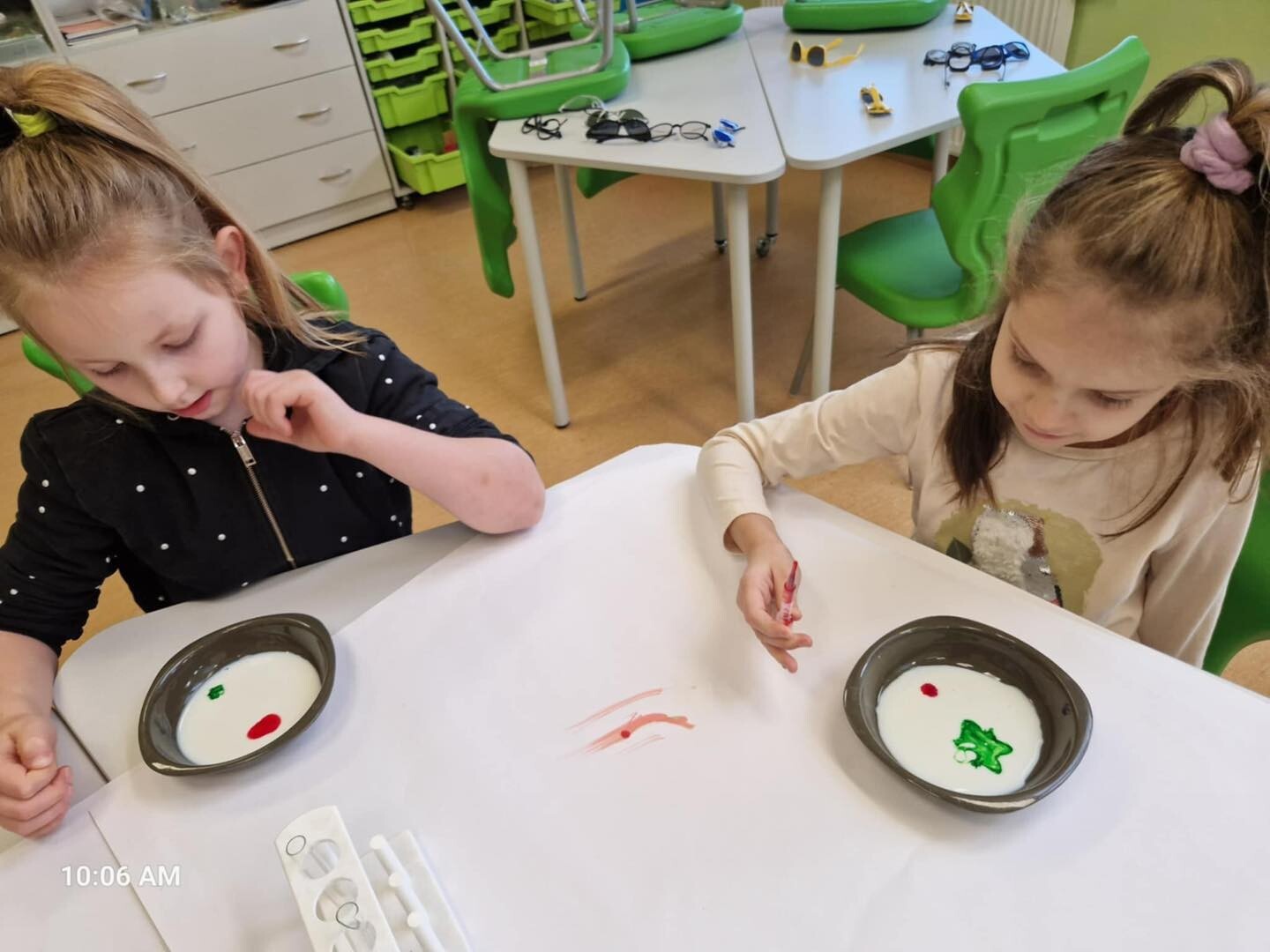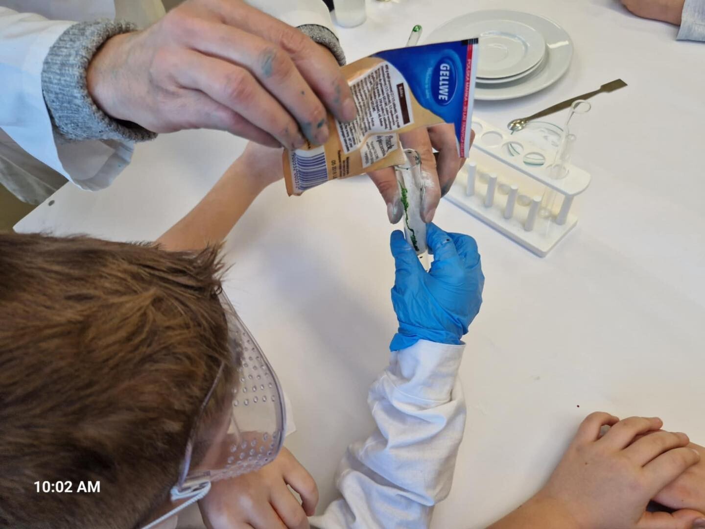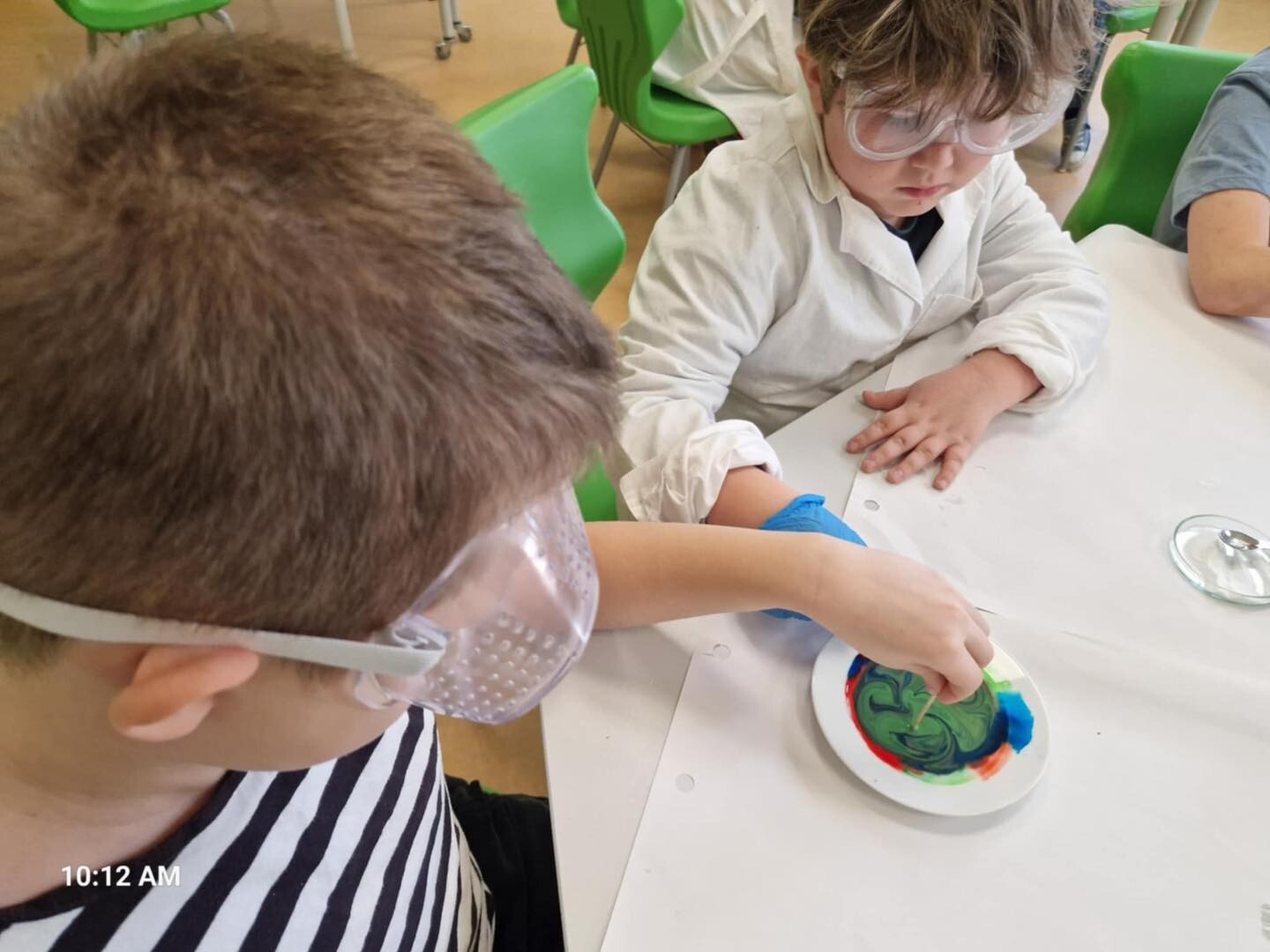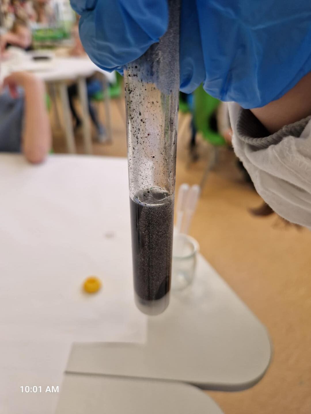 Uczniowie klasy IIB poważnie podeszli do tematu doświadczeń i zabawili się w małych chemików. Pani Mirka Krzyżanowska pomogła nam doświadczyć świetnej zabawy i zrozumieć niektóre chemiczne zasady. Odczytaliśmy na koniec list pisany tajemniczym atramentem. Zajęcia bardzo nam się podobały. Czekamy na więcej - mali chemicy z IIB.