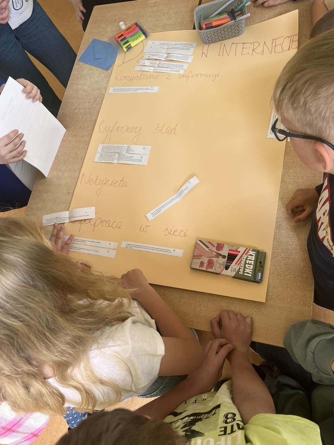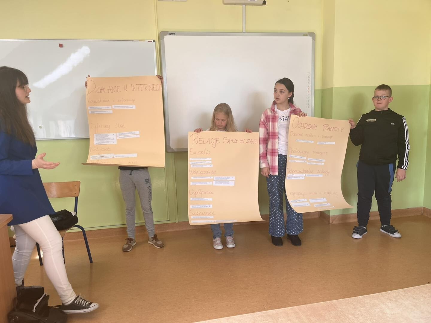 Uczniowie podczas pierwszych zajęć wybrali temat, którym zajmowali się na drugich zajęciach. Temat dotyczył działań w Internecie. W efekcie, na drugich zajęciach stworzyli Netykietę - zbiór zasad dobrego zachowania w Internecie.