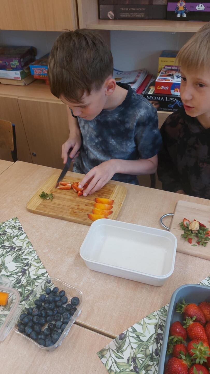 Wiadomo przecież, że warzywa i owoce są ważnym składnikiem codziennej diety. To doskonałe źródło witamin i minerałów, które są niezbędne dla prawidłowego rozwoju i zdrowia dzieci. Zawierają m.in. witaminę C, która wspiera odporność, witaminę A dla zdrowego wzroku i skóry, oraz witaminy z grupy B, które są ważne dla układu nerwowego. Smacznego!