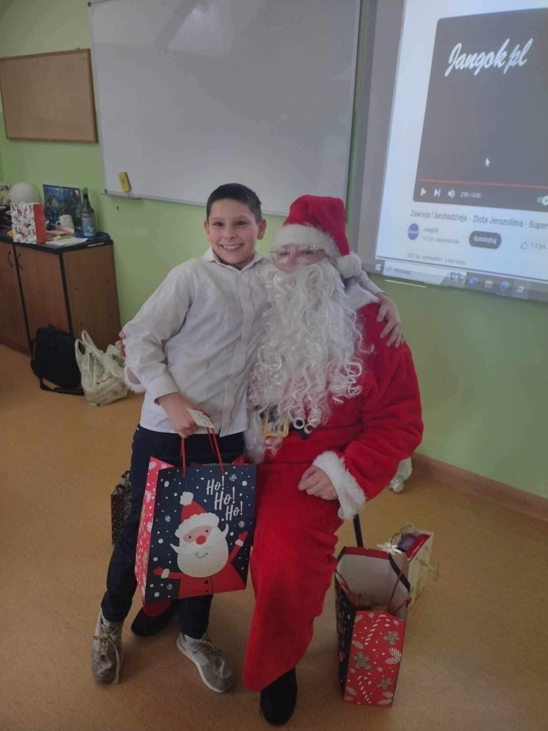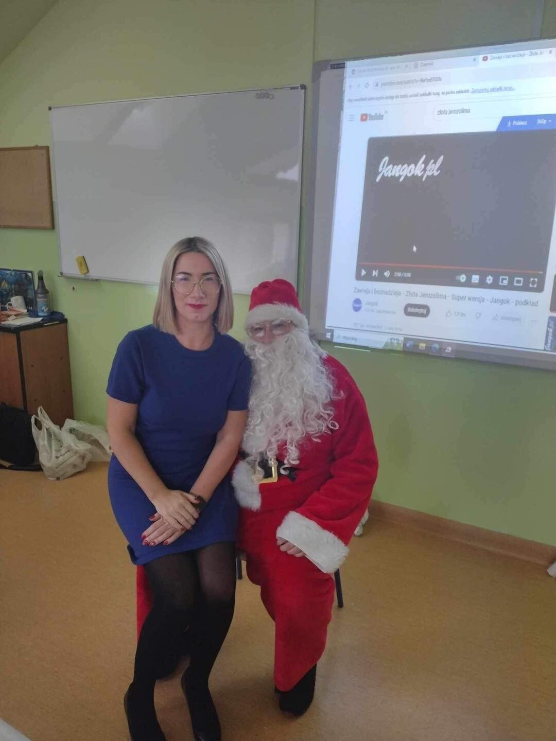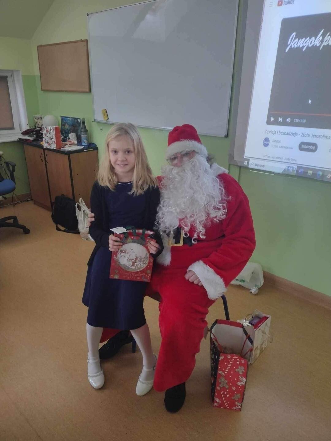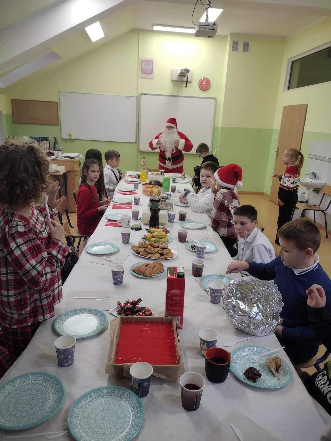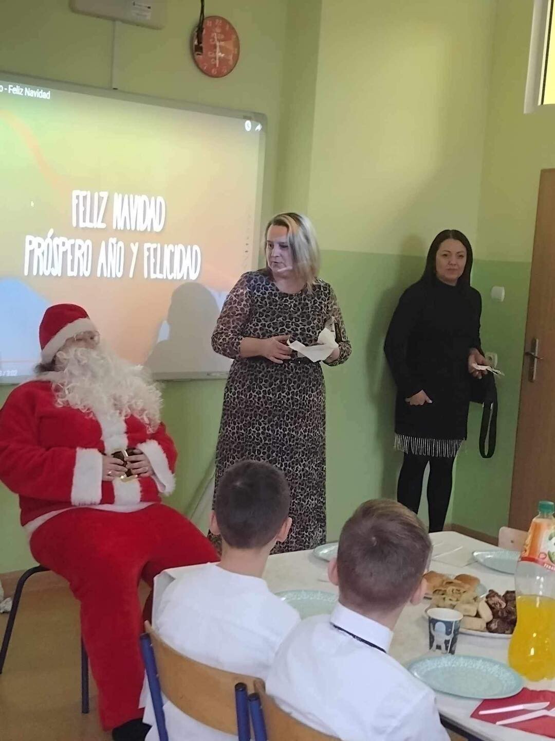 W przeddzień wolnego klasę IVB odwiedził gość specjalny, św. Mikołaj we własnej osobie. Ale nie była to taka zwyczajna wizyta. Św. Mikołaj odpytał dzieci z „Akademii Pana Kleksa”, sprawdził, kto był grzeczny a kto nie, wysłuchał świątecznej piosenki „Złota Jerozolima” w wykonaniu uczniów i dopiero wtedy wręczył każdemu prezent. Nasza klasowa wigilia, dzięki tej wizycie, smakołykom na stole, prezentom i przede wszystkim dobrej atmosferze, była naprawdę w świątecznym klimacie.