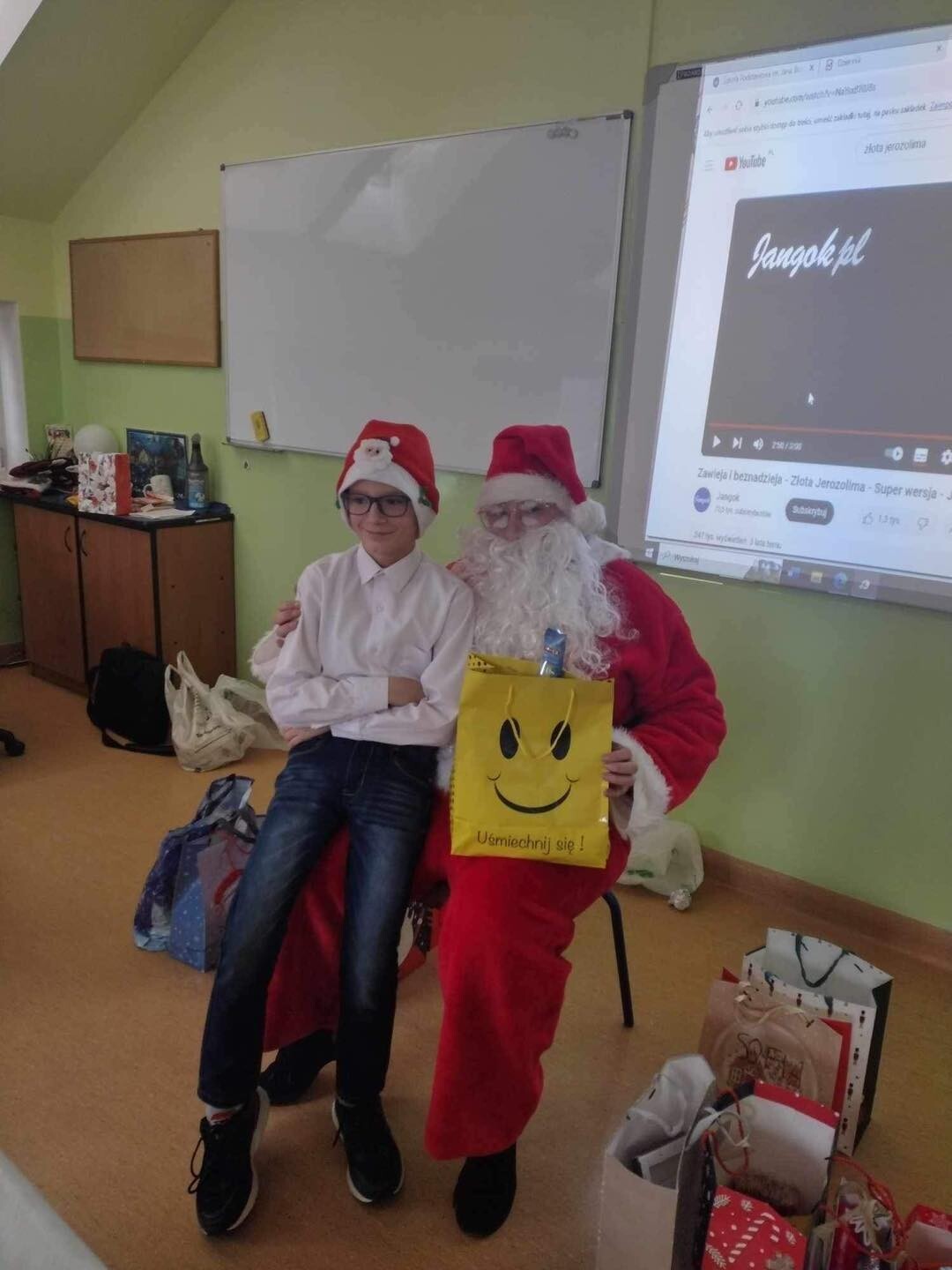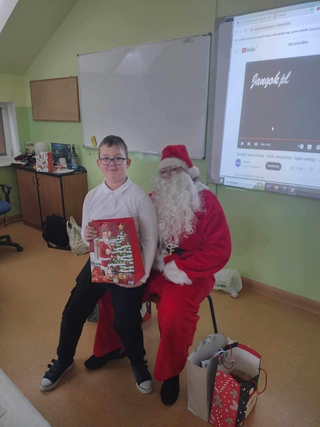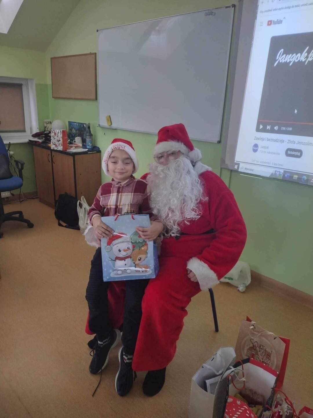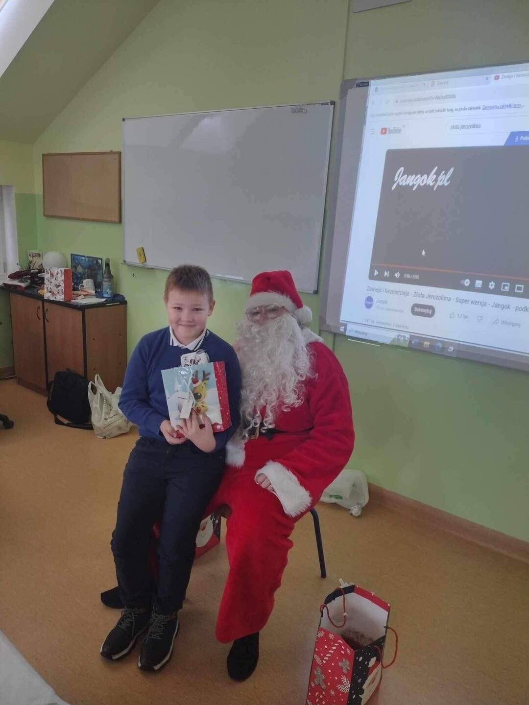 W przeddzień wolnego klasę IVB odwiedził gość specjalny, św. Mikołaj we własnej osobie. Ale nie była to taka zwyczajna wizyta. Św. Mikołaj odpytał dzieci z „Akademii Pana Kleksa”, sprawdził, kto był grzeczny a kto nie, wysłuchał świątecznej piosenki „Złota Jerozolima” w wykonaniu uczniów i dopiero wtedy wręczył każdemu prezent. Nasza klasowa wigilia, dzięki tej wizycie, smakołykom na stole, prezentom i przede wszystkim dobrej atmosferze, była naprawdę w świątecznym klimacie.