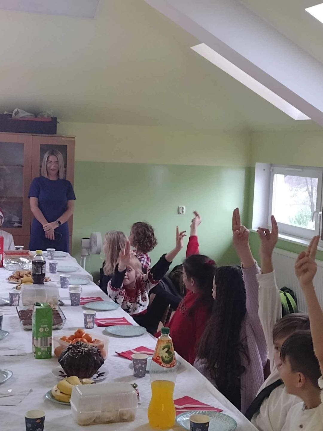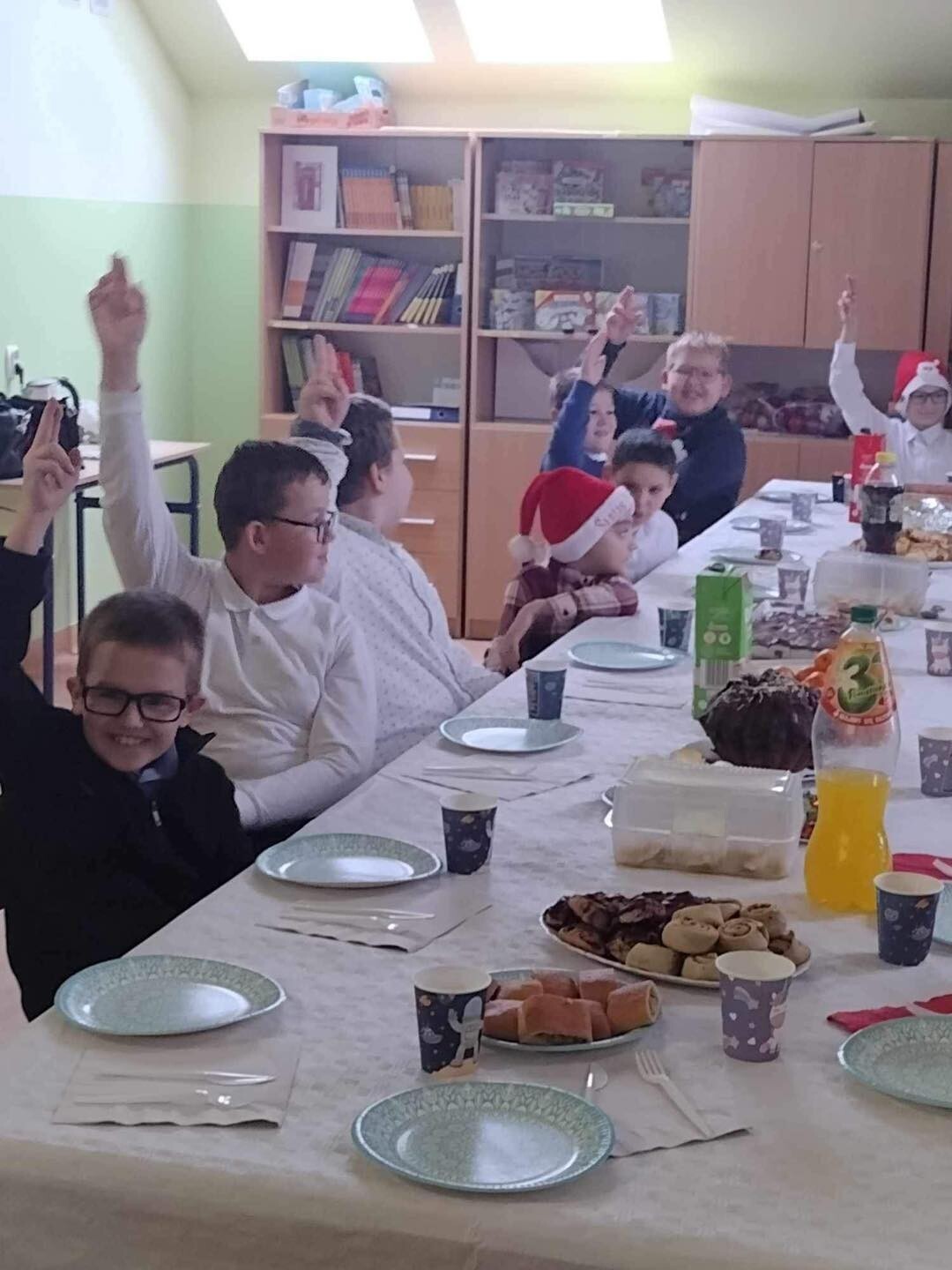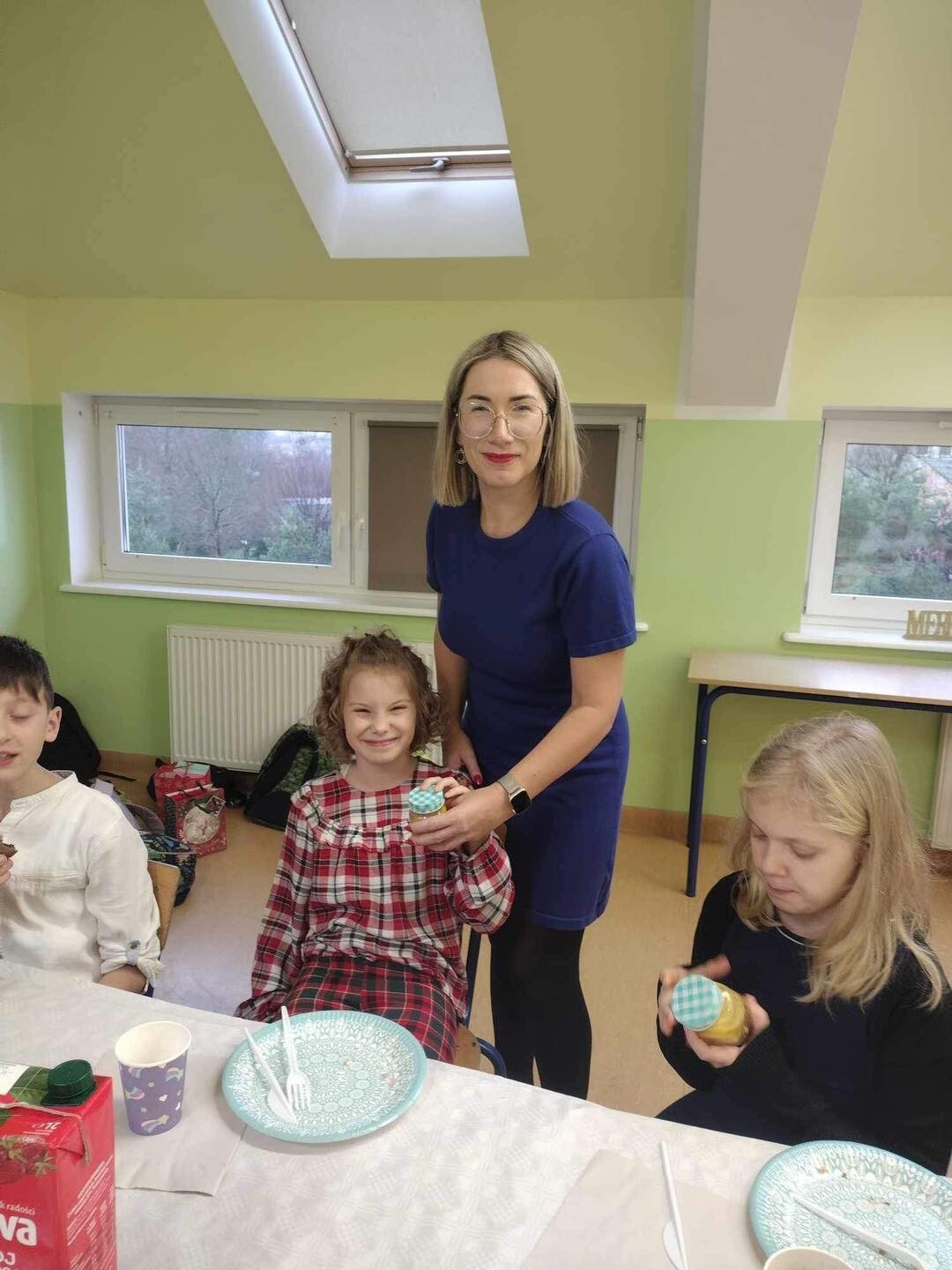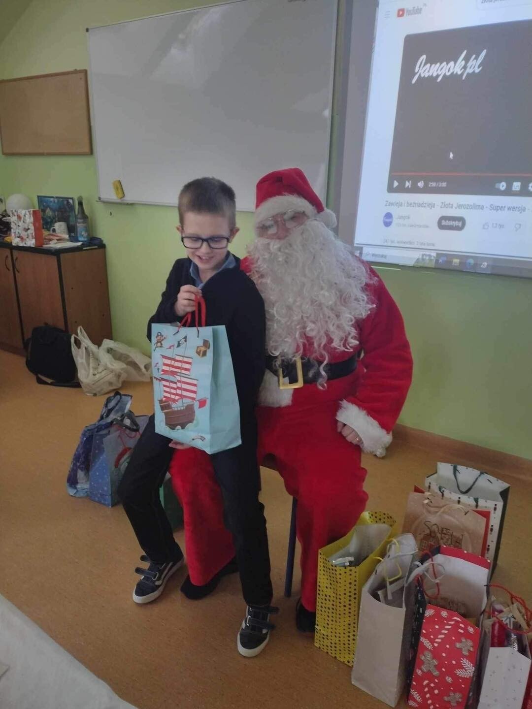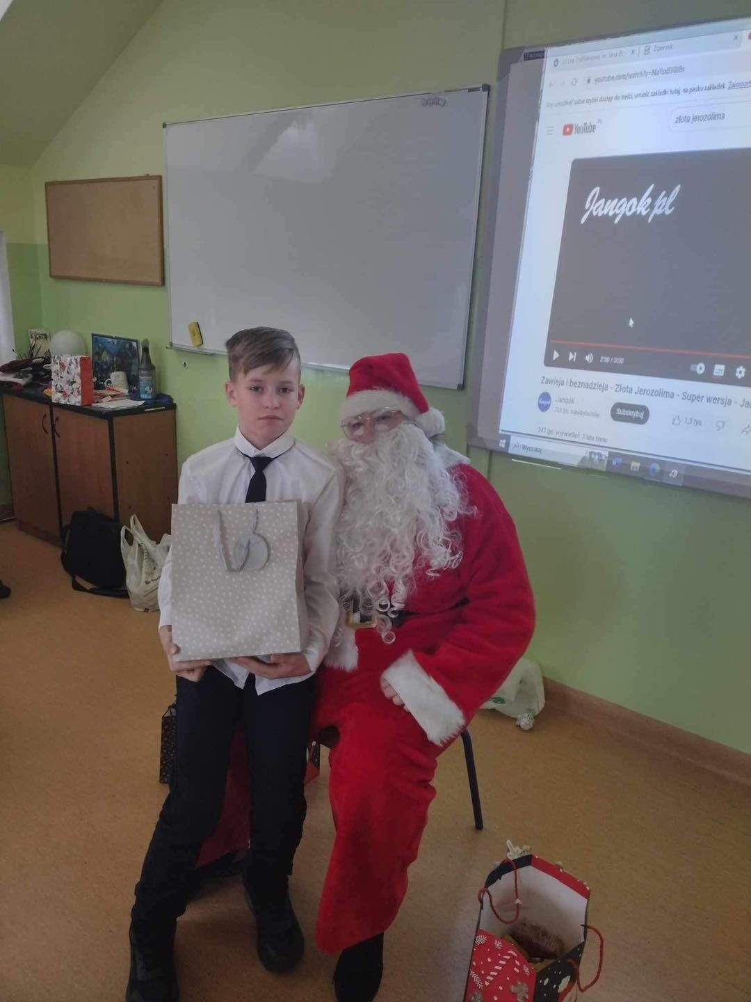 W przeddzień wolnego klasę IVB odwiedził gość specjalny, św. Mikołaj we własnej osobie. Ale nie była to taka zwyczajna wizyta. Św. Mikołaj odpytał dzieci z „Akademii Pana Kleksa”, sprawdził, kto był grzeczny a kto nie, wysłuchał świątecznej piosenki „Złota Jerozolima” w wykonaniu uczniów i dopiero wtedy wręczył każdemu prezent. Nasza klasowa wigilia, dzięki tej wizycie, smakołykom na stole, prezentom i przede wszystkim dobrej atmosferze, była naprawdę w świątecznym klimacie.