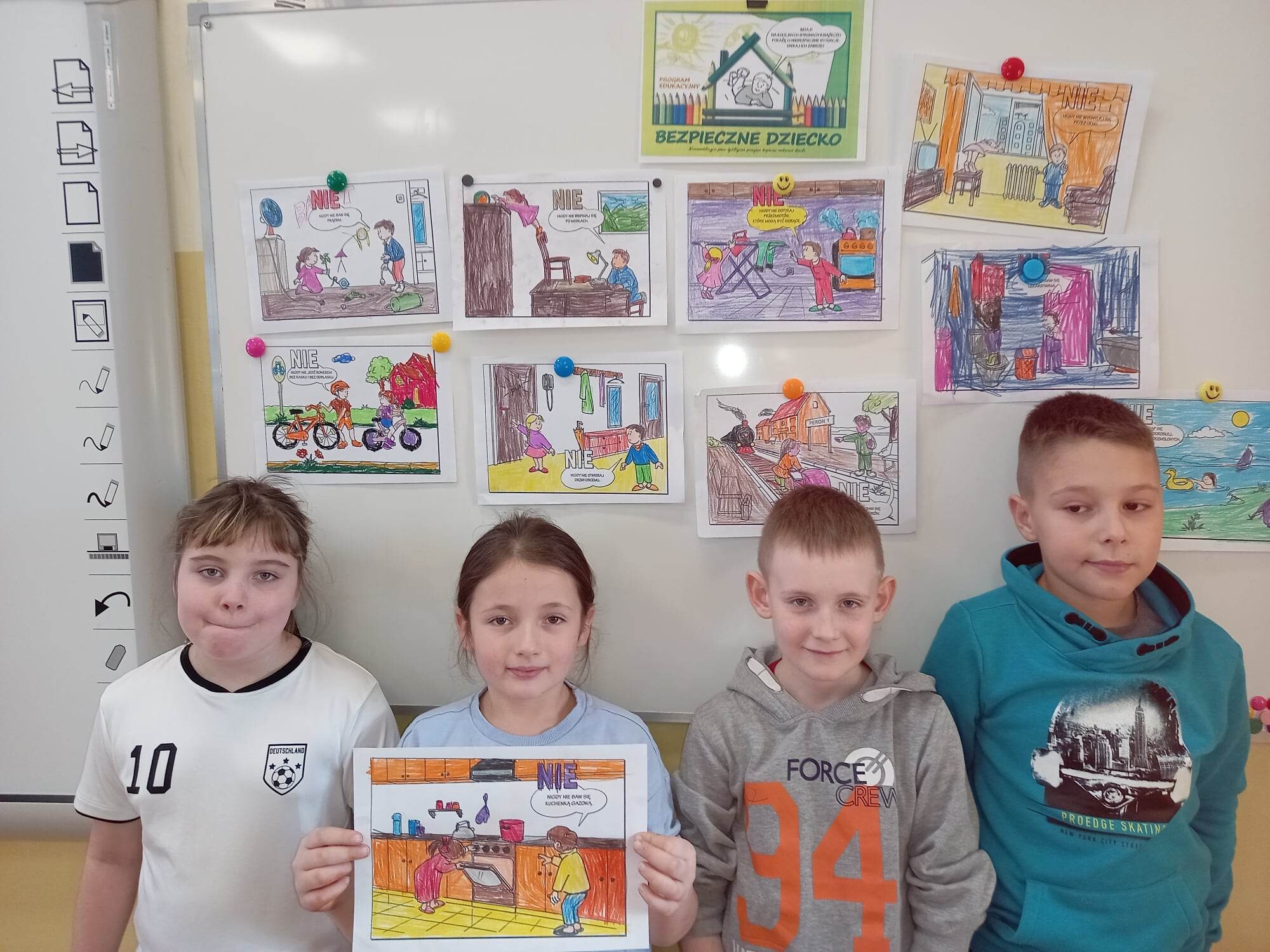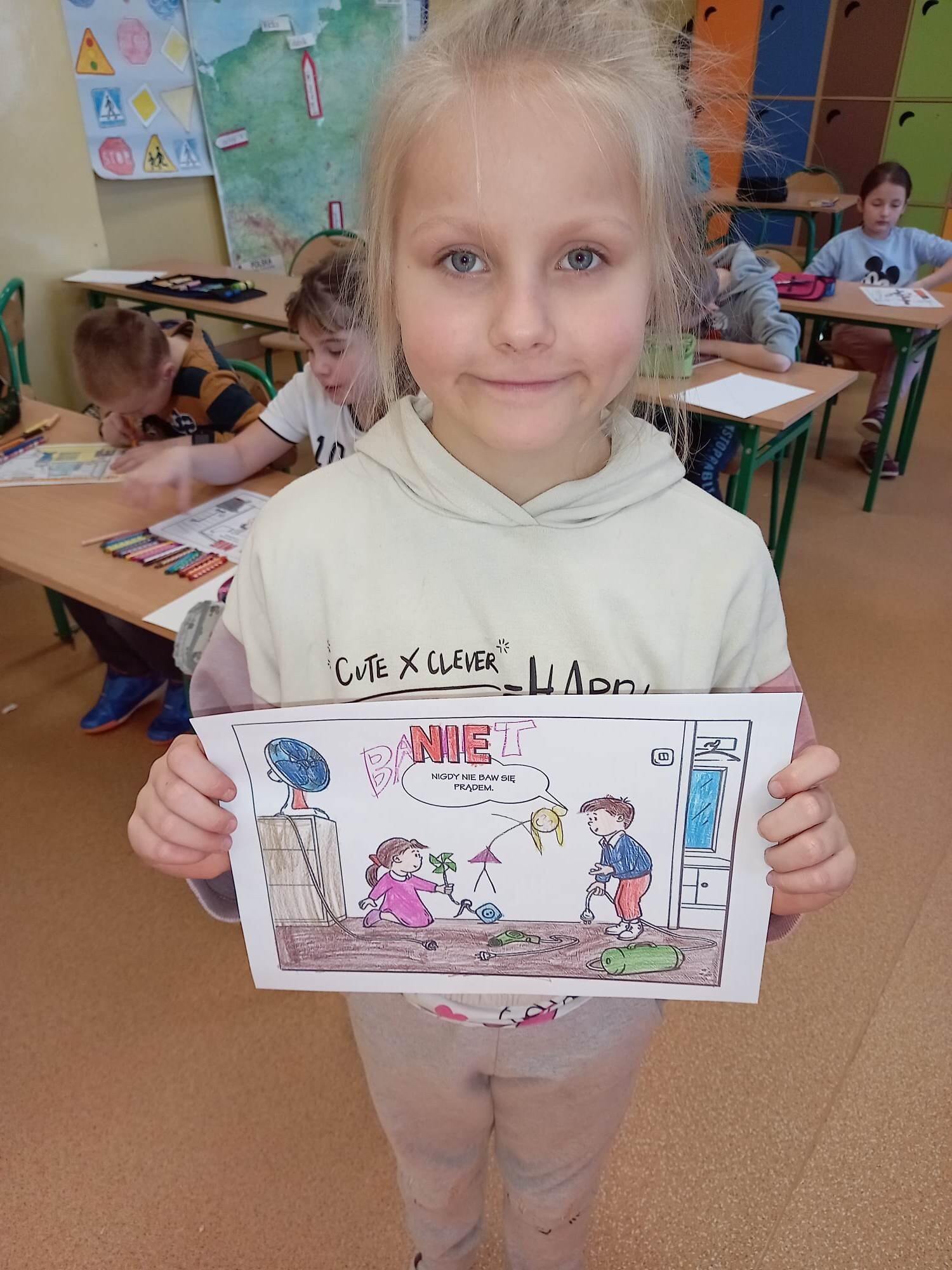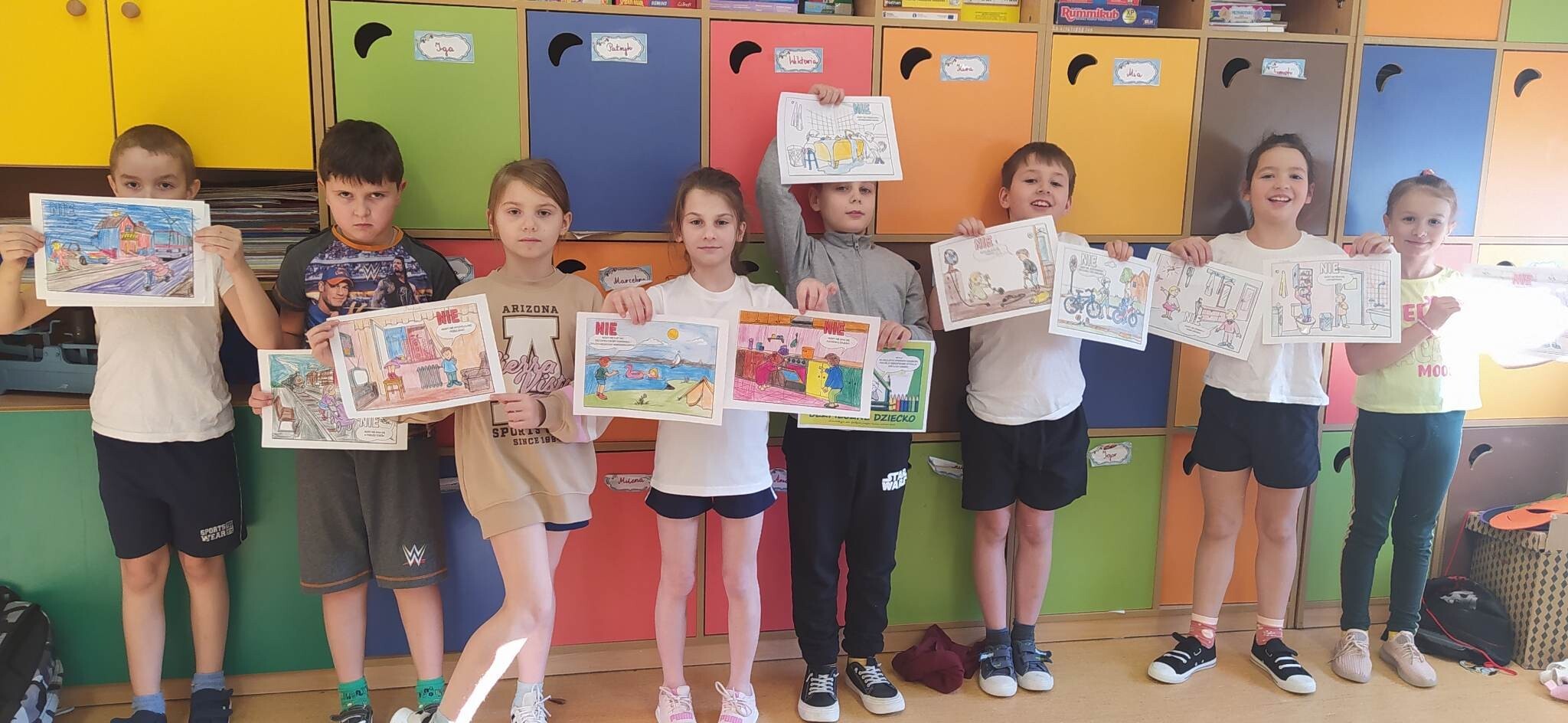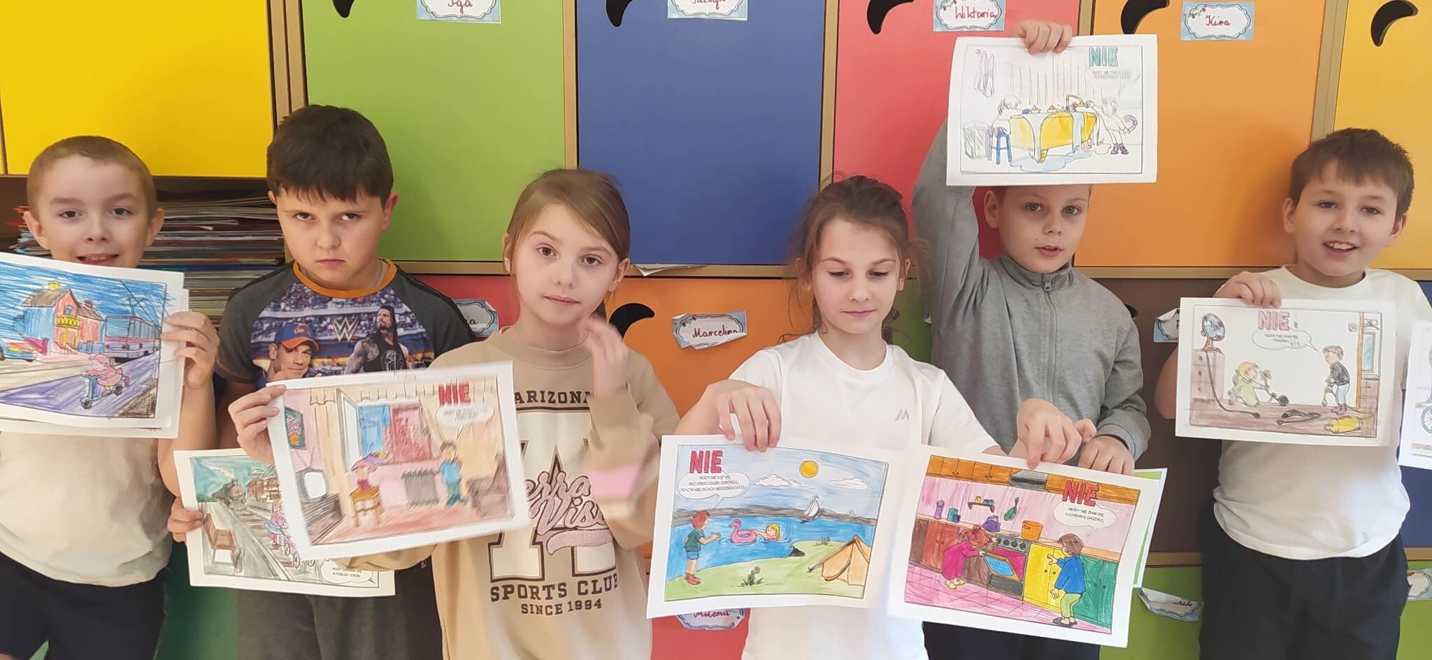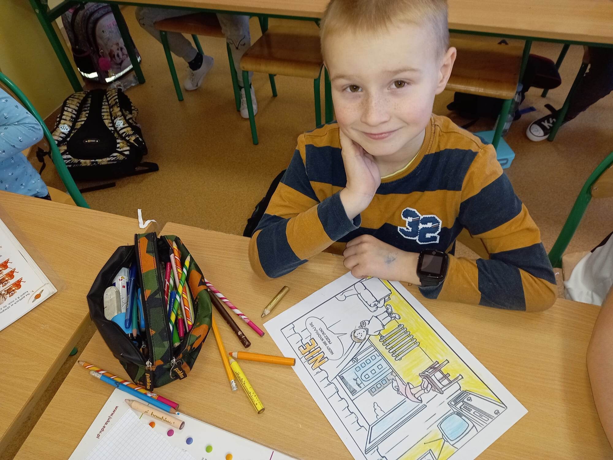 Klasy I-III wzięły udział w projekcje " Bezpieczne dziecko". W związku ze zbliżającą się przerwą świąteczną oraz feriami, dzieci przypomniały sobie zasady bezpiecznego zachowania w domu i poza nim. Oprócz omówienia, dzieci dla lepszego utrwalenia, mogły pokolorować kodeks bezpiecznego dziecka, czego efekty można zobaczyć na fotografiach.