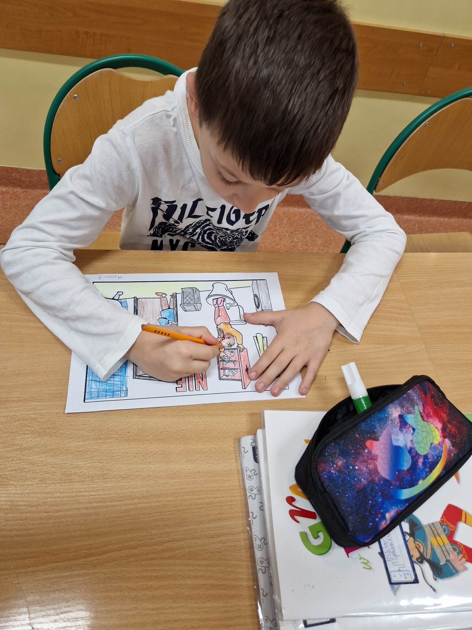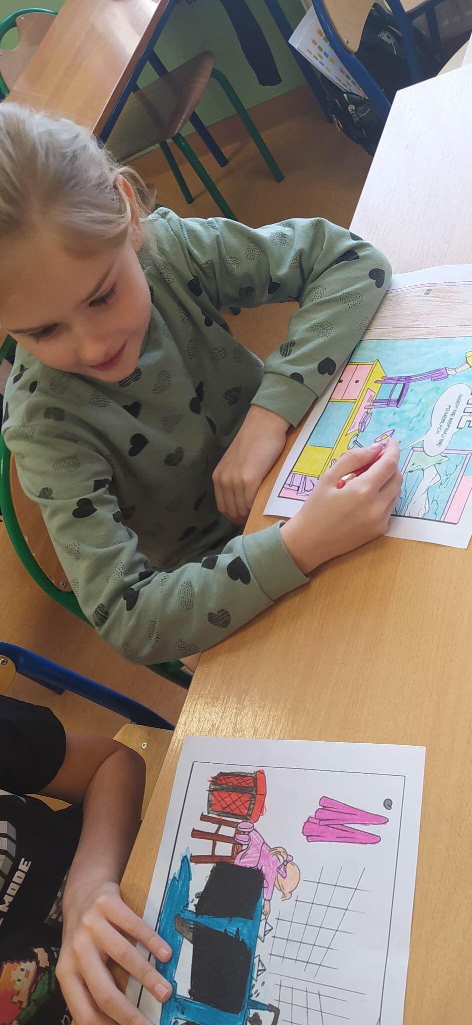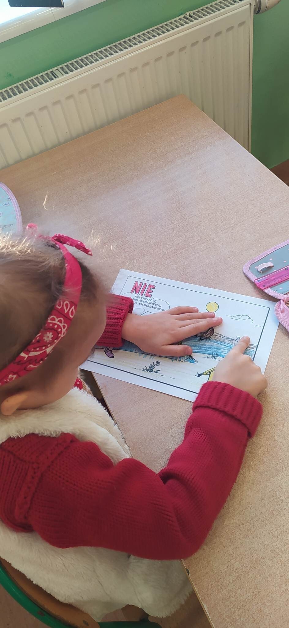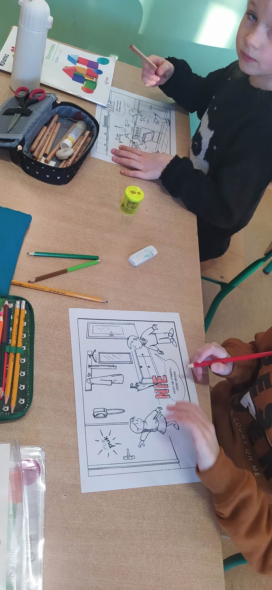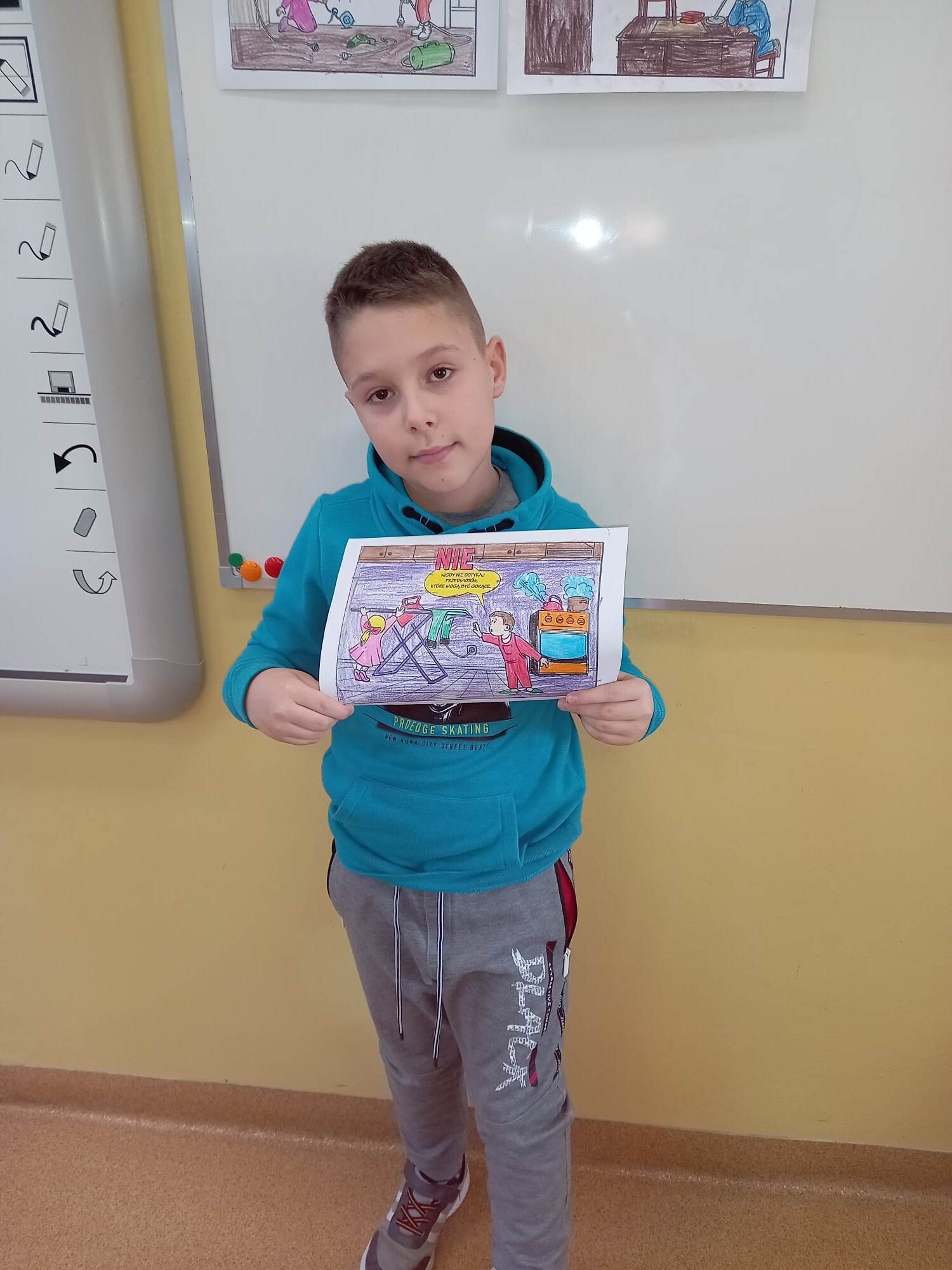 Klasy I-III wzięły udział w projekcje " Bezpieczne dziecko". W związku ze zbliżającą się przerwą świąteczną oraz feriami, dzieci przypomniały sobie zasady bezpiecznego zachowania w domu i poza nim. Oprócz omówienia, dzieci dla lepszego utrwalenia, mogły pokolorować kodeks bezpiecznego dziecka, czego efekty można zobaczyć na fotografiach.