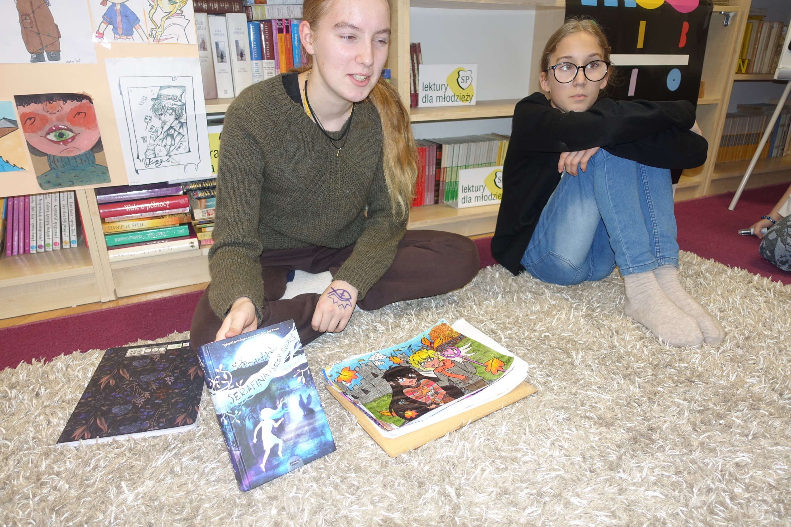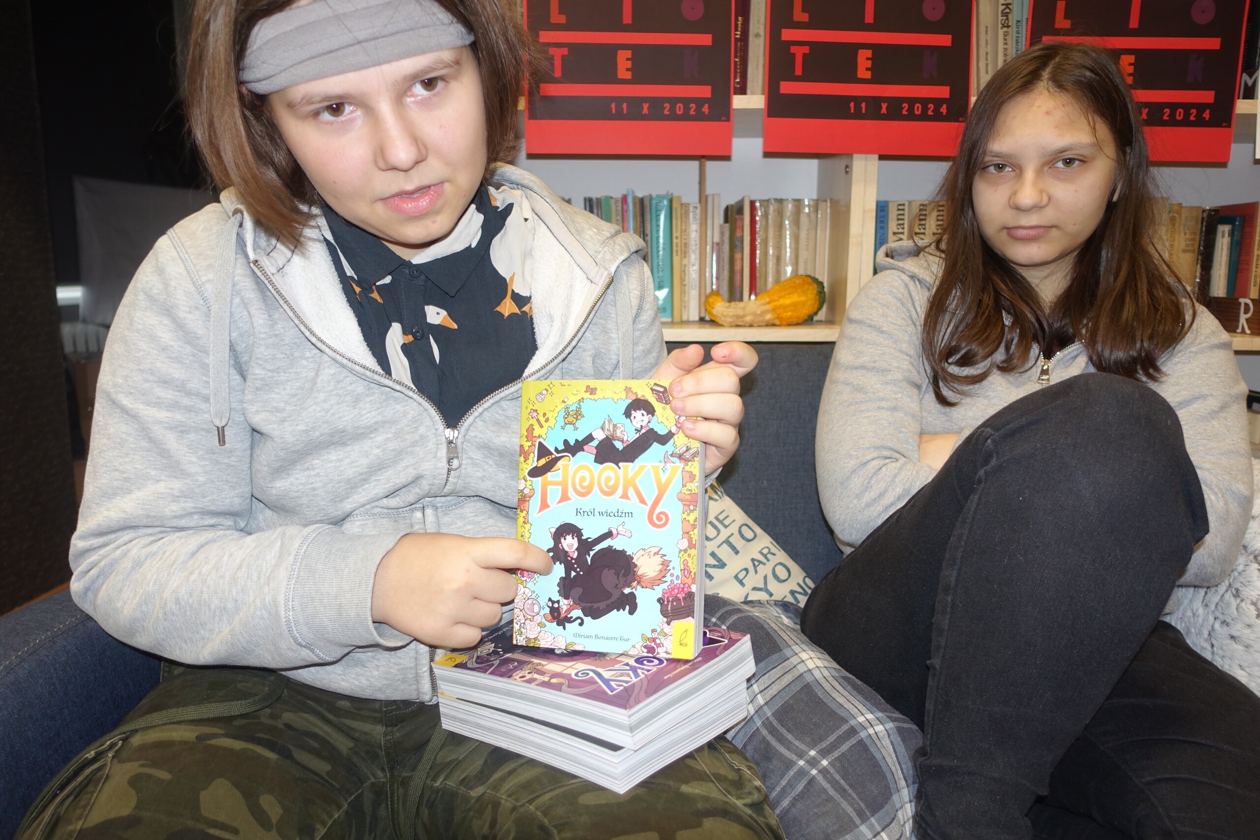 W poniedziałek, 28.10.2024, po południu omówiliśmy nowości wydawnicze, ale również podsumowaliśmy czytelnicze zakupy dokonane w ramach dotacji z Narodowego Programu Rozwoju Czytelnictwa, długo, z niecierpliwością oczekiwane przez czytelników Biblioteki Szkolnej w Wicku. Nie zabrakło również miejsca dla dokonań plastycznych naszych utalentowanych członkiń, Amelii i Liliany, a także Oli, której prace niedługo pokazane zostaną we Wrocławiu. Tego popołudnia ciepło i serdecznie gościliśmy wśród naszego Klubu nie tylko naszych uczniów, ale także absolwentów SP Wicko - Fabiana i Aleksandrę. Pod koniec spotkania siostry - Liliana i Amelka - podzieliły się swoimi planami na napisanie kolejnych powieści i opowiadań. Odwieczny problem pisarski - jak zacząć tekst??? - nadal pozostaje nierozstrzygnięty, ale miejmy nadzieję, że to tylko kwestia czasu:) Do zobaczenia w listopadzie na następnym spotkaniu DKK!