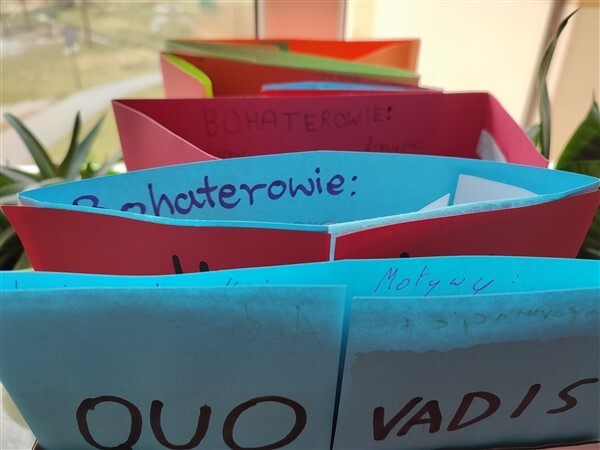 Ta nietypowa książka pozwala znakomicie usystematyzować wiedzę, dlatego sięgnęłam po tę właśnie pomoc, utrwalając z uczniami wiadomości o lekturze „Quo vadis”. Ósmoklasiści, wykonujący lapbooki, korzystali nie tylko z encyklopedii, leksykonów, słowników kompendiów wiedzy o literaturze, ale też z przygotowanych przeze mnie QR kodów, co stanowiło dodatkową atrakcję.