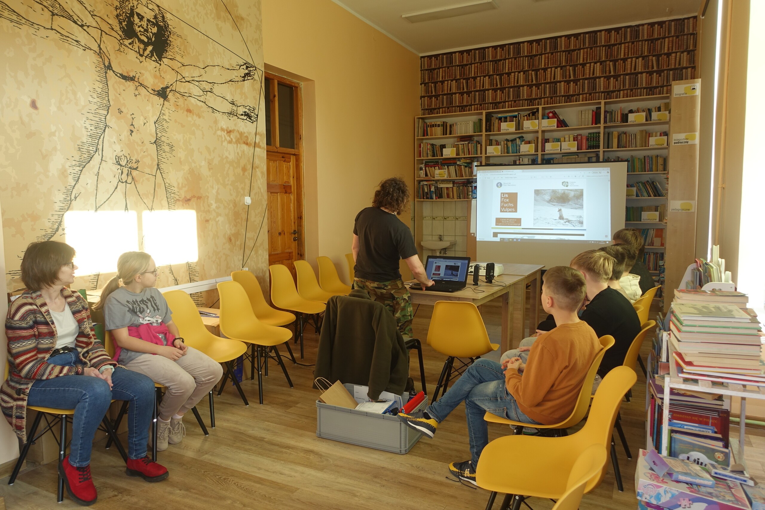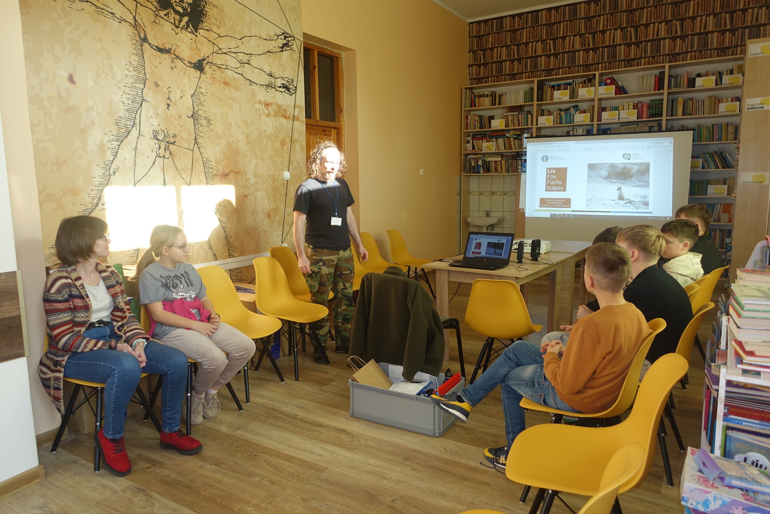 Pan Łukasz Fuglewicz wraz z Panią Małgorzatą Koślą-Miniach - przyrodnicy ze Słowińskiego Parku Narodowego tuż przed feriami zgodzili się przygotować dla uczniów kl. VIA prelekcję o lisach, żyjących na terenie SPN. Pretekstem do wykładu przyrodniczego dla szóstoklasistów w Bibliotece Szkolnej w Wicku była omawiana teraz przez kl. VIA lektura nadobowiązkowa na zajęciach języka polskiego, w której jednym z głównych bohaterów jest lis Pax. Spotkanie z pracownikami SPN jest częścią interdyscyplinarnego projektu edukacyjnego opartego na lekturze "Paxa", książki autorstwa amerykańskiej pisarki Sary Pennypacker.
