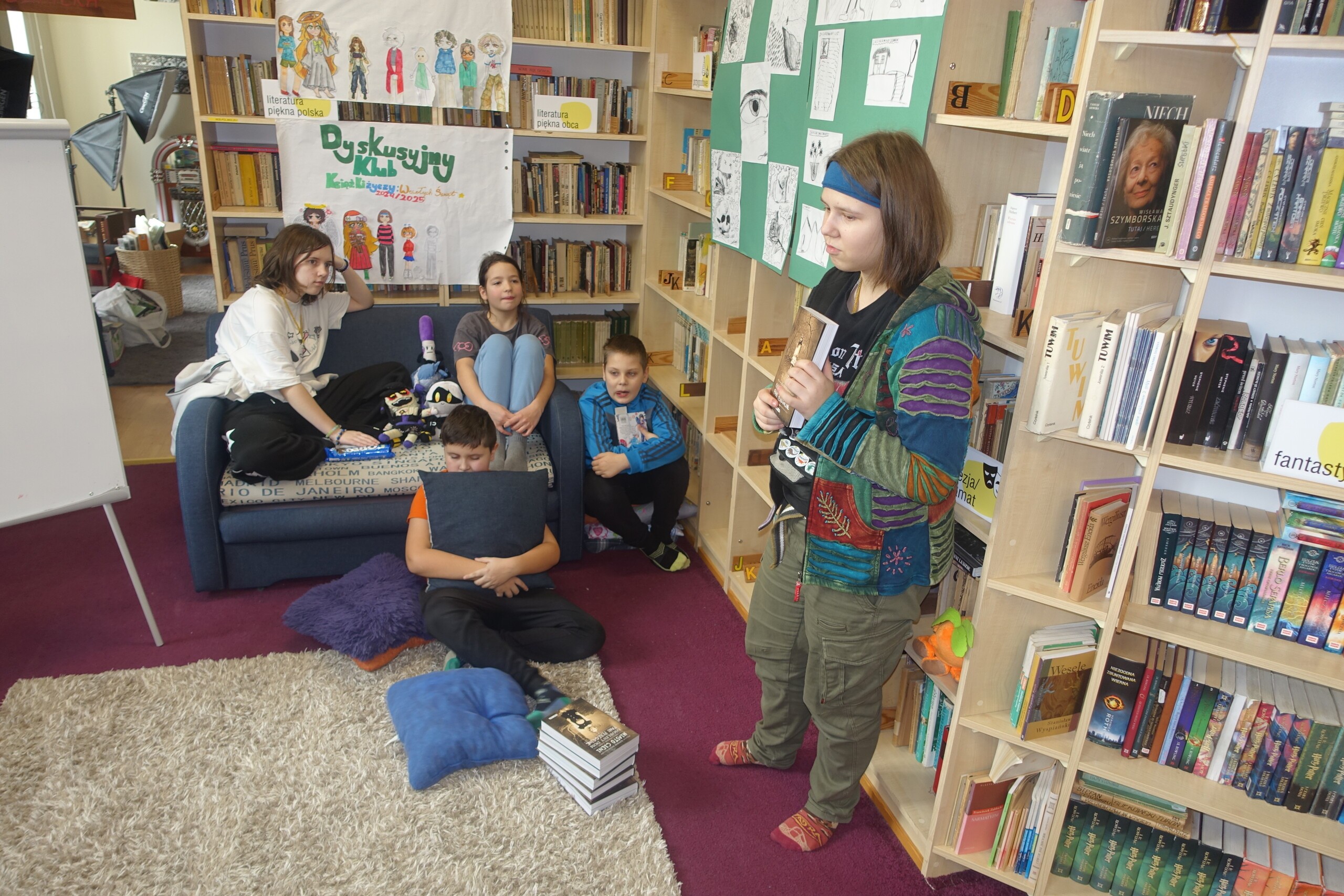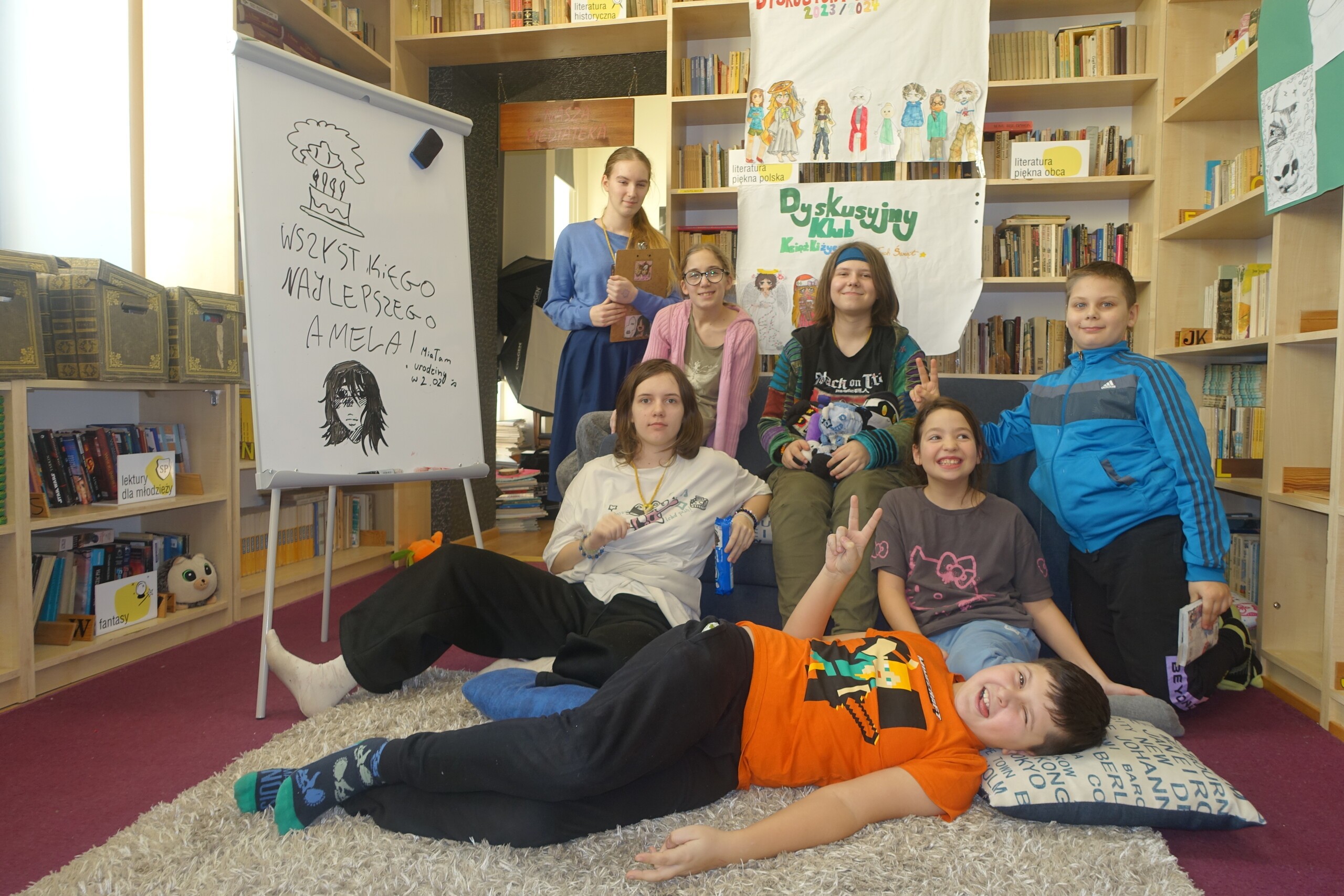 We wtorkowe popołudnie, 4 lutego 2025, w Bibliotece Szkolnej w Wicku odbyło się kolejne, comiesięczne spotkanie członków Dyskusyjnego Klubu Książki. Nie zabrakło rozmów o przeczytanych mangach, komiksach i książkach. Głównym tematem lutowego spotkania była promocja popularnej na całym świecie serii książek dla młodzieży, która doczekała się już ekranizacji, pt. "Osobliwy dom Pani Peregrine", autorstwa amerykańskiego pisarza, Ransoma Riggsa. Książki Riggsa, podarowane nam przez poznańskie Wydawnictwo Media Rodzina, zarekomendowała podczas spotkania Zuzia, która jest wielką fanką tej serii.
