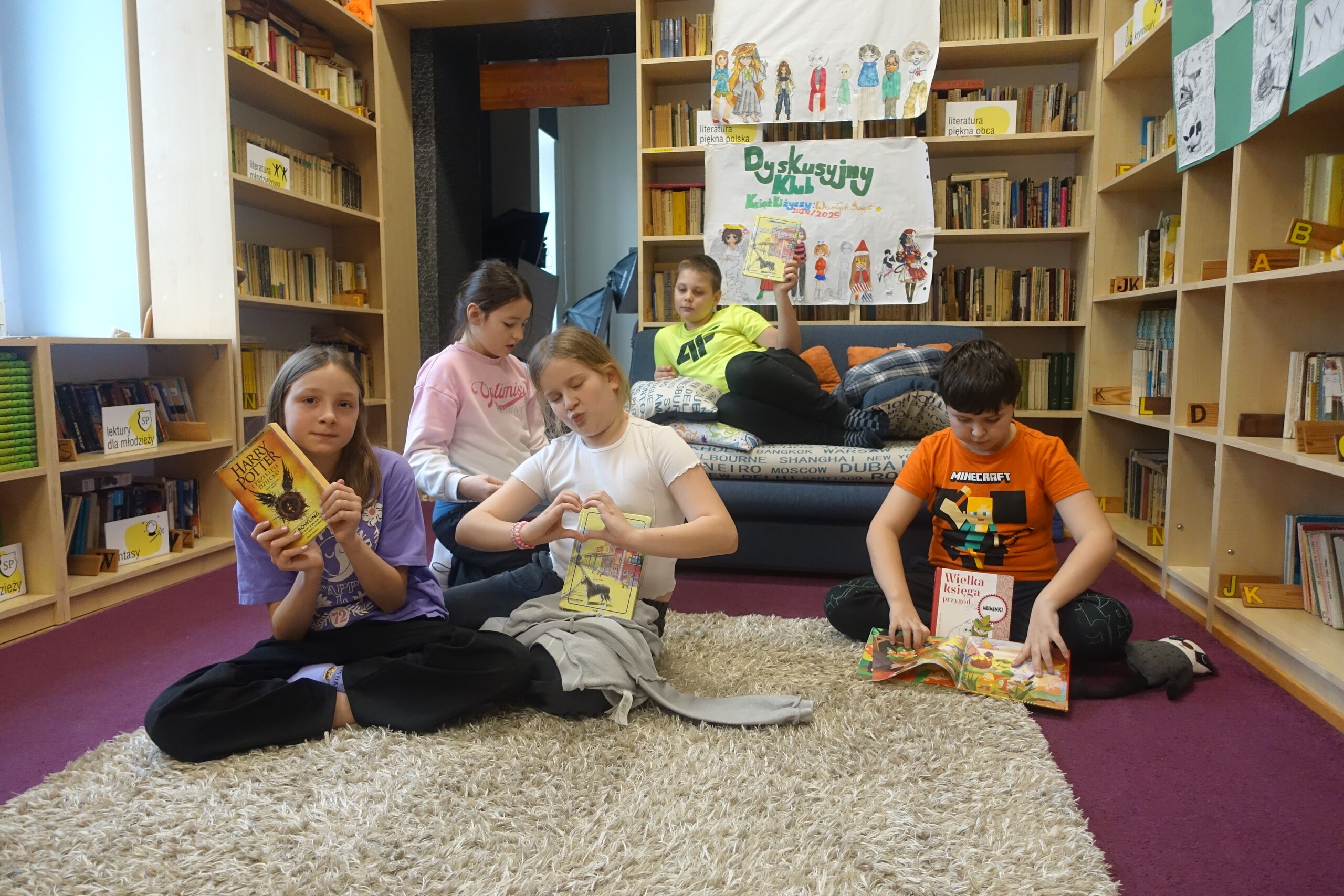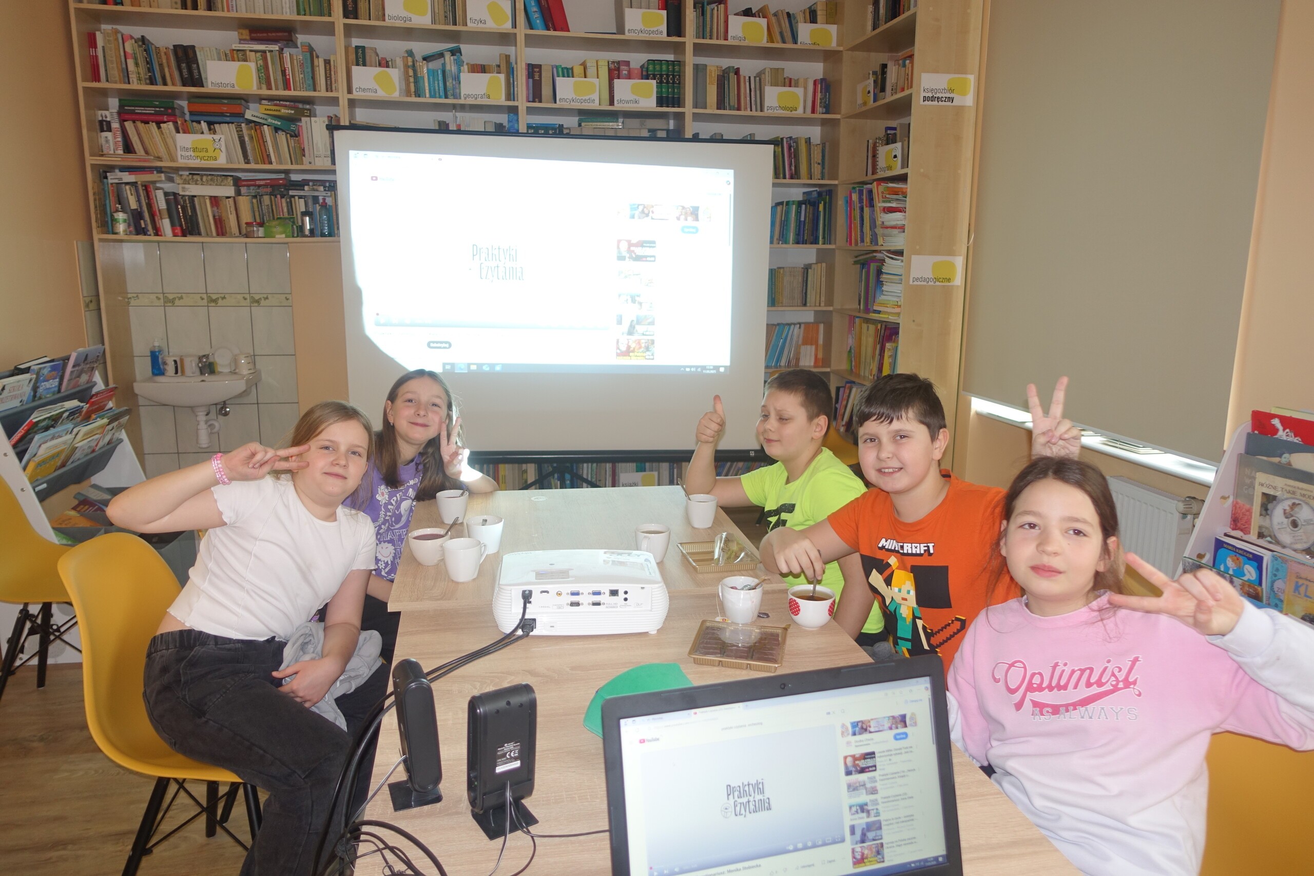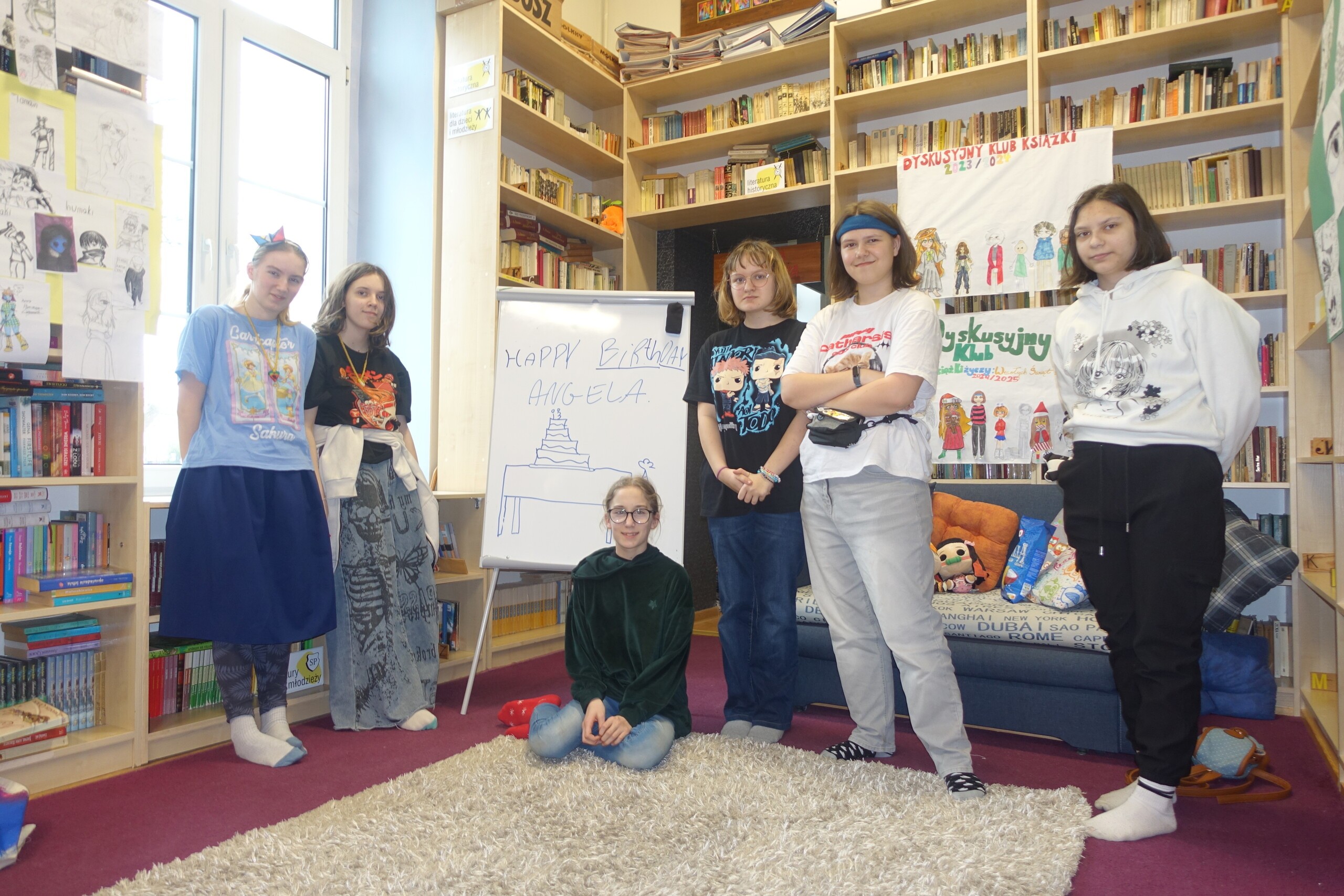 We wtorkowe popołudnie, 11 marca 2025, odbyły się dwa spotkania naszego Dyskusyjnego Klubu Książki. Warto podkreślić, że wśród młodszych uczniów wzrasta zainteresowanie naszym DKK, działającym w Bibliotece Szkolnej w Wicku, stąd poszerzenie oferty spotkań również dla młodszych czytelników z klas czwartych i piątych. Dzieciaki aktywnie uczestniczyły w dyskusji na temat ulubionych książek z dzieciństwa, a starsza młodzież skupiła się na swojej literackiej i plastycznej twórczości oraz na poleceniu nowości wydawniczych. Nie zapomnieliśmy także o urodzinach Amelki, której wspólnie odśpiewaliśmy "100 lat"!