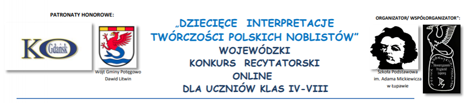 Finał konkursu odbędzie się 23 kwietnia 2023. Organizatorem Wojewódzkiego Konkursu Recytatorskiego online „Dziecięce interpretacje twórczości polskich noblistów” w wersji on-line jest Szkoła Podstawowa im. Adama Mickiewicza w Łupawie.