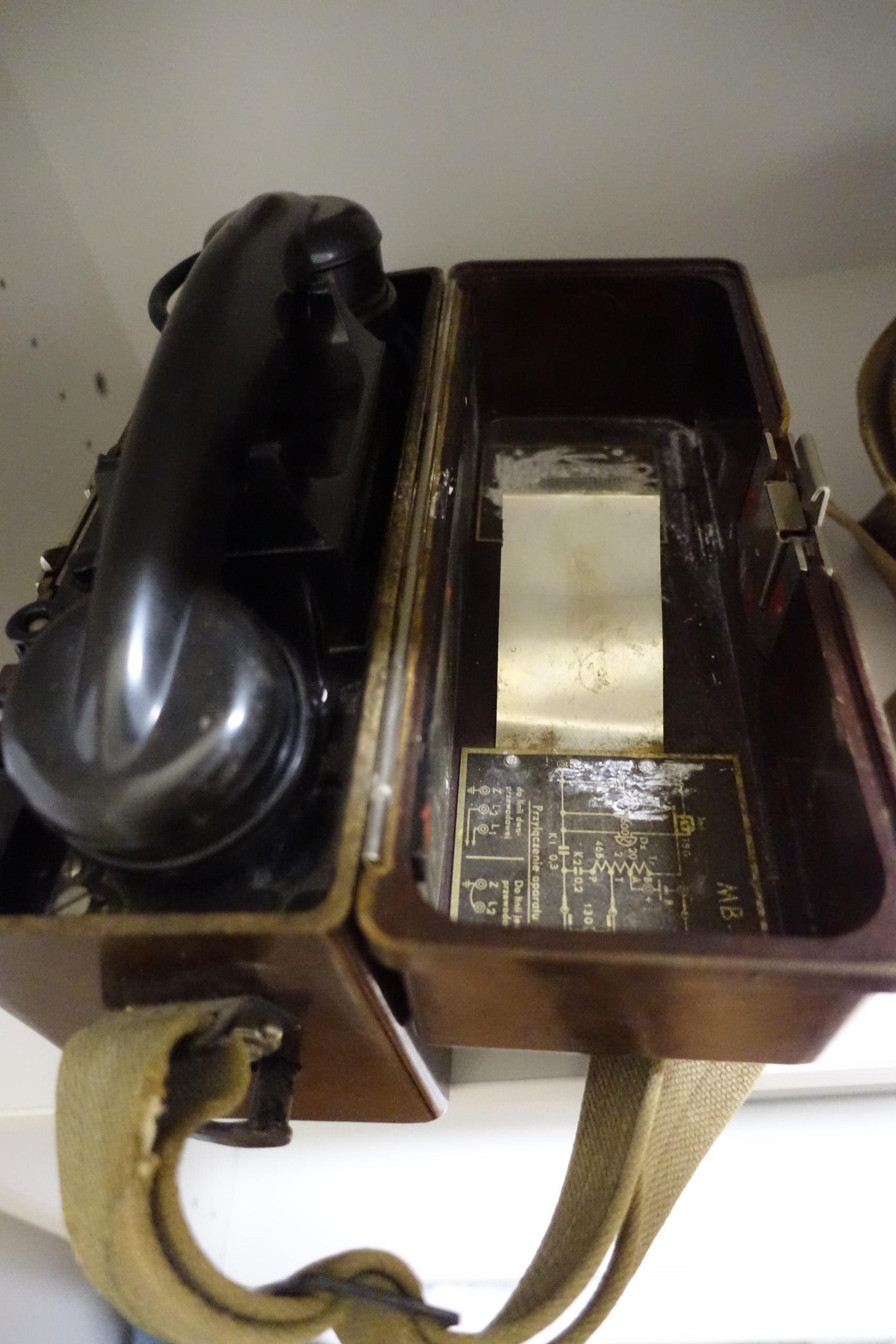 - dwa polowe telefony wojskowe z lat 50. Kompletne i w pełni działające! Gorąco dziękujemy!